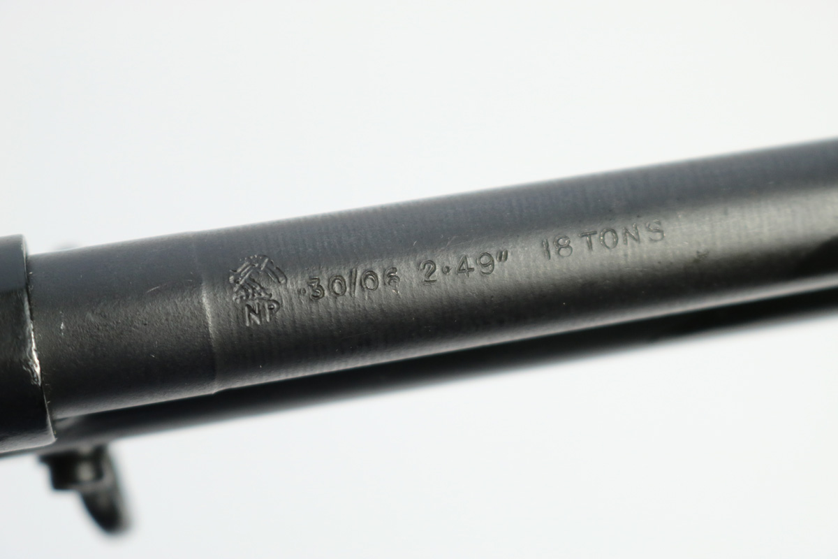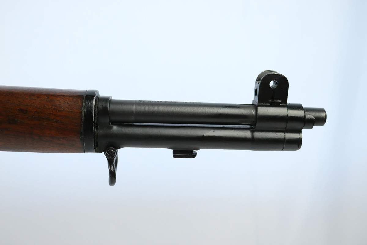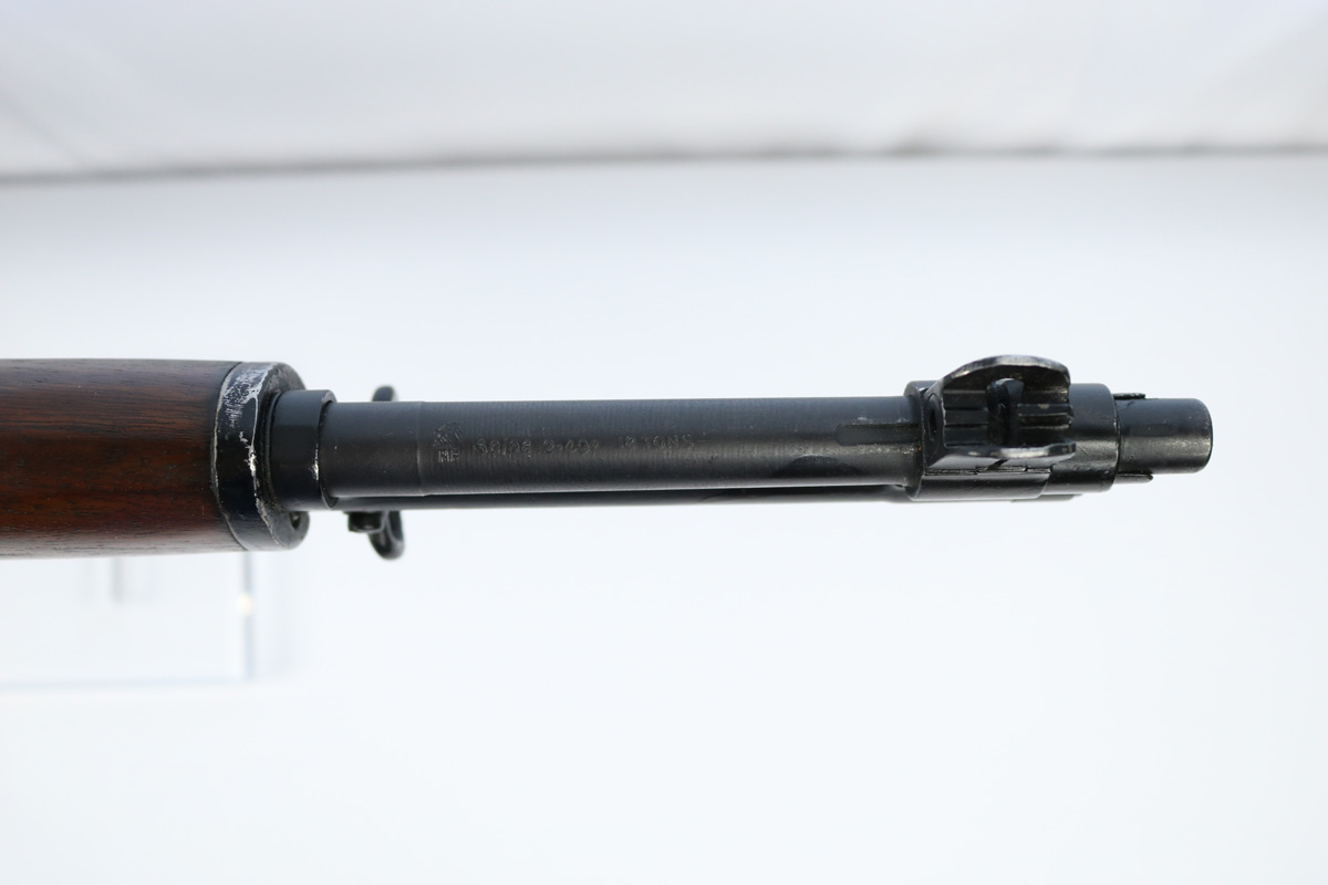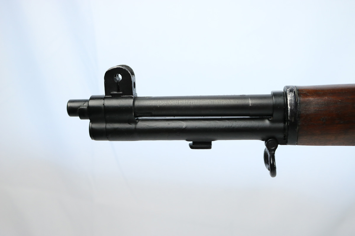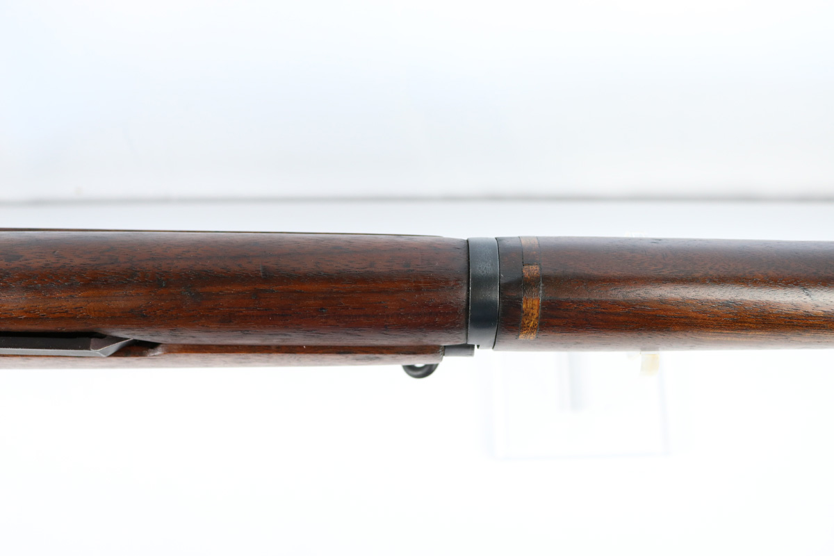 9/10/18 – This is an original Harrington & Richardson M1 Garand made during the first year of production. This rifle has scarce early production qualities, like some parts from Springfield and Winchester. When H&R first starting making Garands for the Korean War & Vietnam, they bought up as many parts as they could from other manufacturers to help speed up their initial production. This rifle fits that story. Further, what makes this rifle interested is that it has British proofs on the topside of the barrel from our lend-lease program with them during the time. The rifle is in excellent condition overall with beautiful wood and a plumb colored metal receiver. The bore is in excellent condition as well with only trace signs of use. Overall a 9 out of 10. Guaranteed original and authentic.