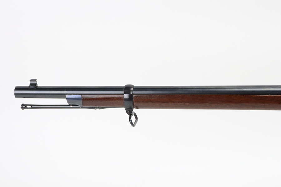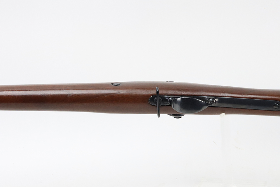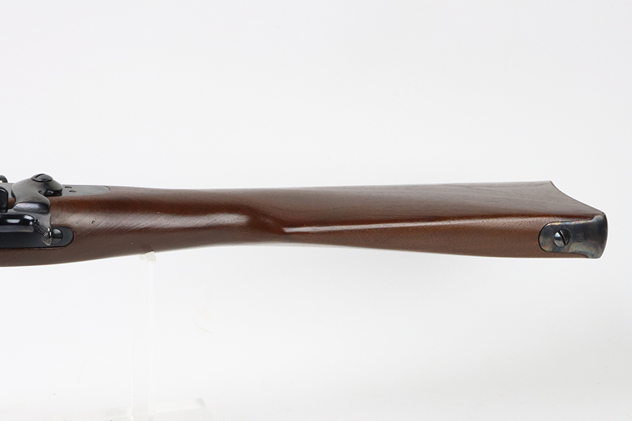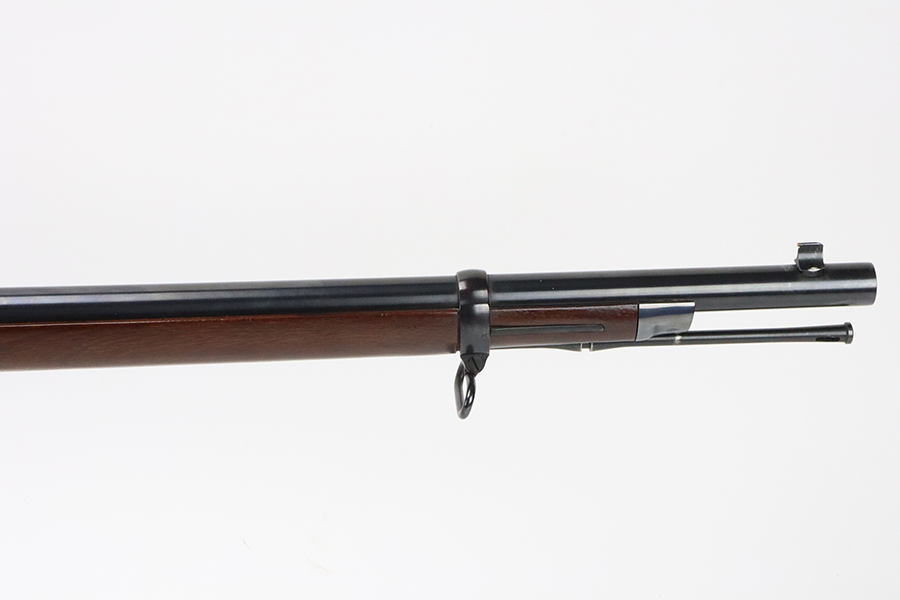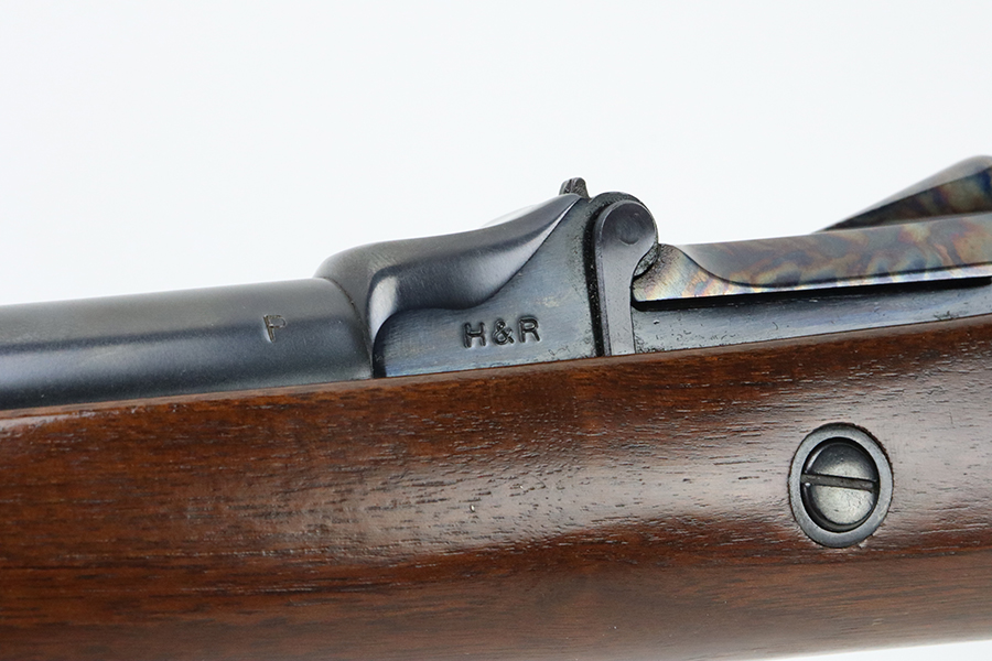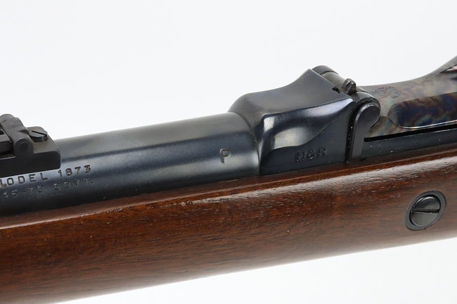 5/17/24 – This is a modern reproduction of the Springfield Model 1873 Trapdoor rifle, made by H&R. Chambered in .45-70 Government. The metal parts have retained essentially all of their finish. Beautiful case-hardening on the trapdoor and butt plate. Excellent wood stock with only a few minor handling marks. Mint bore.