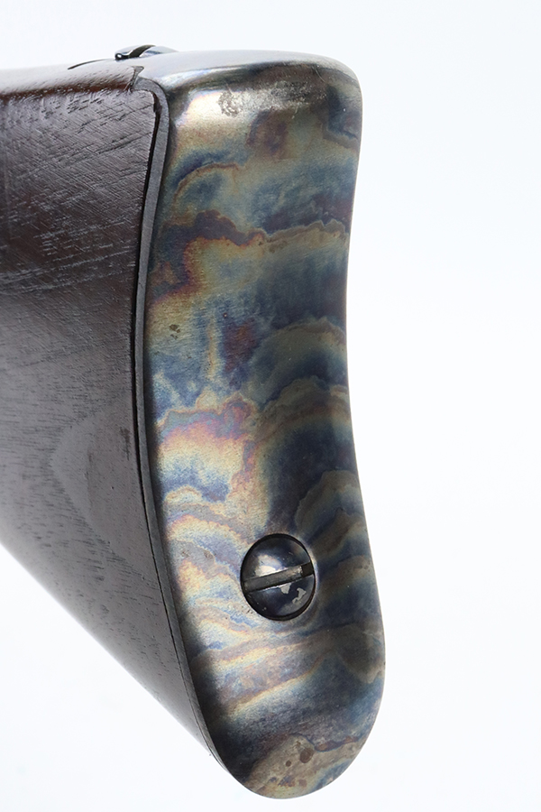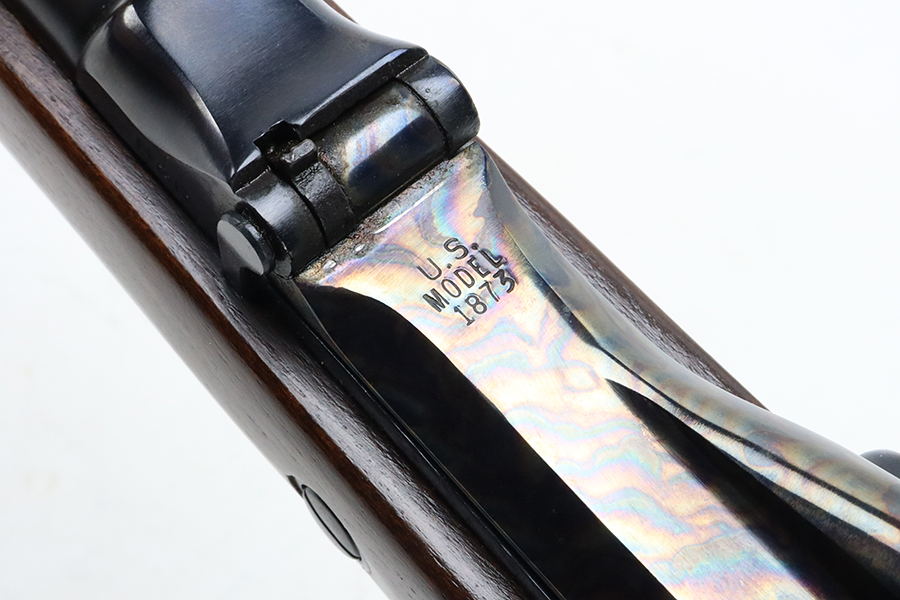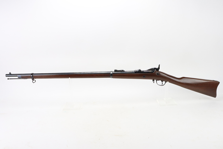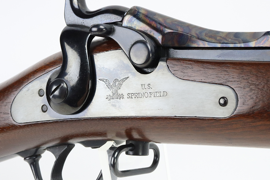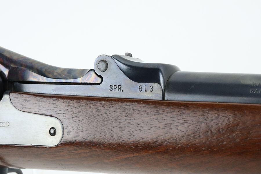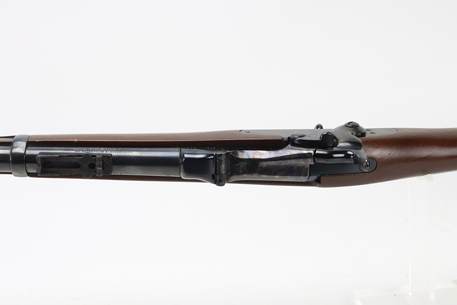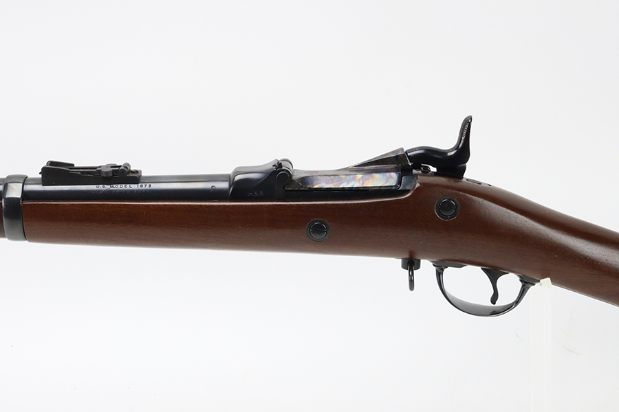 5/17/24 – This is a modern reproduction of the Springfield Model 1873 Trapdoor rifle, made by H&R. Chambered in .45-70 Government. The metal parts have retained essentially all of their finish. Beautiful case-hardening on the trapdoor and butt plate. Excellent wood stock with only a few minor handling marks. Mint bore.