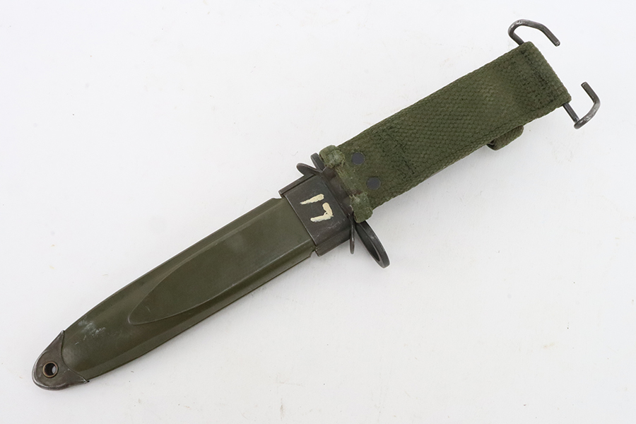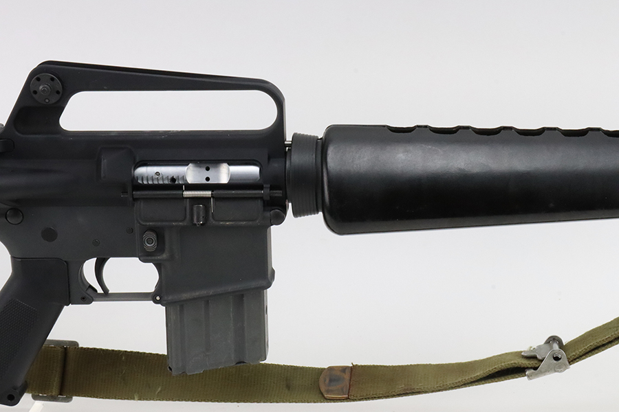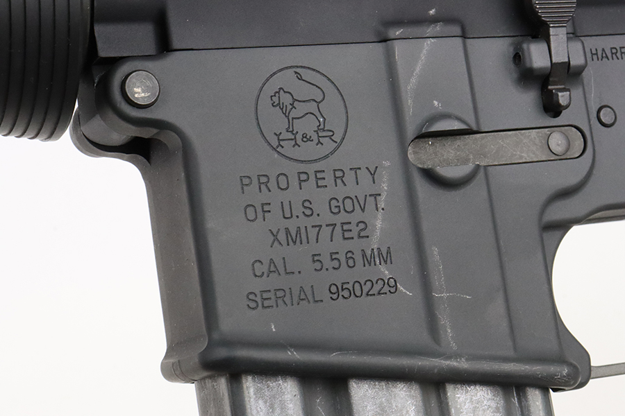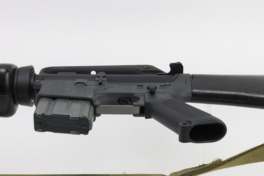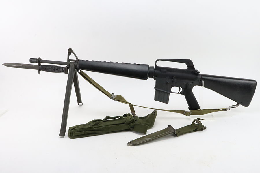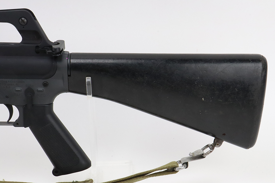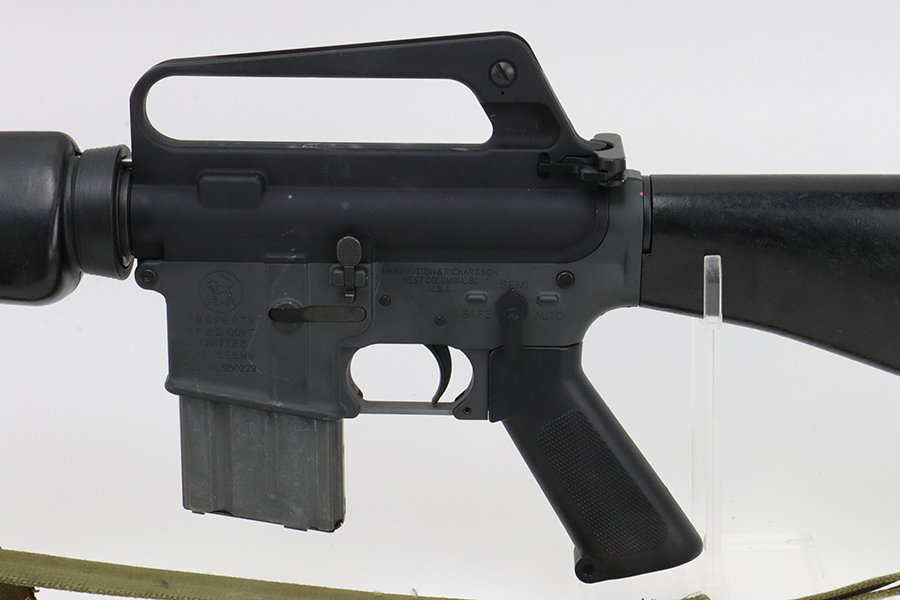2/29/24 – This is an excellent Harrington & Richardson Model XM177E2, a clone of the original Colt AR-15. It comes with one magazine, a canvas sling, a bayonet with scabbard, and bipod with case. The gun is excellent with just a few light scuffs on the receiver. Nice composite furniture. Mint bore.