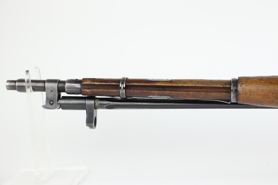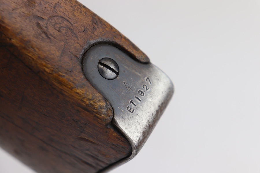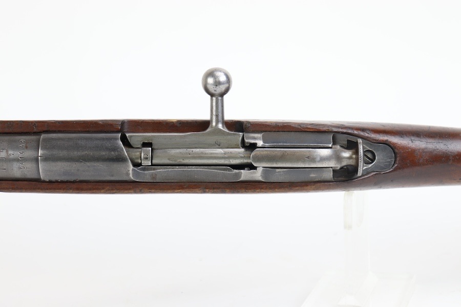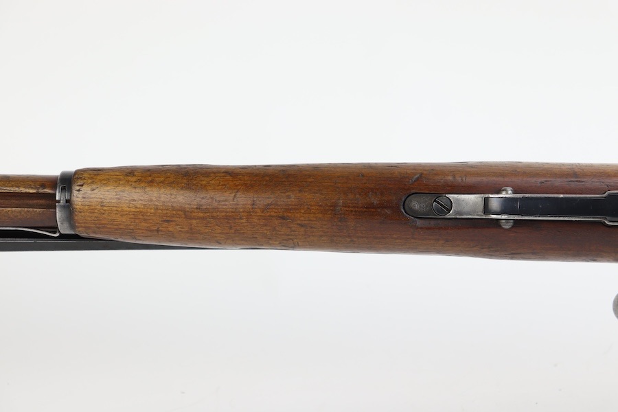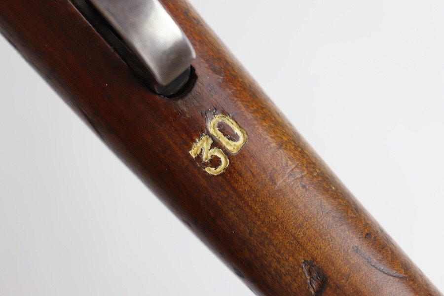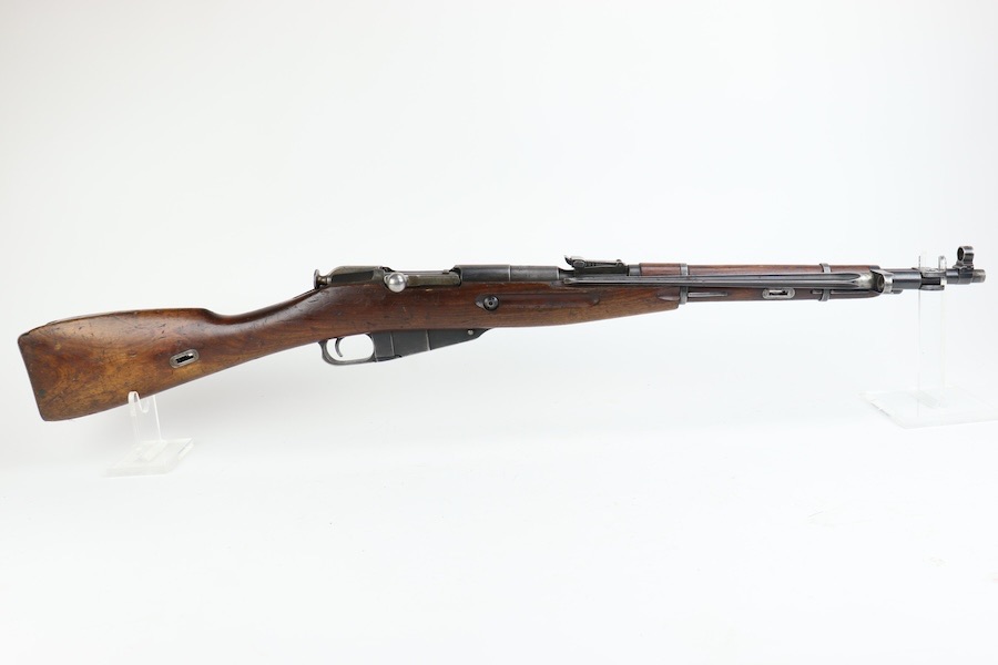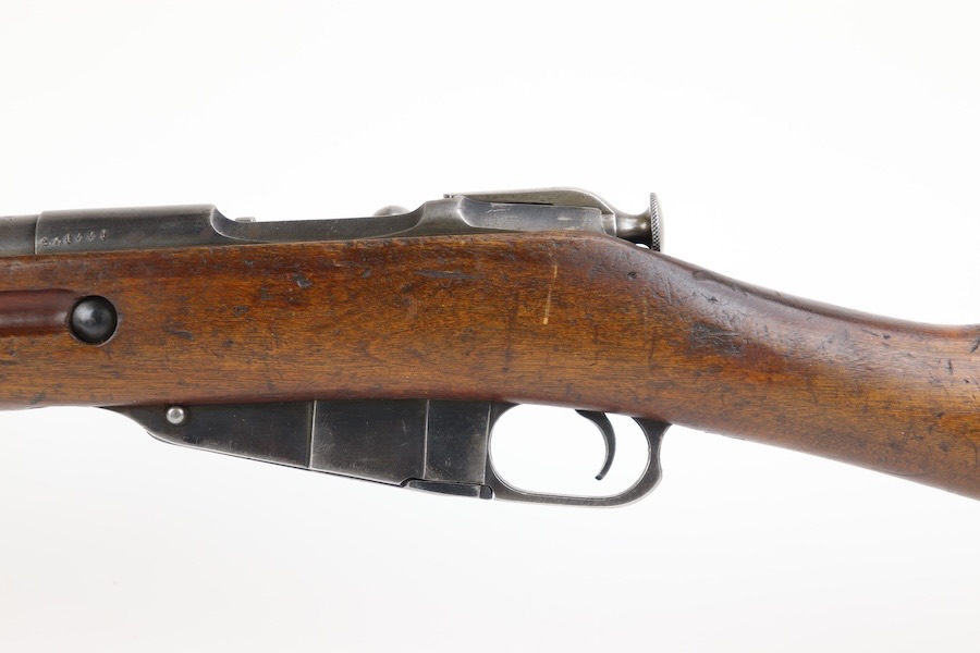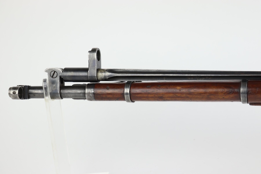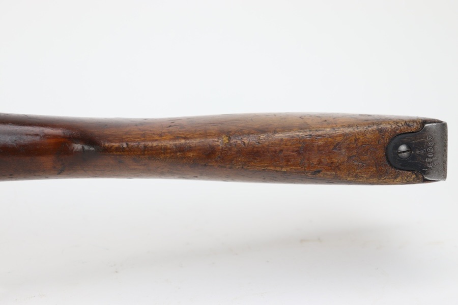 2/2/24 – This is a great and original condition Hungarian M44 Mosin Nagant carbine. A fair amount of the bluing finish has worn off the barrel, receiver parts, and mag well. There is also edge wear on the muzzle; we rate the finish at 60%. The bore has light pitting mainly towards the muzzle end but has very strong rifling; we rate the bore 8.5/10. there is a fair bit of handling wear near the end of the stock; however, there are no cracks or splits in the forend or stock. Action is very smooth and works as it should. All parts on this rifle are mismatched, and there is an import mark on the left side of the front of the barrel.