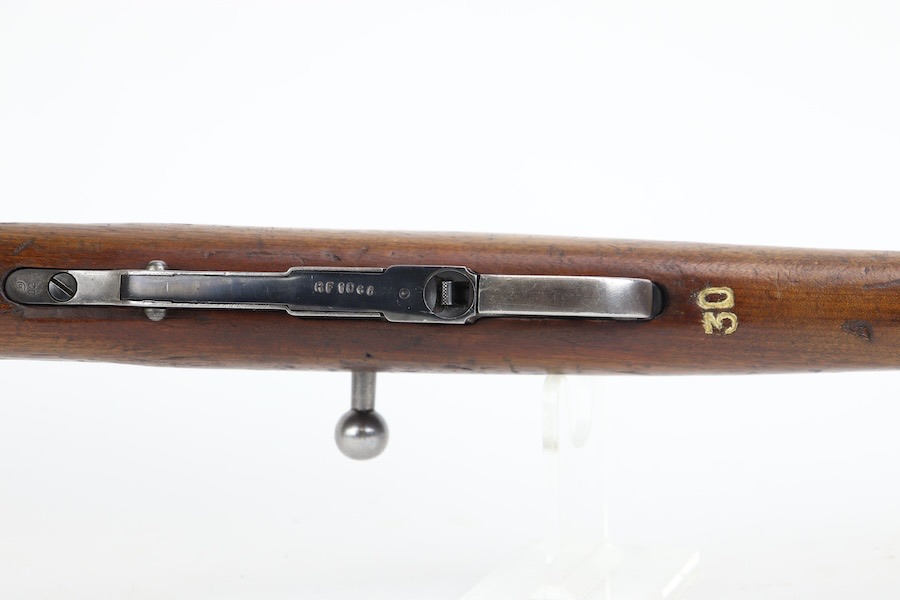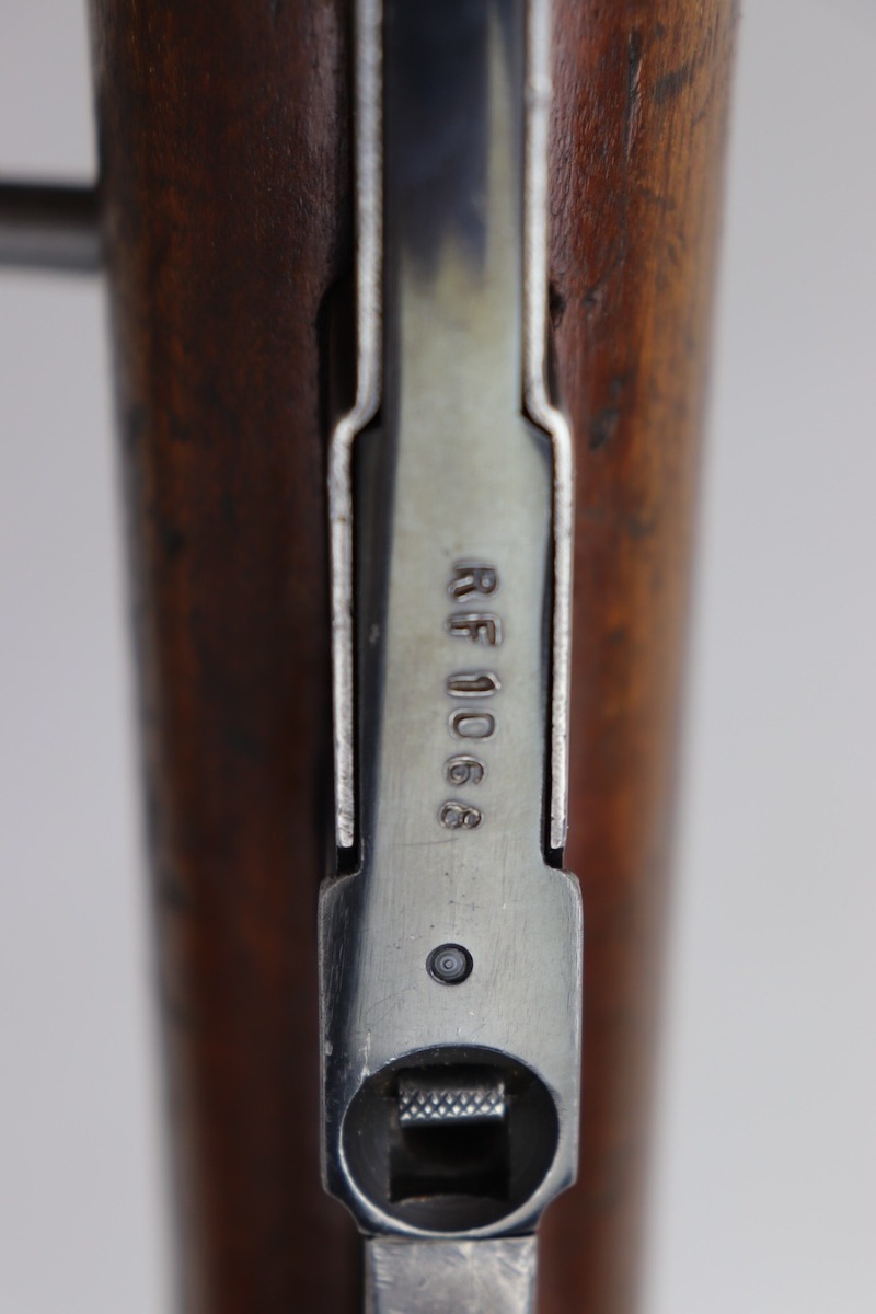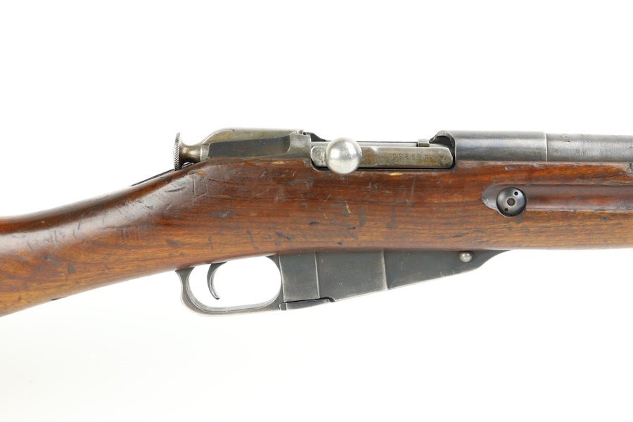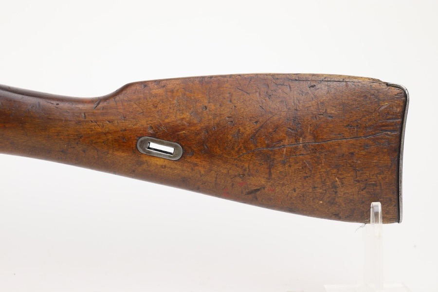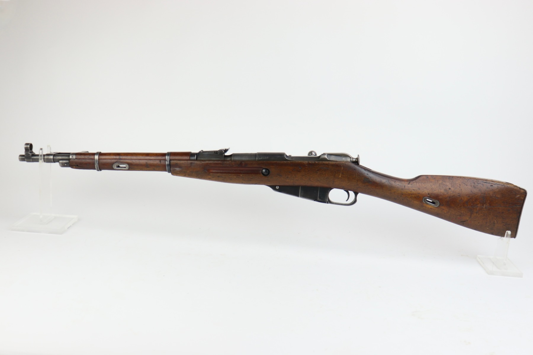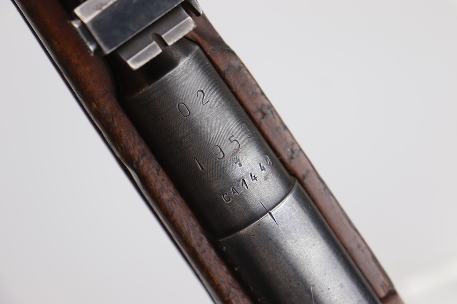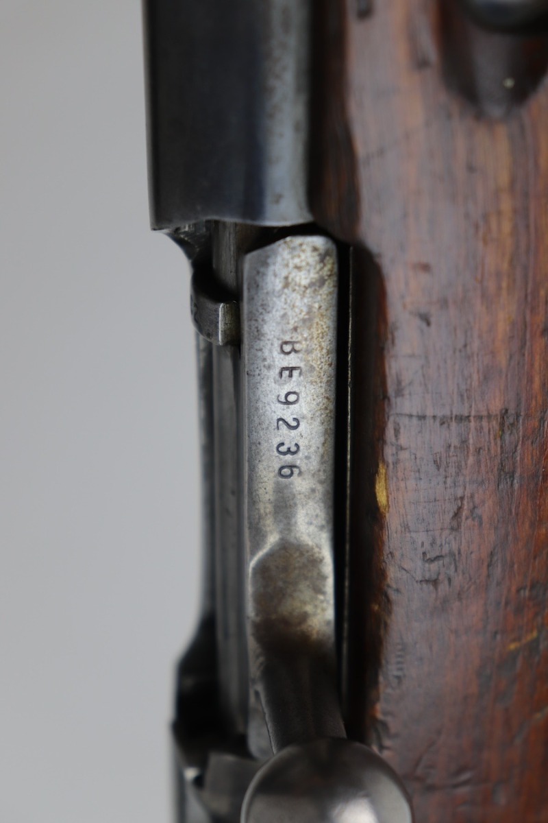 2/2/24 – This is a great and original condition Hungarian M44 Mosin Nagant carbine. A fair amount of the bluing finish has worn off the barrel, receiver parts, and mag well. There is also edge wear on the muzzle; we rate the finish at 60%. The bore has light pitting mainly towards the muzzle end but has very strong rifling; we rate the bore 8.5/10. there is a fair bit of handling wear near the end of the stock; however, there are no cracks or splits in the forend or stock. Action is very smooth and works as it should. All parts on this rifle are mismatched, and there is an import mark on the left side of the front of the barrel.