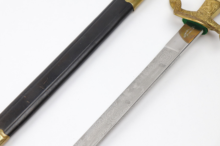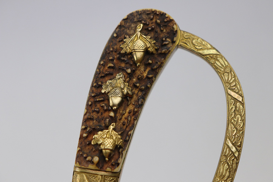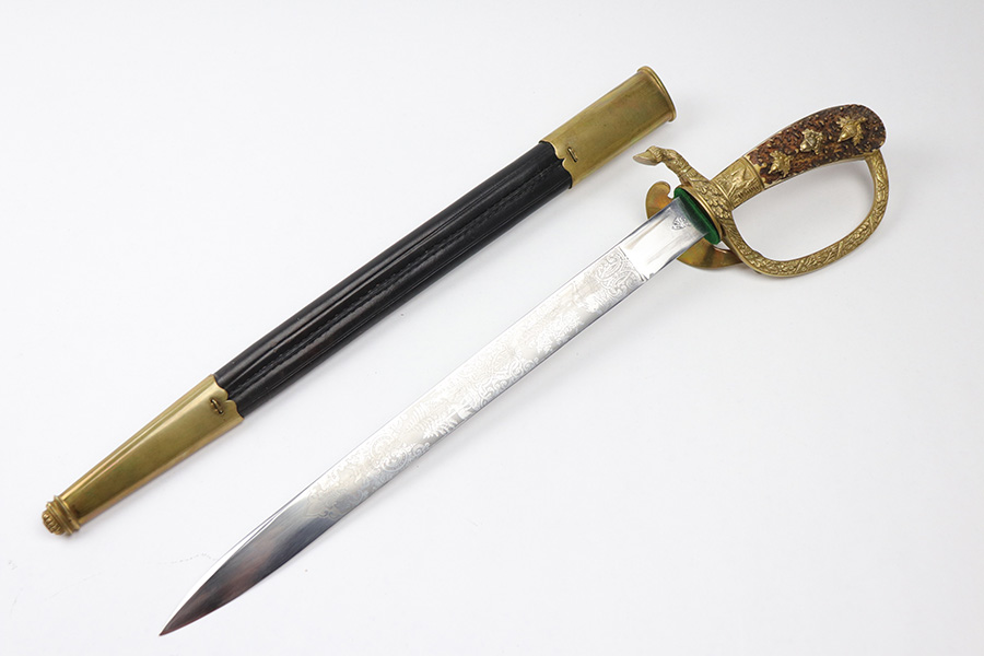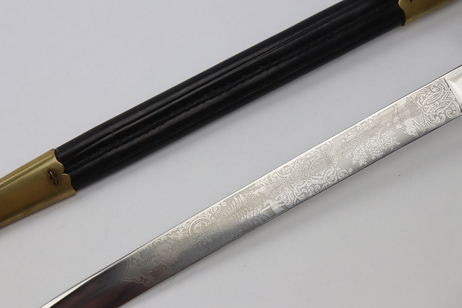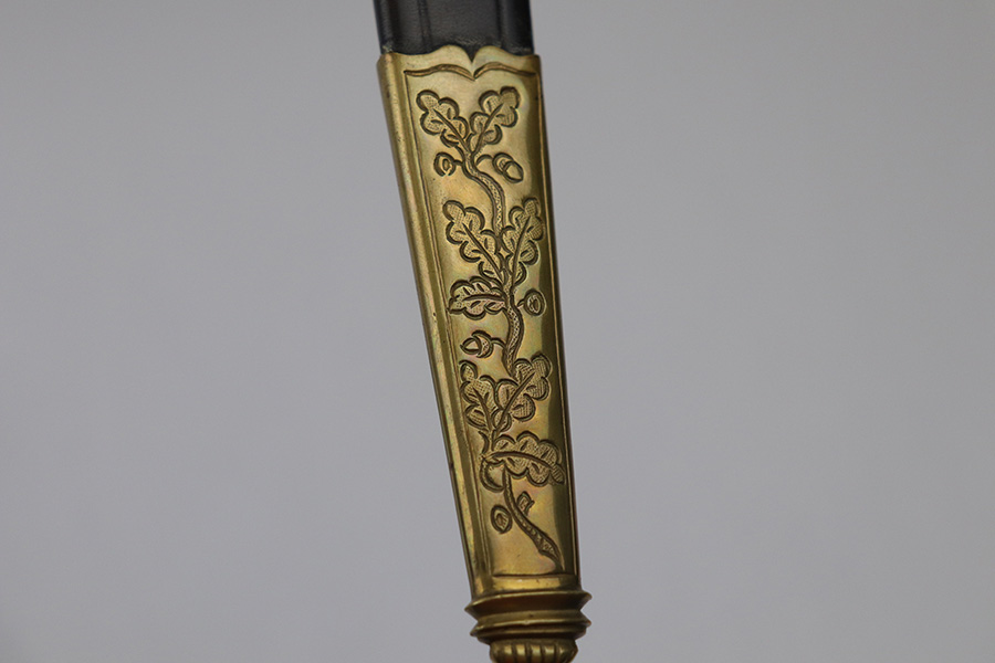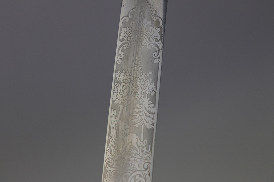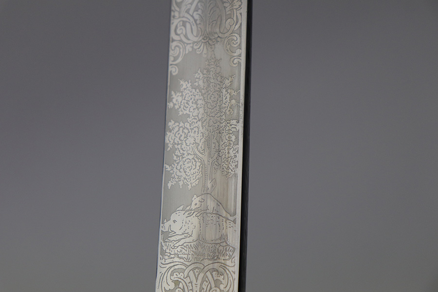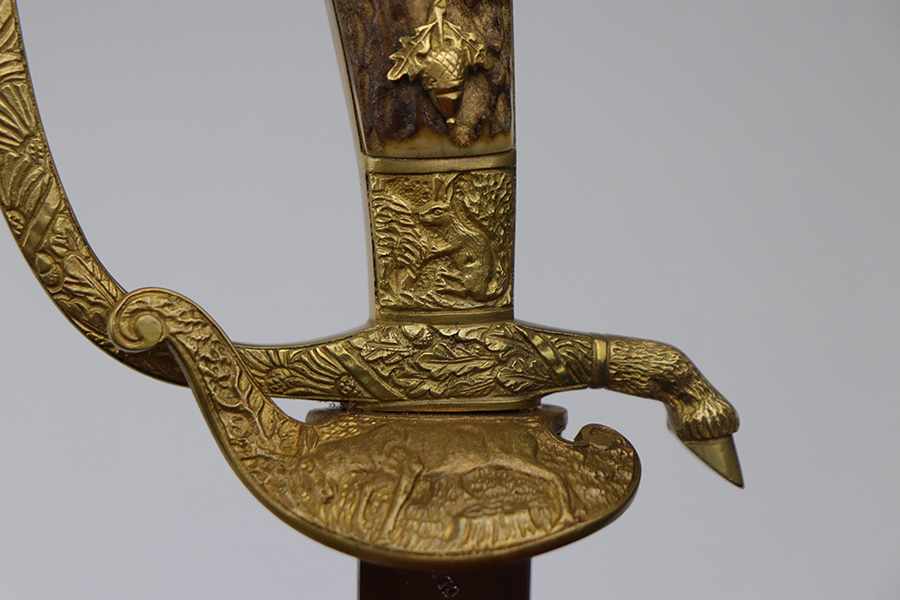 10/22/21 – This is a beautiful triple etched / engraved German Hunting Association dagger. These daggers were made in the 1920s and 30s and ultimately were designed for the Nazi’s by Goring during WW2. The blade is excellent and clean with some mild scabbard wear but no major flaws. The engravings are still crisp. The handle is excellent as well, and there’s minimal patina on the hand guard / pommel. The scabbard is equally excellent with no notable flaws.