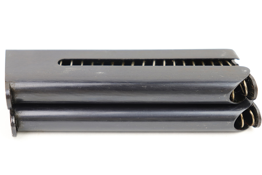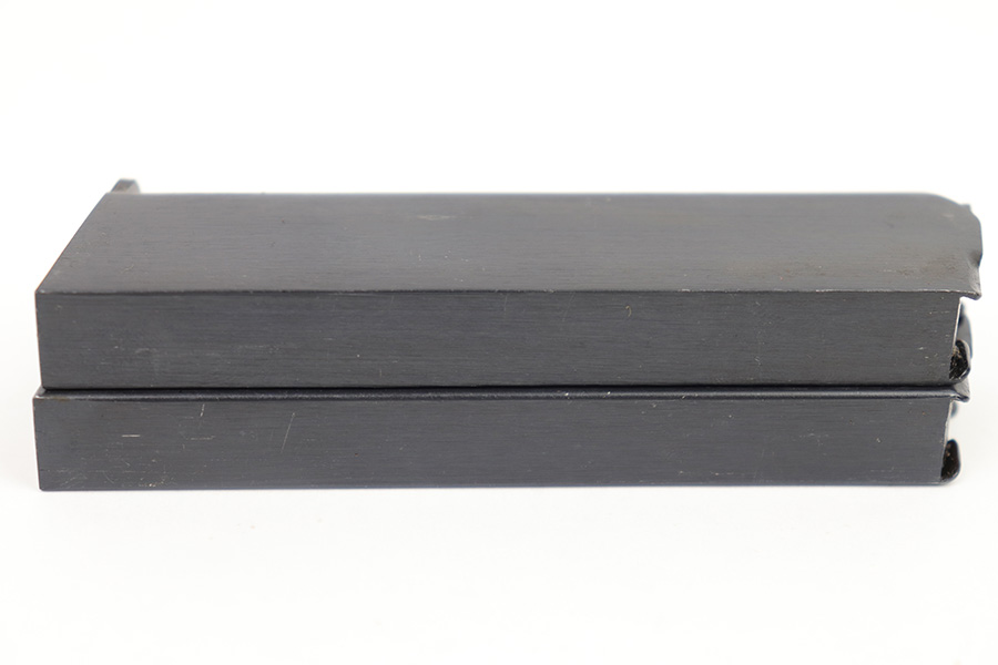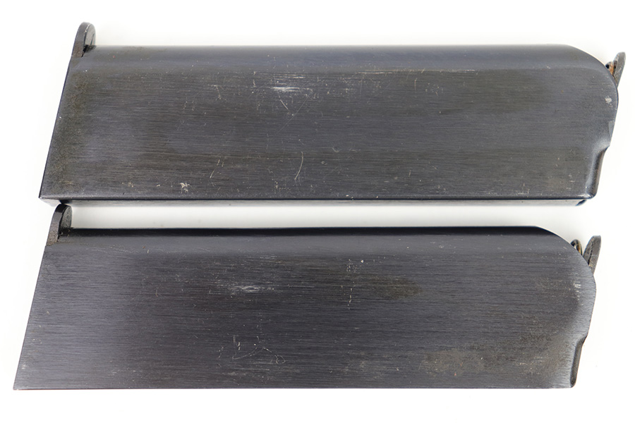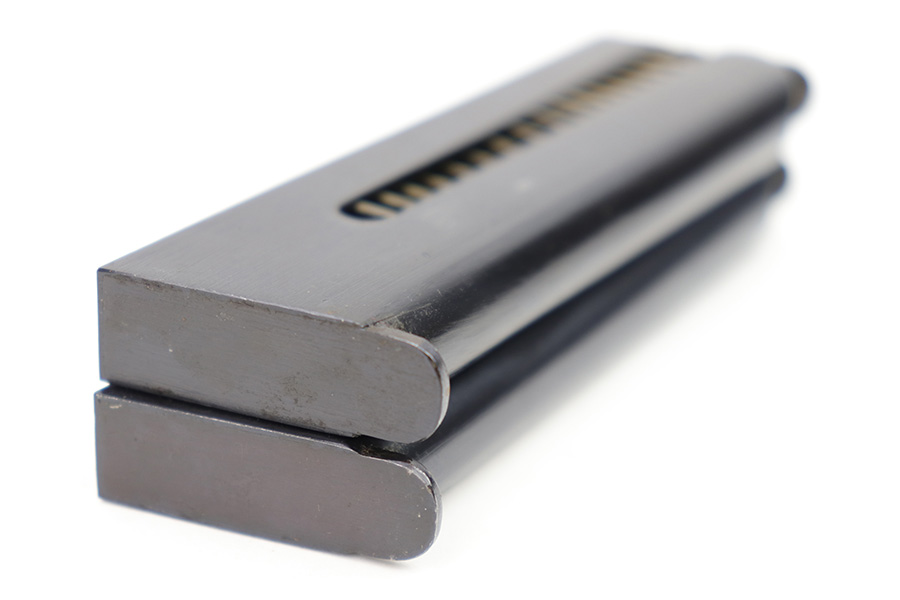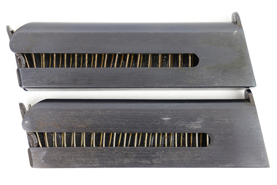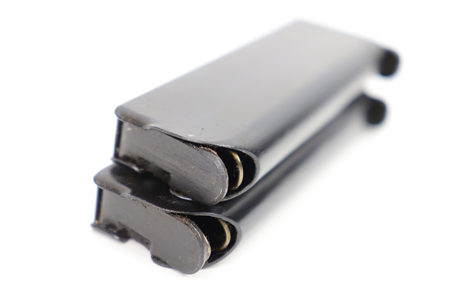 3/8/23 – Price for BOTH magazines. This is a pair of excellent condition Husqvarna M1907 magazines in .380. Each mag has a small stamp on the lip of the baseplate with no other markings. Strong, fully functional springs.