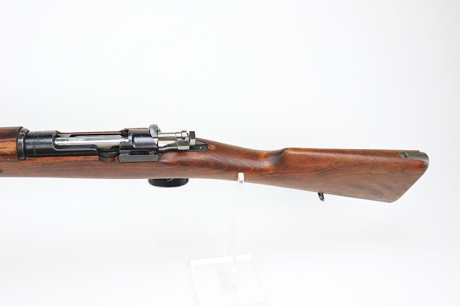 1/25/21 – This is a Swedish Mauser Husqvarna M38 rifle in 6.5x55mm. The rifle is in excellent condition and very clean overall. We rate around 96-98% as there is some mild edge wear / finish loss on the metal parts. The stock is unmarked except for a small crown proof stamp on the underside. No notable cracks or chips in the wood. The bore is very clean, 9/10 overall with strong rifling. The underside of the barrel bears a micro import stamp. Mechanically sound.