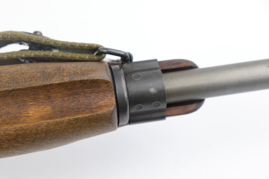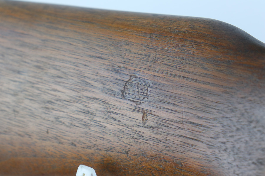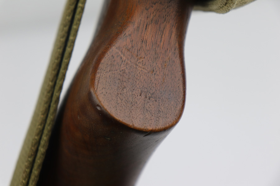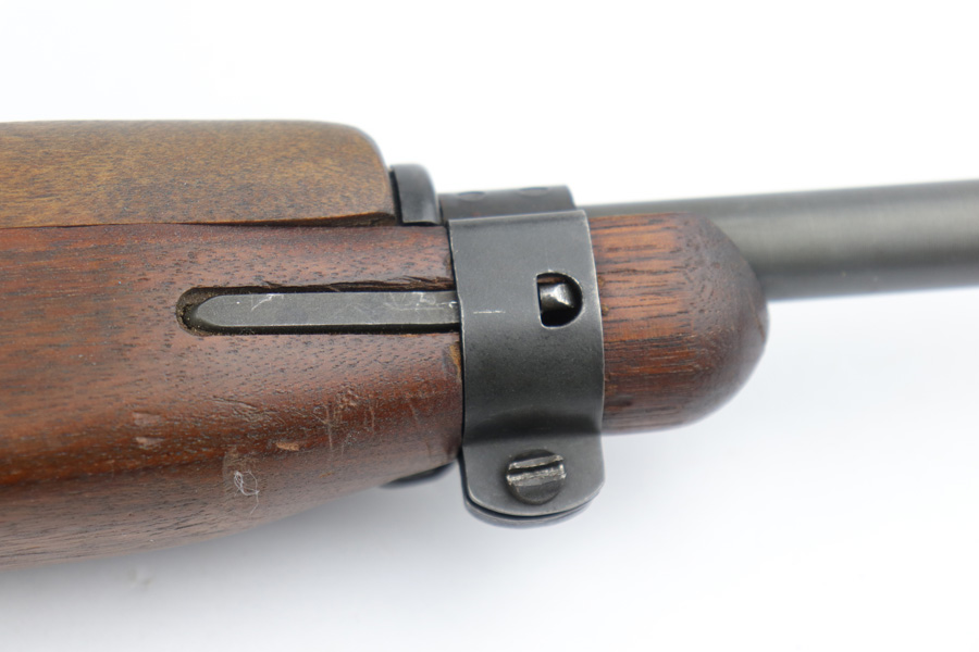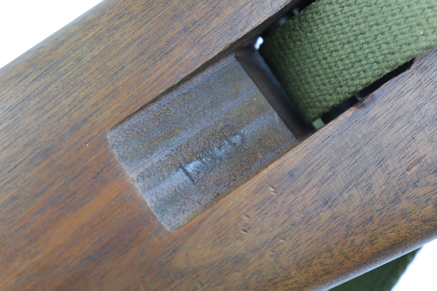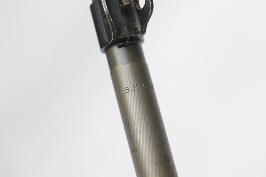 4/19/19 – This is an original WW2 era production M1 Carbine rifle made by I.B.M. The rifle was late war production, and is in all original configuration despite being stamped on the underside of the stock, “RA” for Ratan Arsenal. Our theory (and other collectors agree) is that this rifle was sent to Ratan after WWII (as many rifles were) where it was “RA” stamped and then set aside and never touched or worked on. This would explain the lack of bayonet lug (or ever having one) and overall condition / configuration of this rifle. The metal is parkerized except on the bolt where it is blued. There is some freckling or spots of discoloration on the metal, but no rust or pitting. Excellent, minty bore is shiny and clean. The wood is excellent as well with a strong, original military cartouche. Comes with two magazines, WW2 original strap, and canvas magazine pouch (2 total magazines included – both ww2). Great, fairly priced collector rifle.