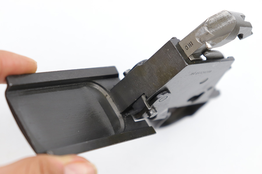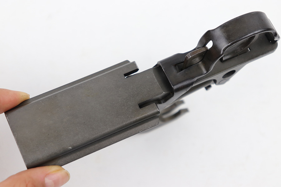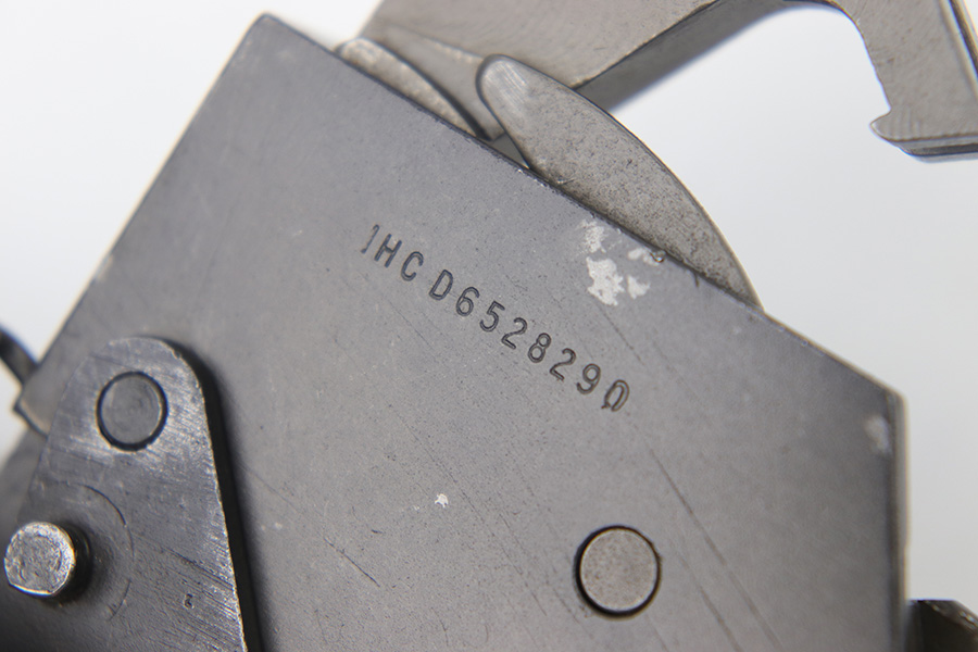 4/18/23 – This is a complete trigger grouping / lower assembly for an International Harvester M1 Garand rifle. 1950s production and in excellent condition with some very mild patina on the trigger guard. Complete and fully functional parts with strong springs.
