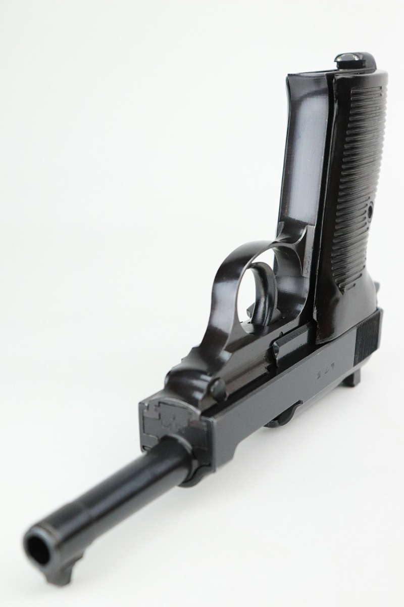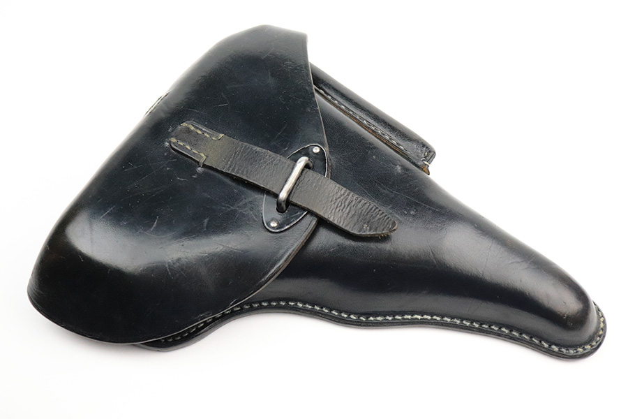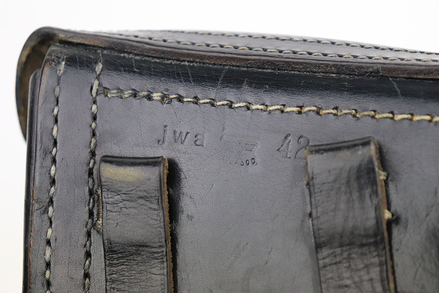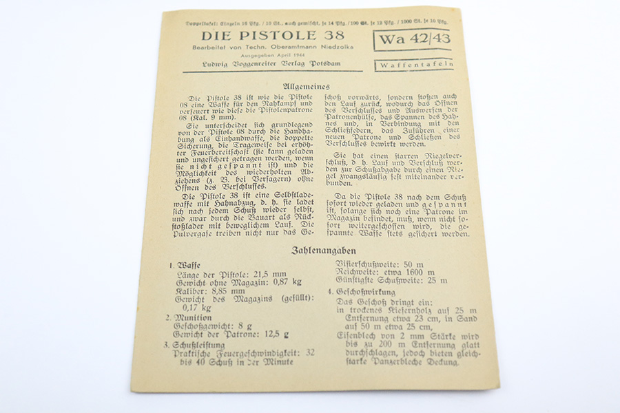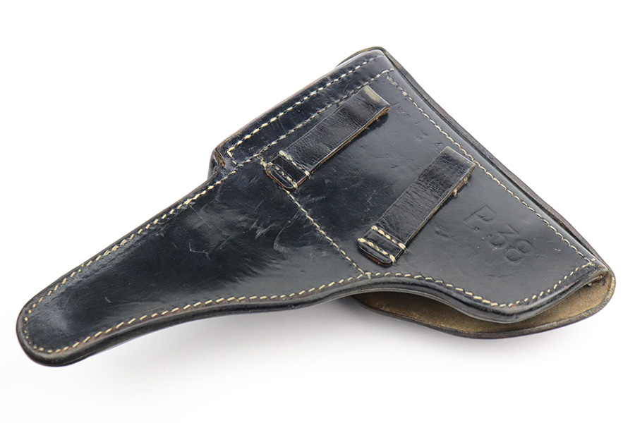 7/28/22 – Here we have one of the finest and most complete Walther P.38 rigs we’ve ever offered. It’s an early ‘ac 42’ Walther with both of the original, matching magazines. Beyond that, the pistol is in immaculate condition, with just a hint or holster wear on the muzzle and firing pin cover. The pistol is otherwise pristine and the bore appears nearly untouched. Minty chocolate brown grips with hardly a scuff on them. The listing is also complete with several desirable accessories. The rig itself is completed by a minty 1942 hardshell holster with no defects. But the listing also includes a rare, original lanyard in terrific condition, as well as a scarce set of original manuals with a German example that is specifically for 42/43 pistols. All in all, just a rig that cannot be upgraded.