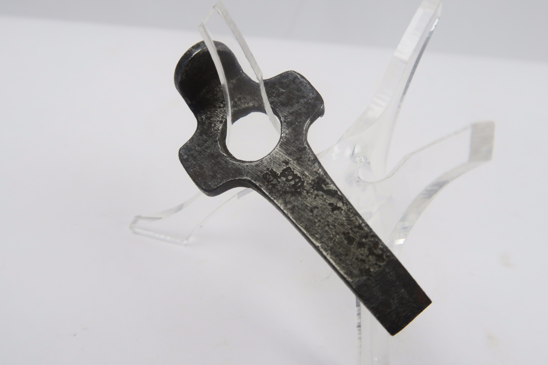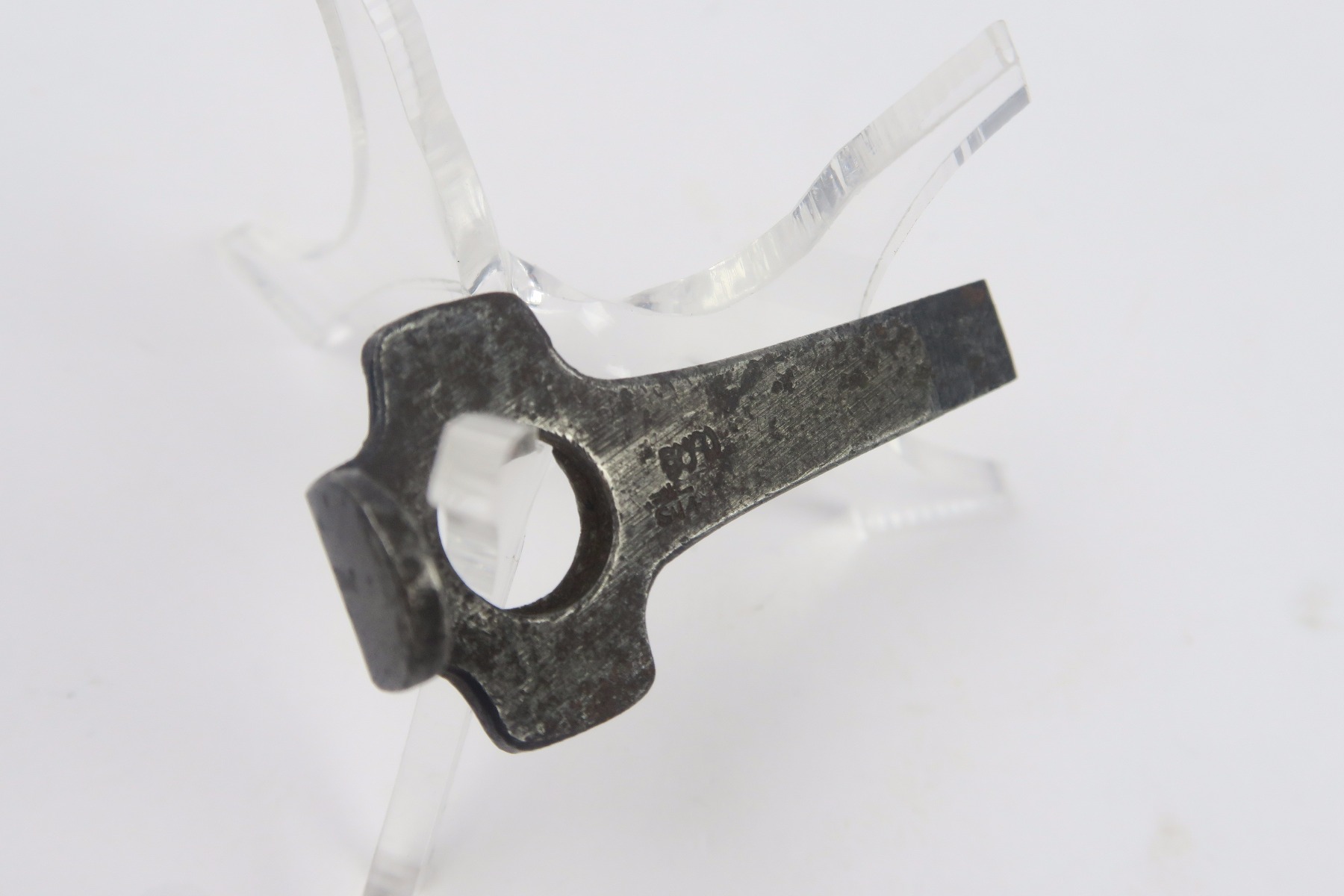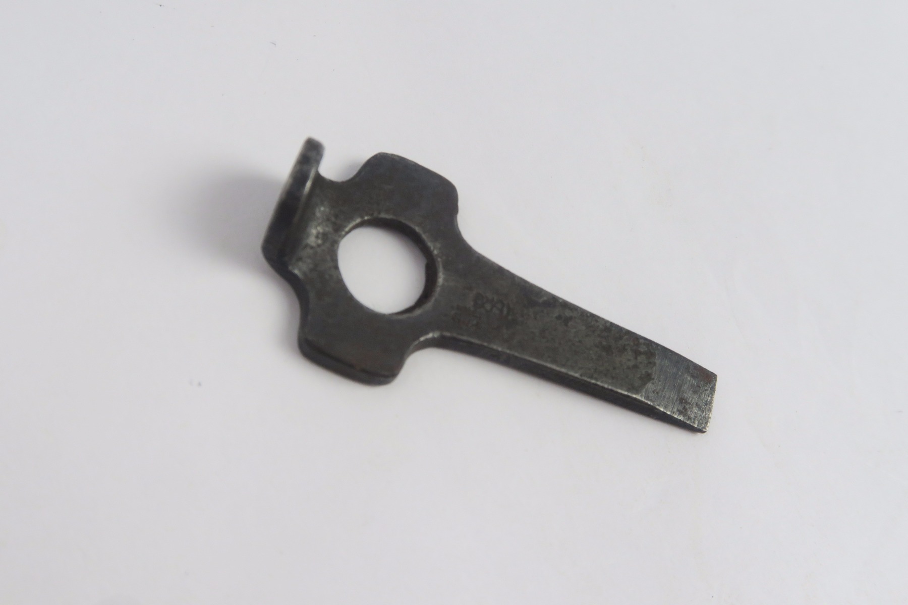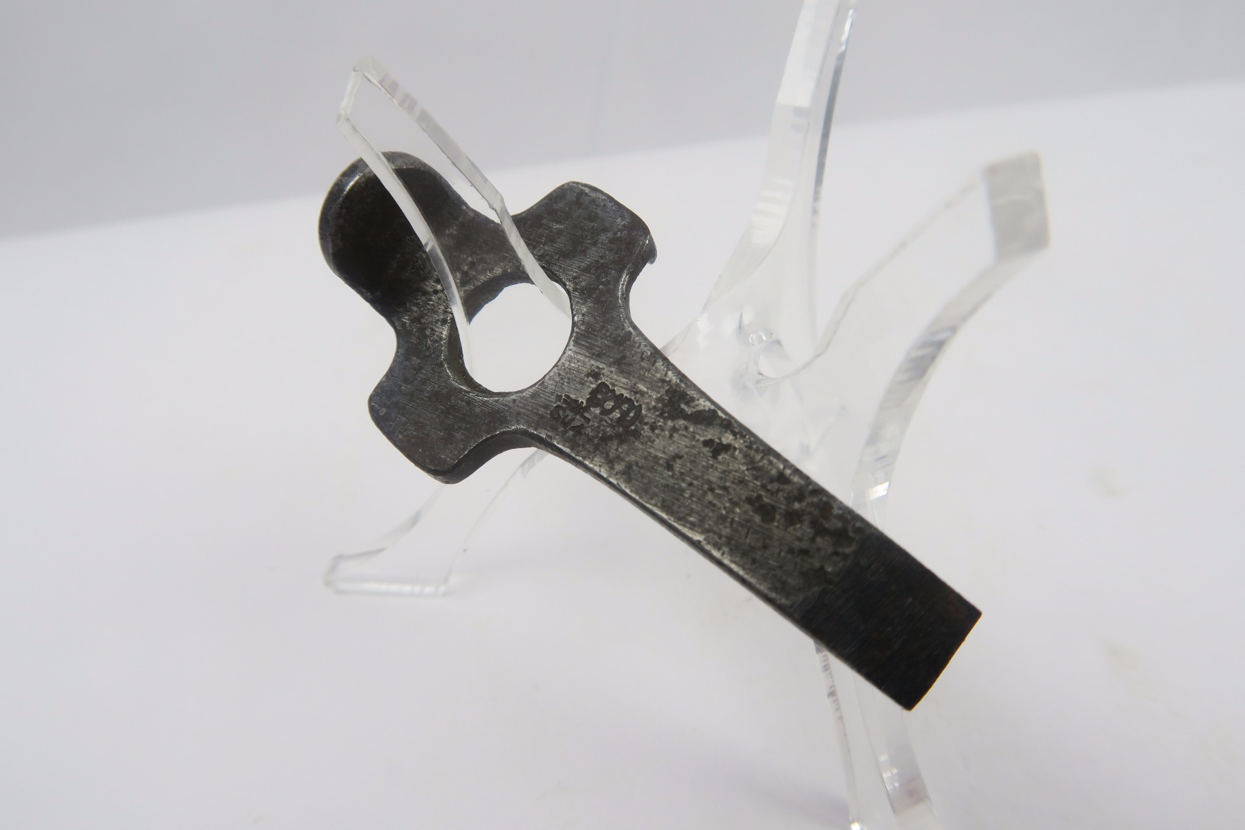 12/4/17 – This is an original WW1 Imperial Luger tool that has an imperial crown stamp on the front, but also a unique WW2 eagle over “SU4” stamped on the front of the tool as well. Please see photos. We’ve never seen a tool stamped in this fashion, but both stamps look 100% original and authentic. The tool shape is also original for WW1 production. The back of the tool is serial numbered 7728. The tool has some discoloration and spotty wear but overall is in good condition. Guaranteed original.