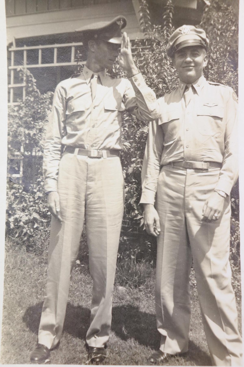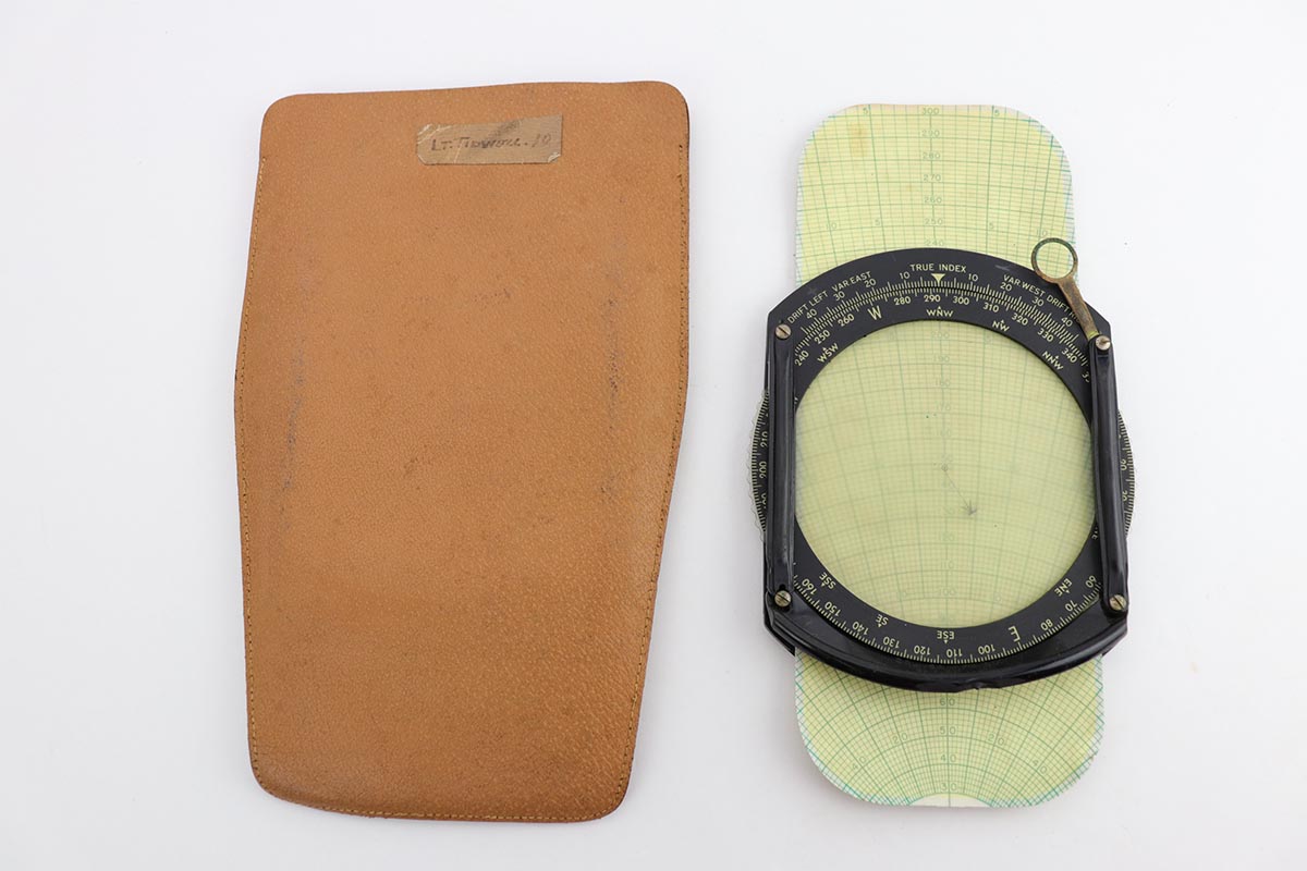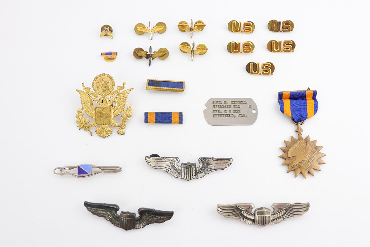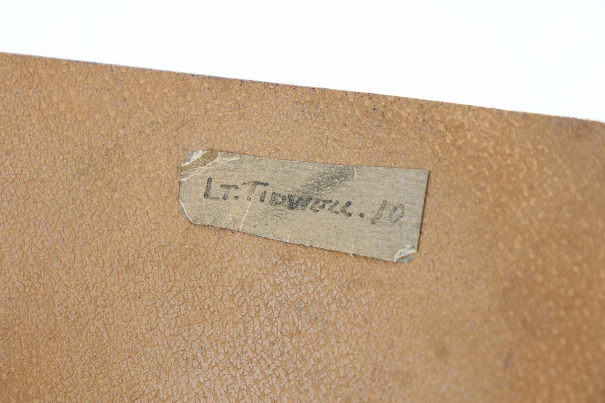 2/13/20 – From the family of the vet comes this incredible Colt 1911A1 grouping from a former Air Force pilot during World War II. This assembly comes via Paul Edward Tidwell, who was a Captain and C-47 pilot. He flew in the Battle of the Bulge with the primary role of dropping paratroopers, then later was responsible for flying fuel in and taking the wounded back out. More details of Tidwell’s service can be forwarded upon request, but he ended the war with over 750 hours of flight time. Included with this listing is many of Captain Tidwell’s wartime belongings. Among them, a manual device for computing altitude and airspeed, his pilot aviator glasses with Air Force marked case, military issued sewing kit and New Testament, various uniform patches and buttons, his navigation student workbooks, the ‘yearbook’ for his graduating class at the Air Force, original shoulder holster for the pistol, his handbook on instrument flying techniques and procedures, and several original photographs taken and annotated by Captain Tidwell. On top of that, the pistol is in near-mint condition. Made in late-1943, it has all proper markings and original finish/parts. A grouping of this nature only comes through our office but a few times per year, and rarely in such condition.