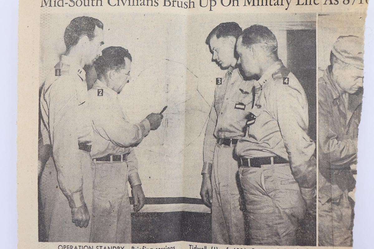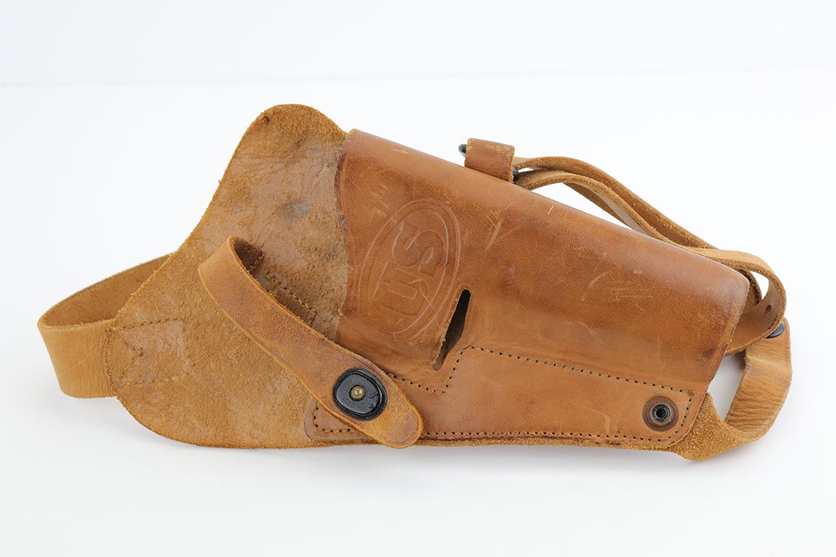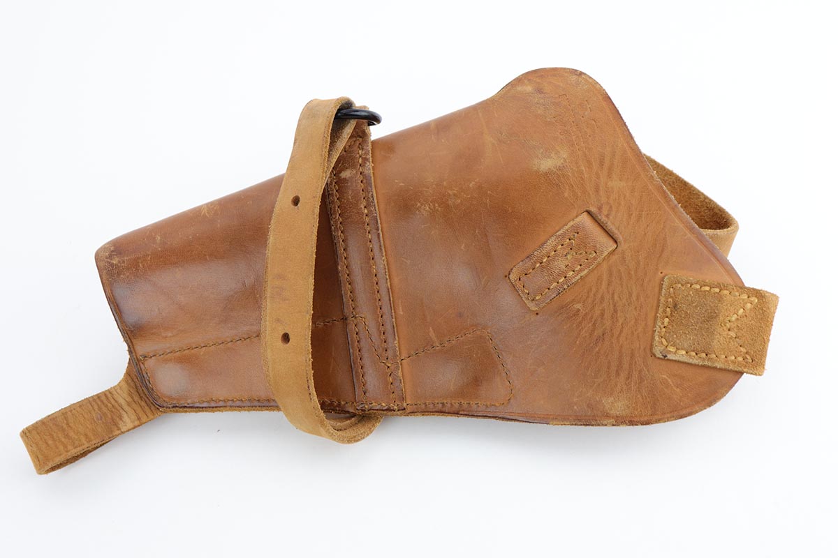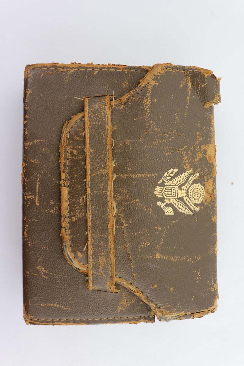 2/13/20 – From the family of the vet comes this incredible Colt 1911A1 grouping from a former Air Force pilot during World War II. This assembly comes via Paul Edward Tidwell, who was a Captain and C-47 pilot. He flew in the Battle of the Bulge with the primary role of dropping paratroopers, then later was responsible for flying fuel in and taking the wounded back out. More details of Tidwell’s service can be forwarded upon request, but he ended the war with over 750 hours of flight time. Included with this listing is many of Captain Tidwell’s wartime belongings. Among them, a manual device for computing altitude and airspeed, his pilot aviator glasses with Air Force marked case, military issued sewing kit and New Testament, various uniform patches and buttons, his navigation student workbooks, the ‘yearbook’ for his graduating class at the Air Force, original shoulder holster for the pistol, his handbook on instrument flying techniques and procedures, and several original photographs taken and annotated by Captain Tidwell. On top of that, the pistol is in near-mint condition. Made in late-1943, it has all proper markings and original finish/parts. A grouping of this nature only comes through our office but a few times per year, and rarely in such condition.