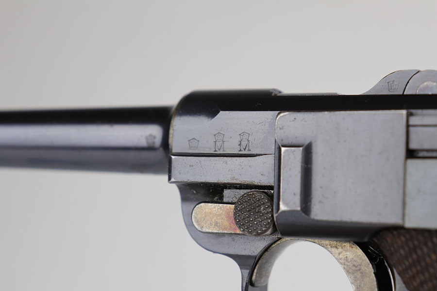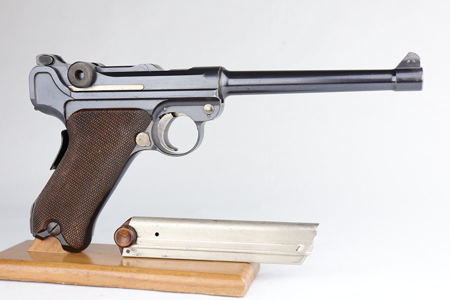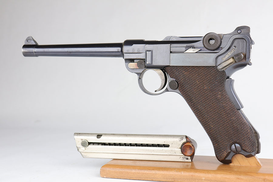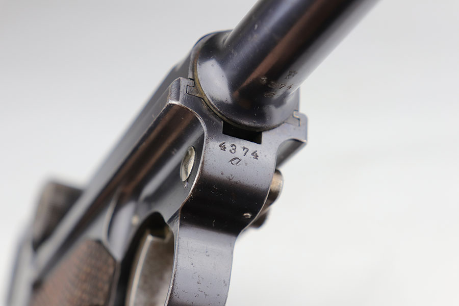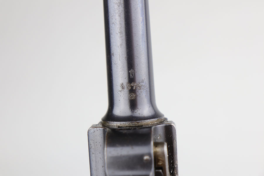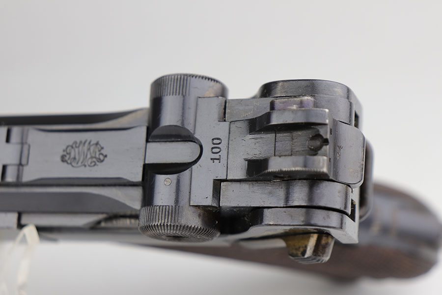 4/24/20 – This is an incredible DWM M1906 Navy Luger in all original conditon. It’s in the proper serial range and one of only about 21,000 of these produced. This model has a six inch barrel, grip safety and blank chamber. Rear strap is marked ‘WW 3128’ to denote that it was sent to the dockyard at Wilhelmshaven. Original blue rates at about 98% with minor high point wear and a little bit of freckling on the rear edge of the frame. Small parts have about 50% original straw. Original Navy magazine that is numbered but mismatched. Crown/M Navy proofs in several spots. Excellent original grips with only minor handling wear. Bore is shiny with strong rifling.
