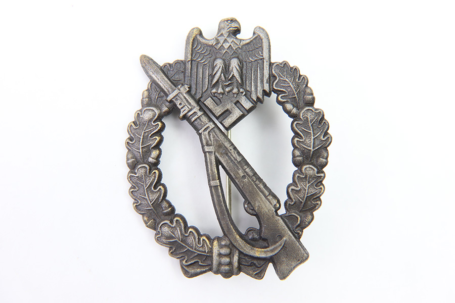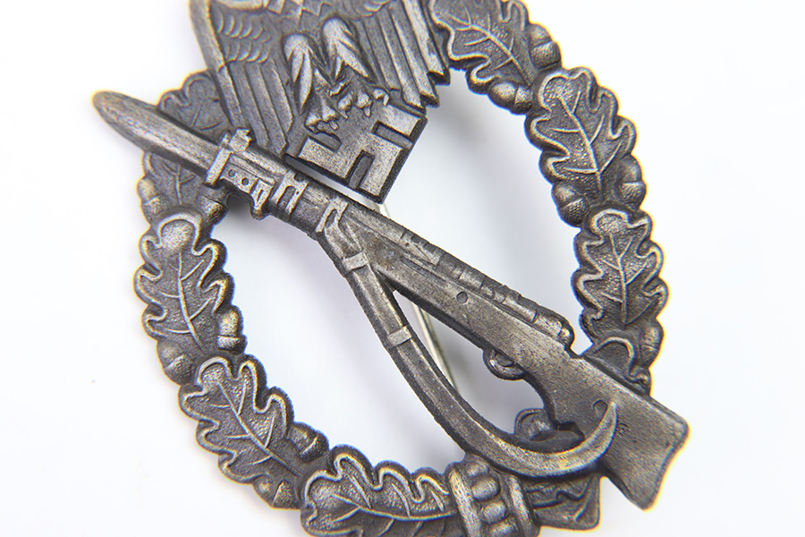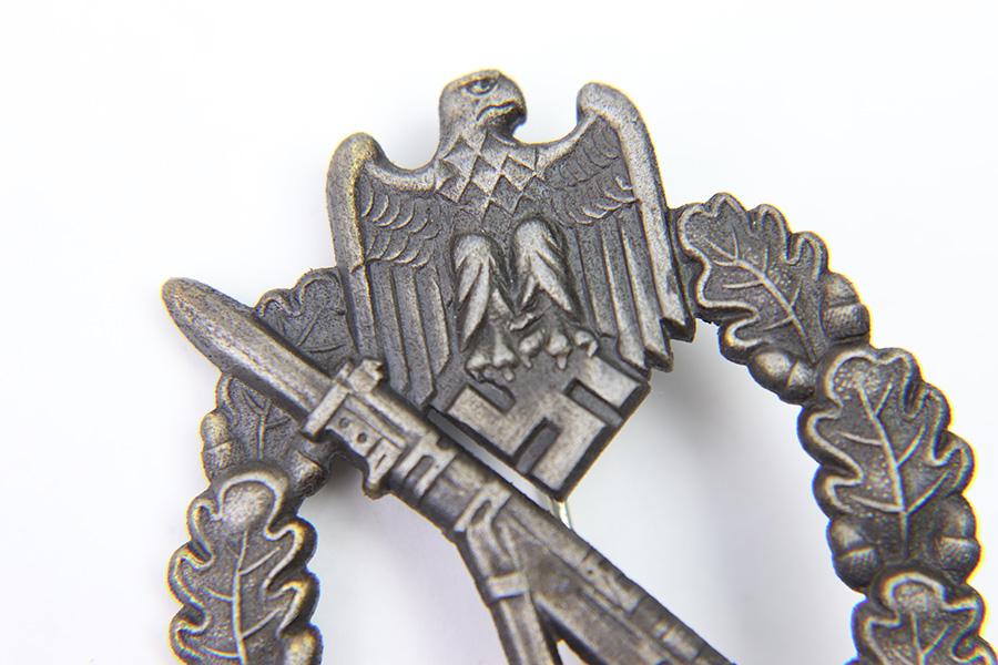 8/1/22 – This is an original WW2 German Infantry Assault Badge. Great overall condition with a fully functional, original pin and clasp. The back of the medal is maker stamped by JFS. The front of the badge shows typical surface patina and natural aging.