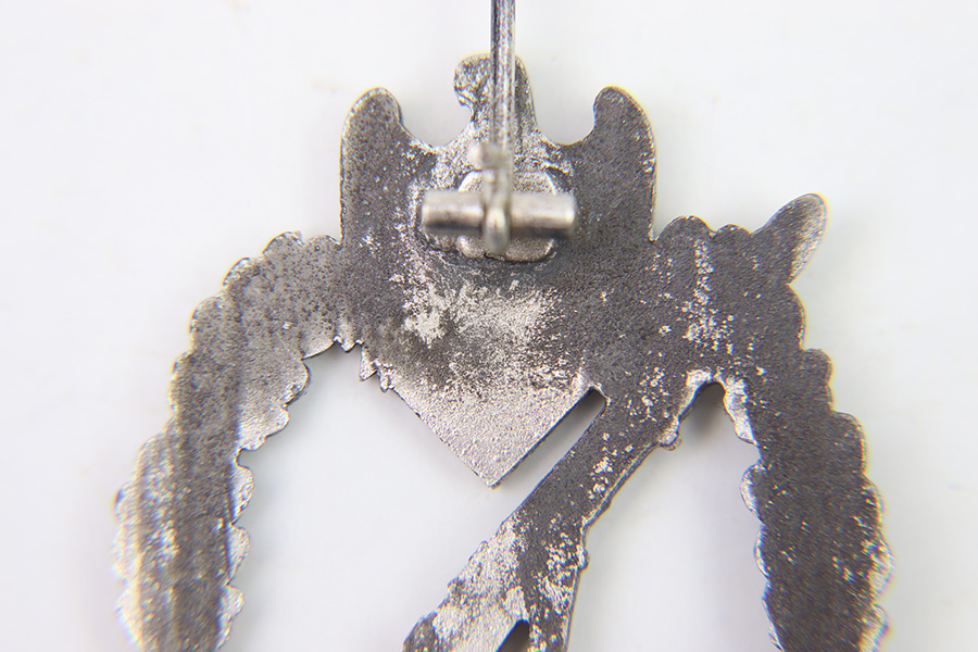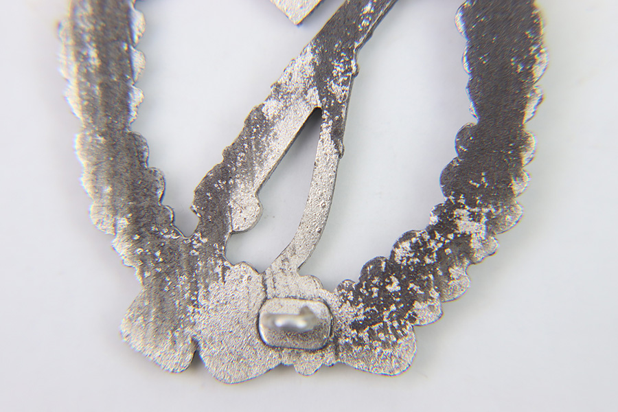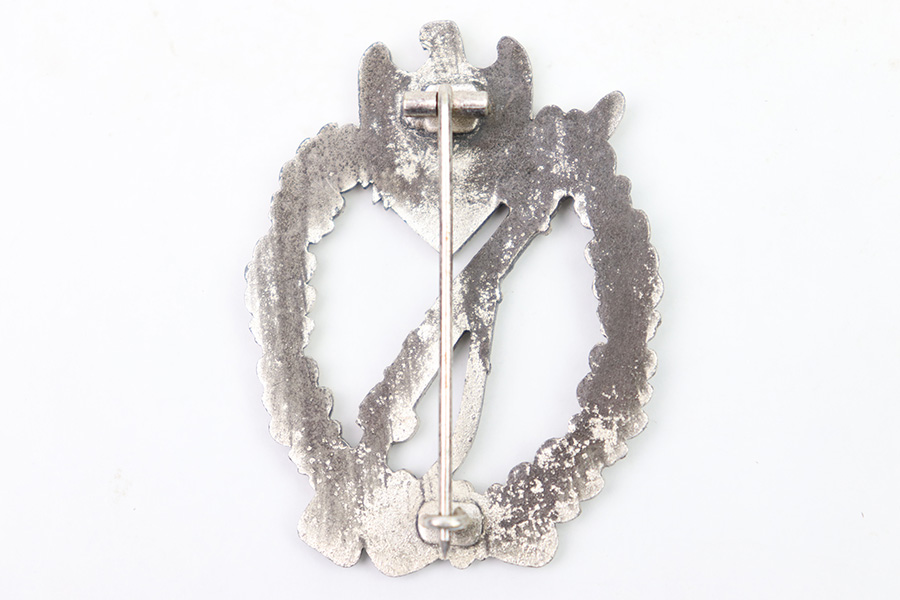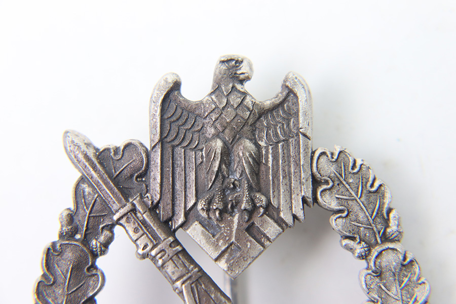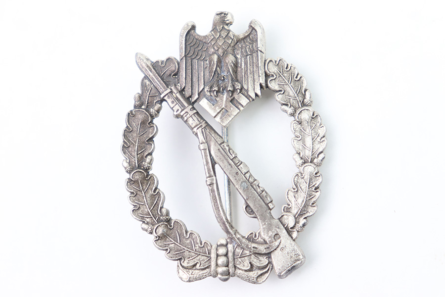8/30/22 – This is an original WW2 German Infantry Assault Badge. The badge is silver grade and in very good overall condition. There’s some dark surface patina as well as signs of aging throughout the one-piece medal. The fastening pin / clasp is functional and in great shape. No maker markings or stamps.