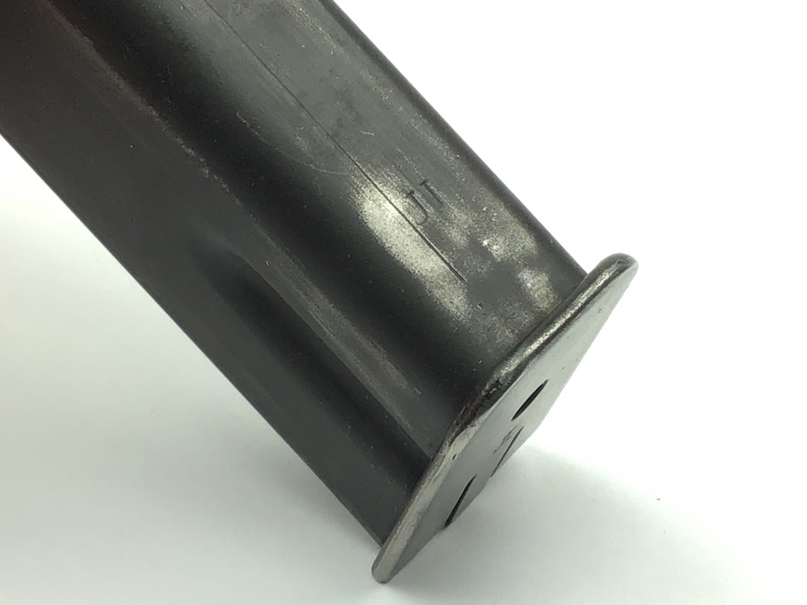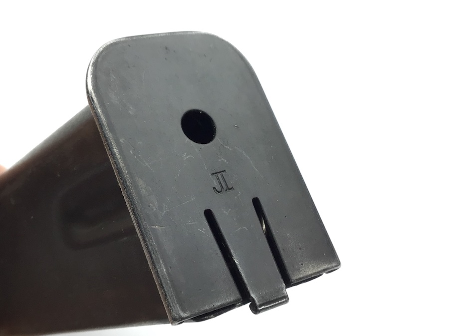 11/30/20 – This is an original Inglis High Power magazine. Holds 13 rounds of 9mm ammo. The front spine and bottom of the magazine are “J.I.” marked. There is no rust or pitting on the magazine. Minor use wear. Overall the magazine is in excellent condition and fully functional.