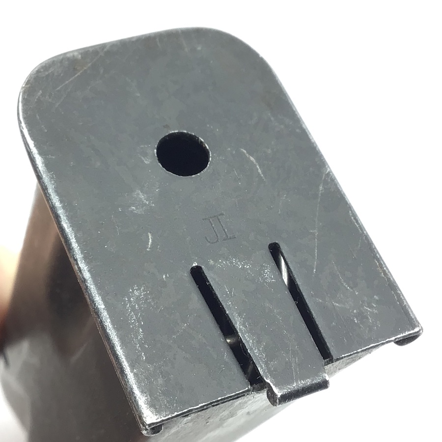 1/6/21 – This is an original Inglis High Power magazine. Holds 13 rounds of 9mm ammo. The front spine and bottom of the magazine are “J.I.” marked. There is no rust or pitting on the magazine. Minor use wear. Overall the magazine is in excellent condition and fully functional.