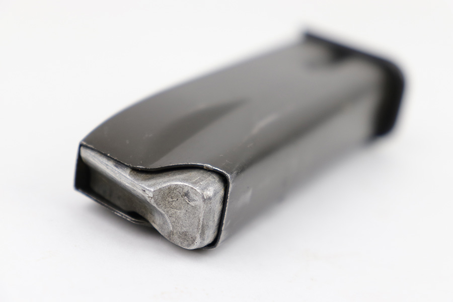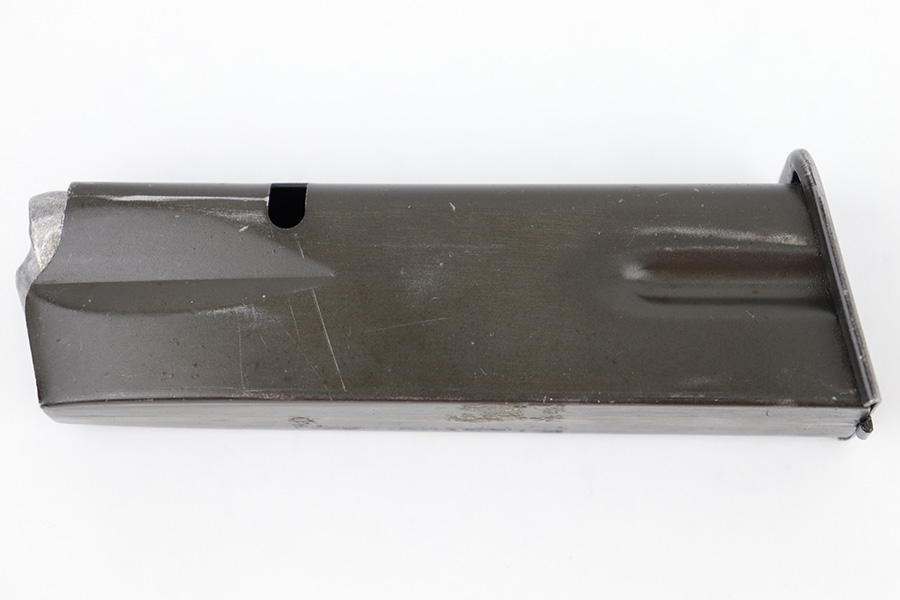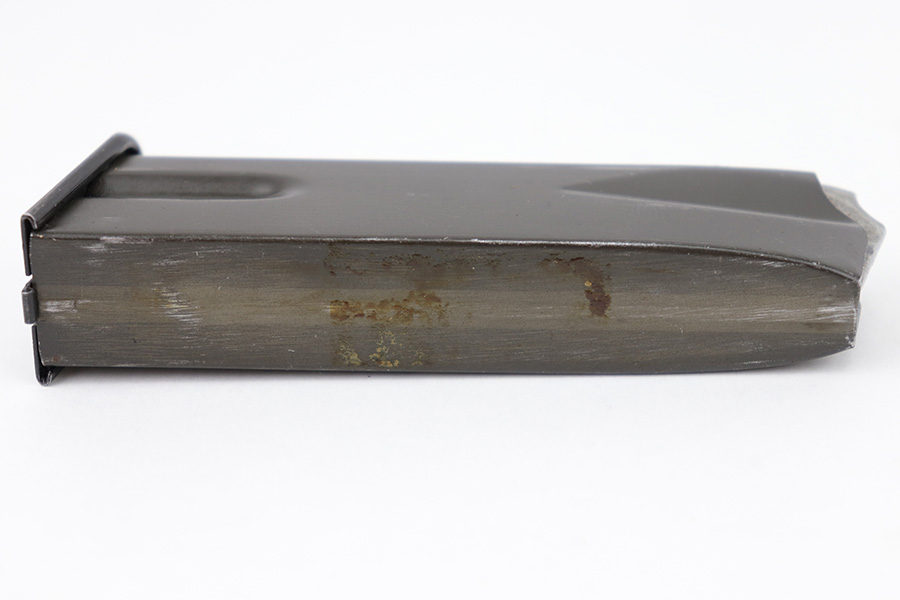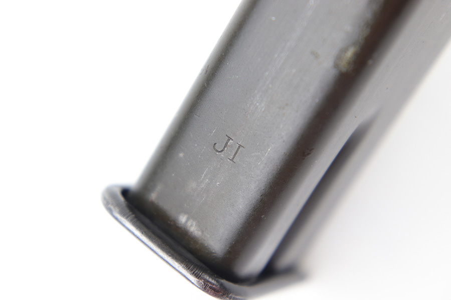 7/21/23 – This is an original WW2 era production Inglis High Power magazine. Great overall condition with some mild finish loss throughout the tube and some old oil residue on the spine. Fully functional with a strong spring. Holds 14 rounds of 9mm.