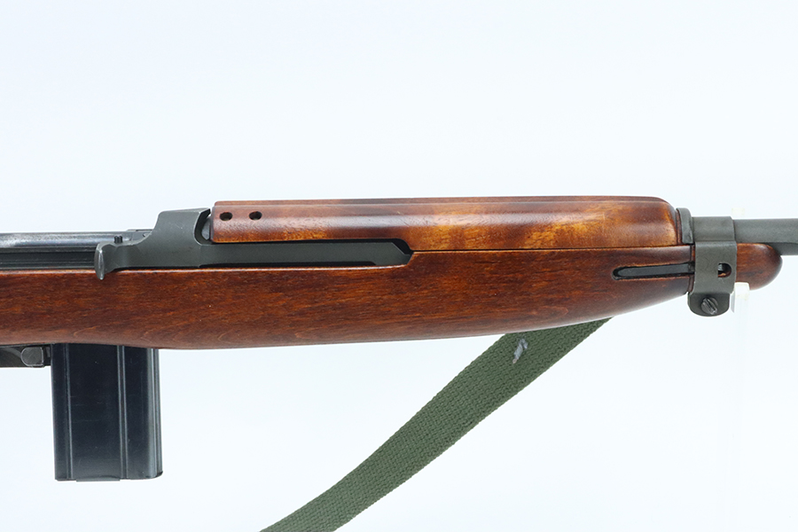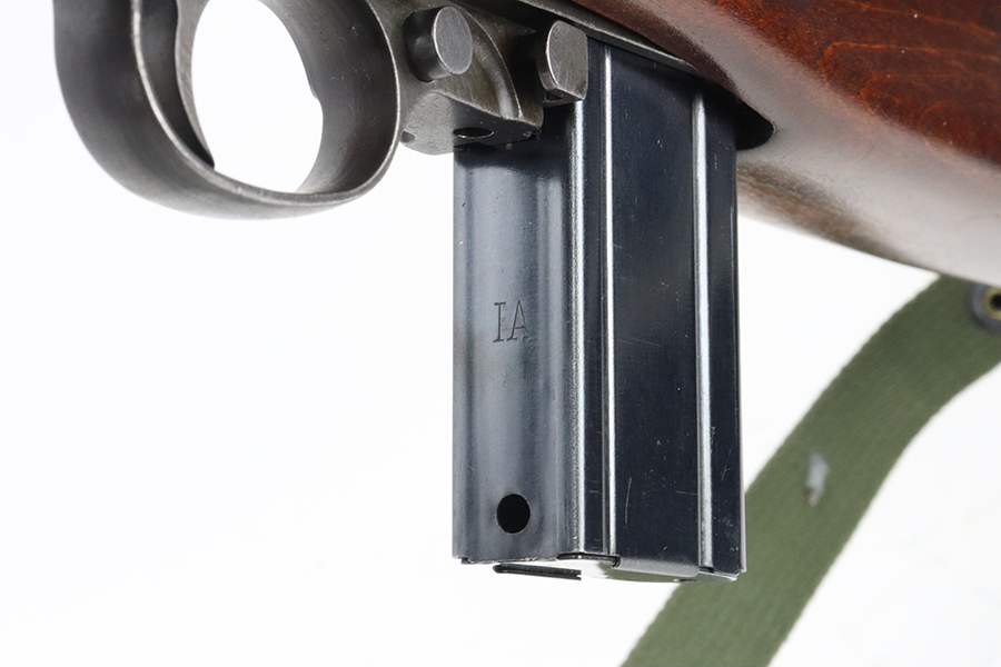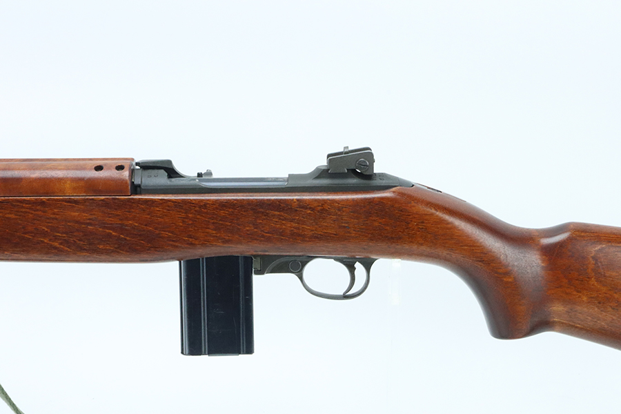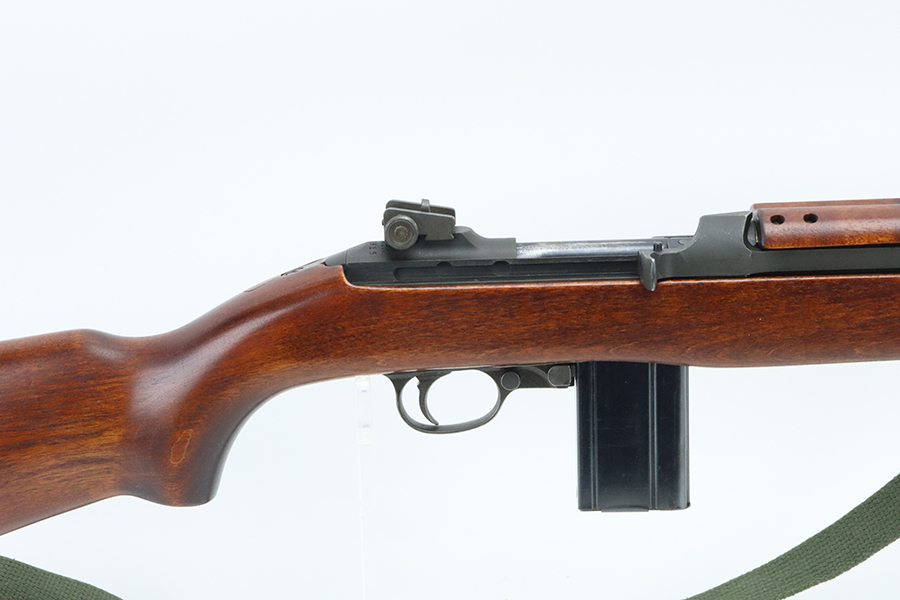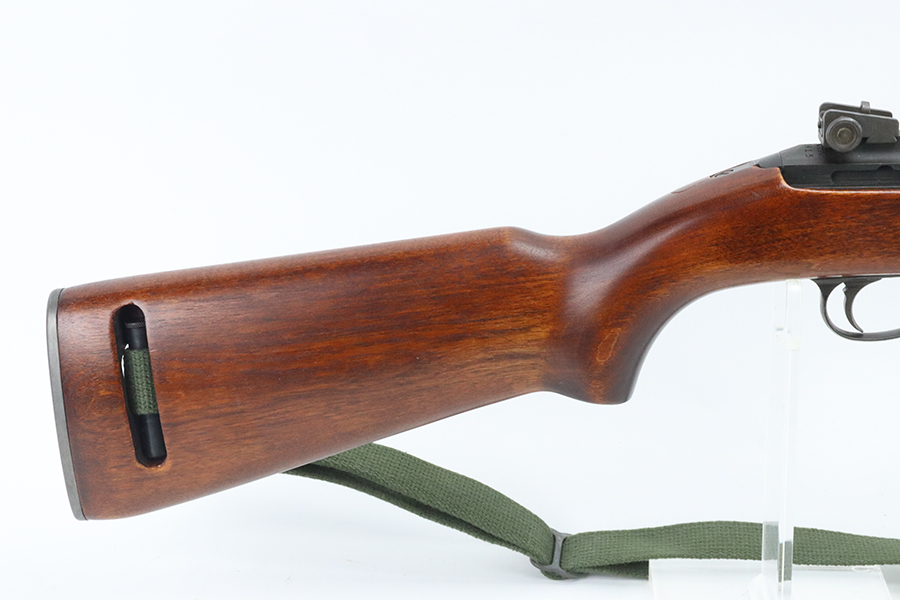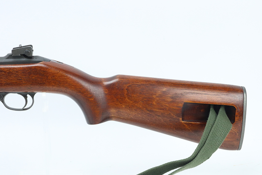 8/20/24 – This is an excellent example of an Inland M1 Carbine from 1944. A complete list of parts and markings is included in the photos. It has an adjustable rear sight with a bayonet lug. The metal parts have retained virtually of their finish. The stock has been heavily sanded and refinished. A brass medallion has been added to the grip cap. Minty bore. Comes with a canvas sling, oiler, and one magazine.