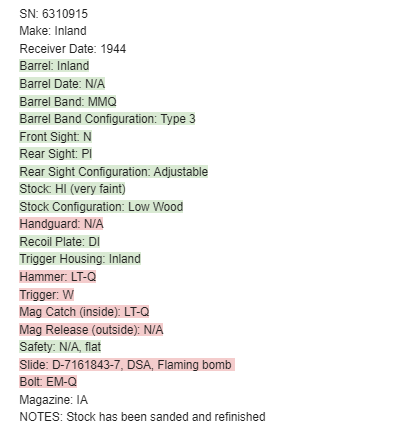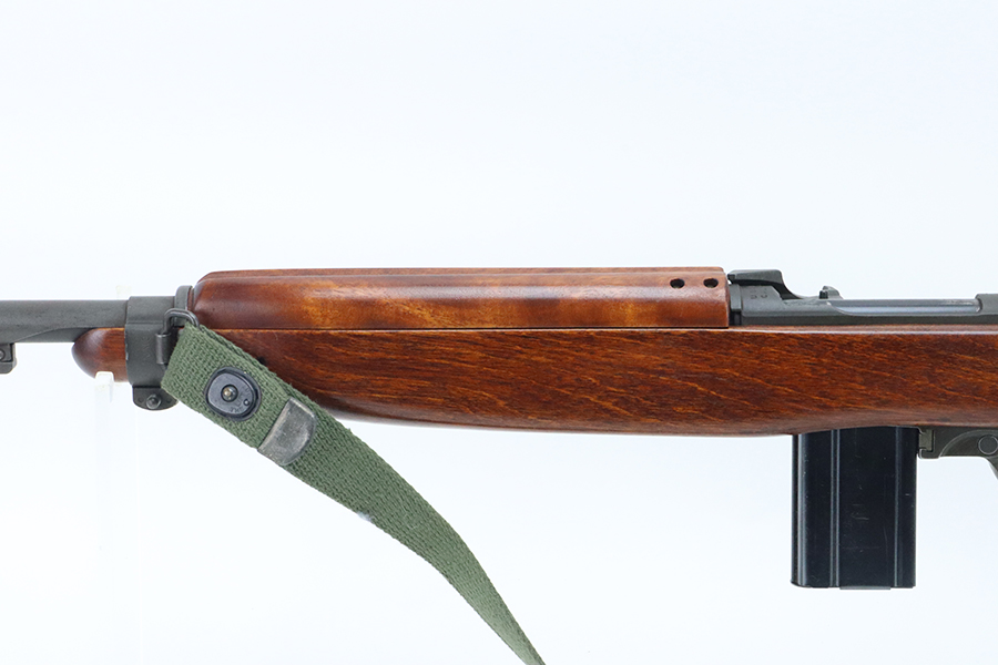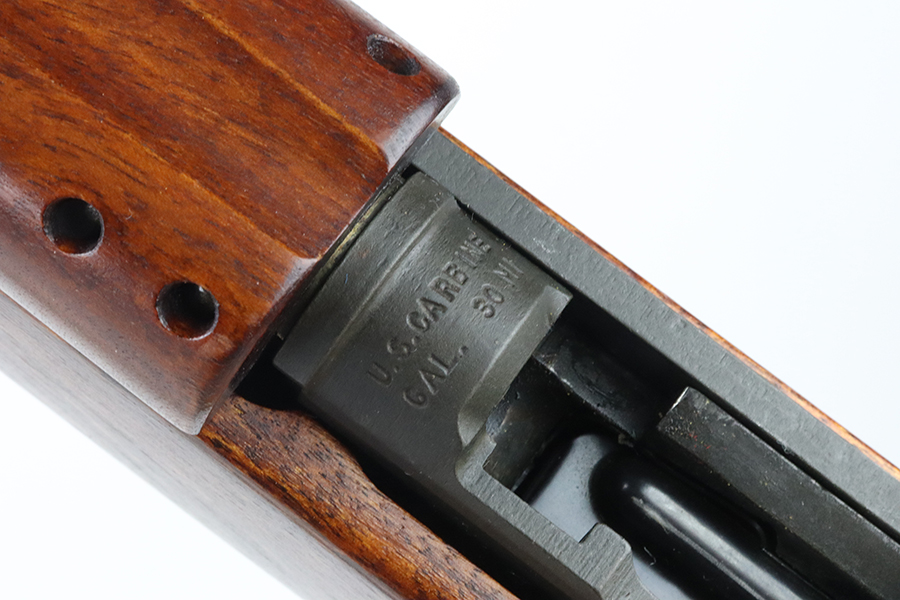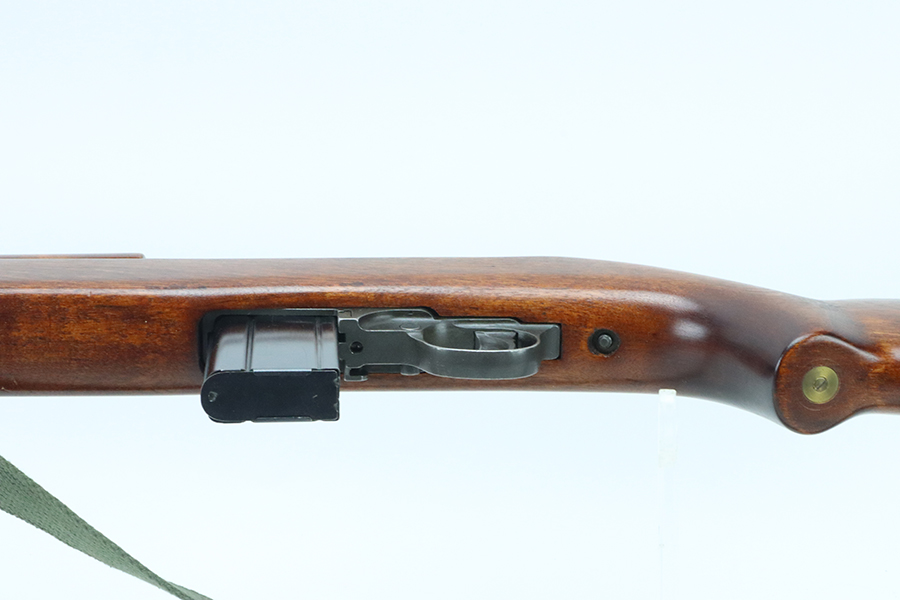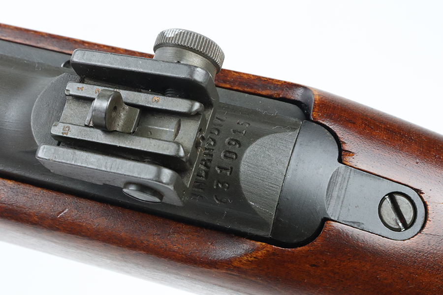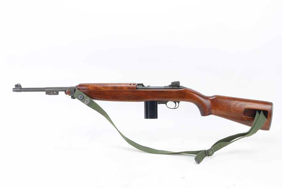 8/20/24 – This is an excellent example of an Inland M1 Carbine from 1944. A complete list of parts and markings is included in the photos. It has an adjustable rear sight with a bayonet lug. The metal parts have retained virtually of their finish. The stock has been heavily sanded and refinished. A brass medallion has been added to the grip cap. Minty bore. Comes with a canvas sling, oiler, and one magazine.