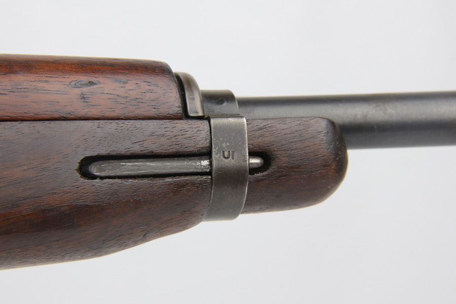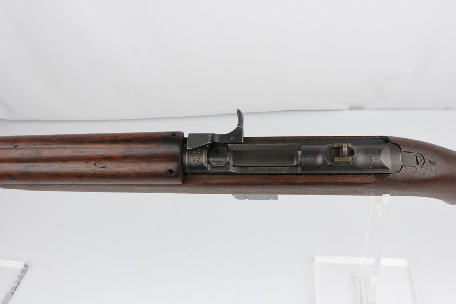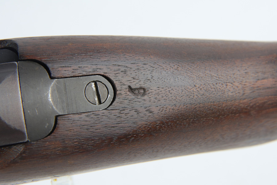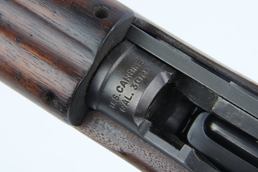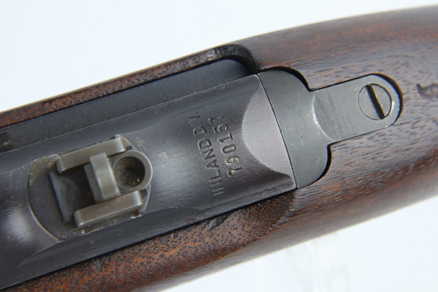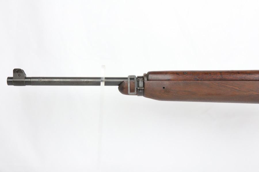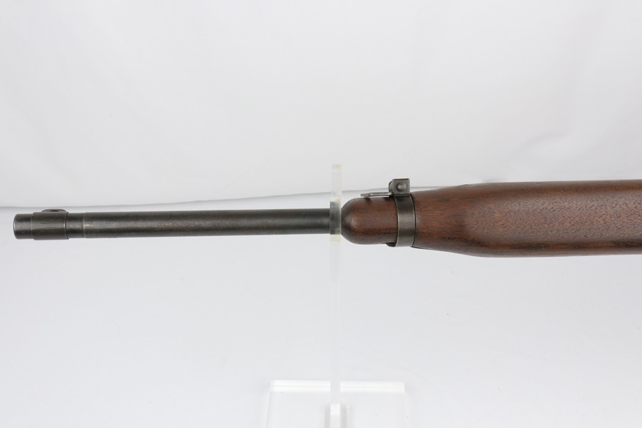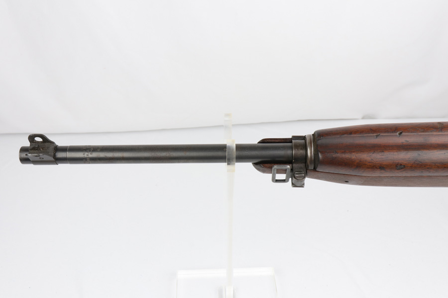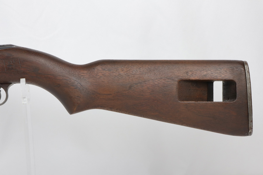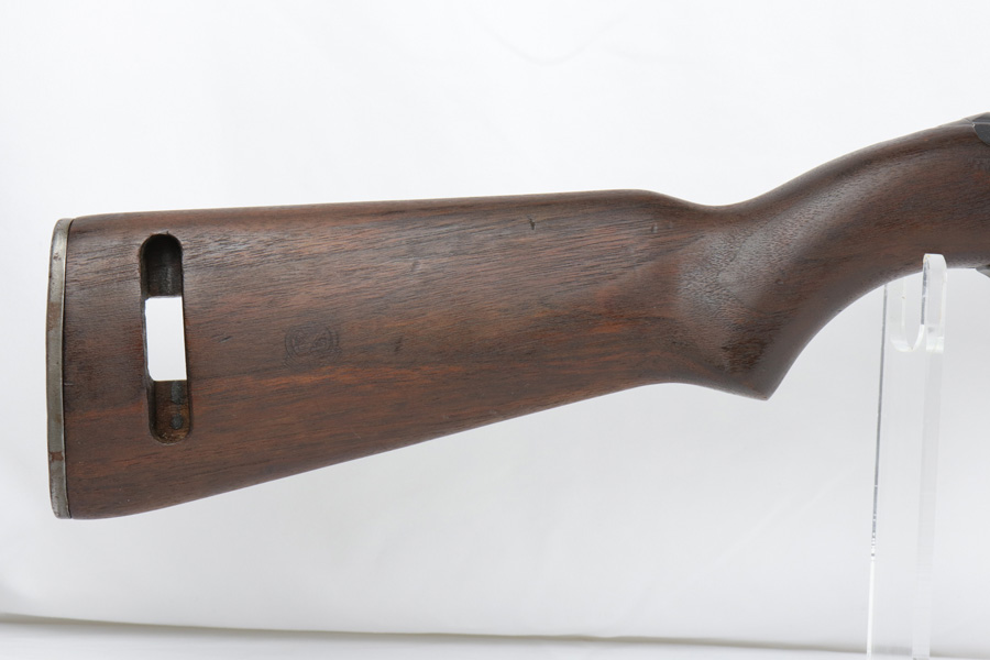12/31/18 – This is an original M1 Carbine made by Inland for WW2. The serial number puts this rifle production in 1942. The stock is military cartouche stamped and “RIA” on the opposite side for Rock Island Arsenal, meaning this is a replacement stock. Early high wood makes this period correct for the rifle though. There is a small crack in the stock near the charging handle. The metal parts are all correct and original to the rifle. The metal is in about 85-90% condition with some patina on the barrel as well as light finish loss on the barrel. Some light rust on the edges of the butt plate. The bore is excellent and shiny though with good rifling and light signs of use. Guaranteed original and authentic.