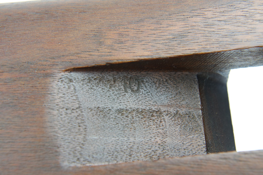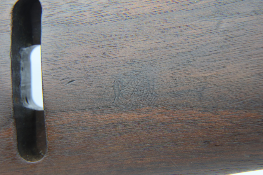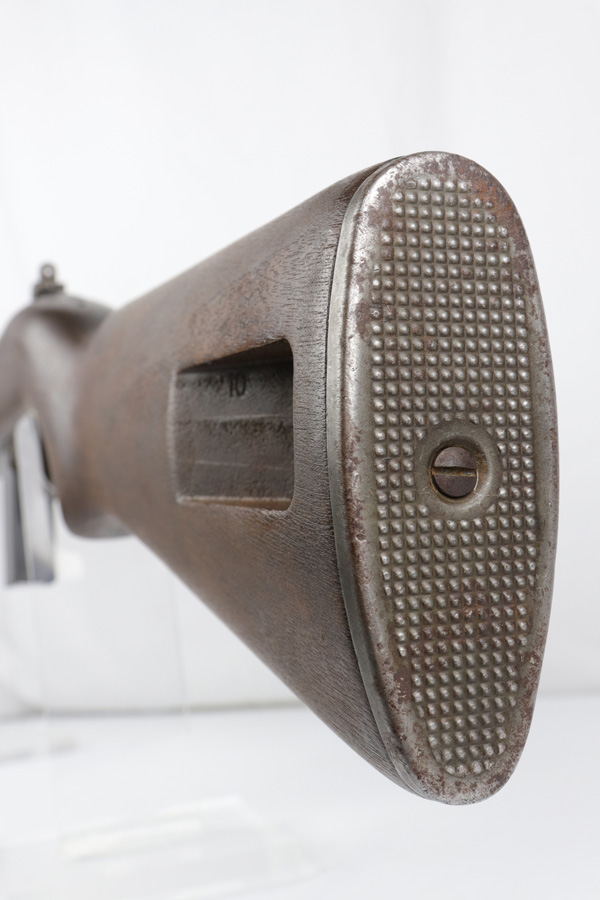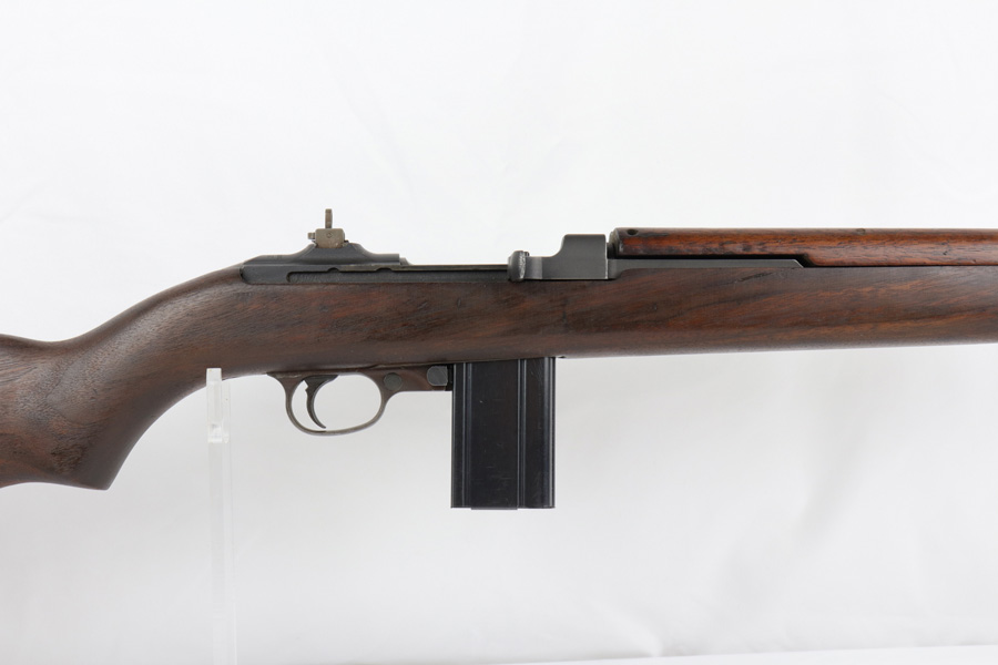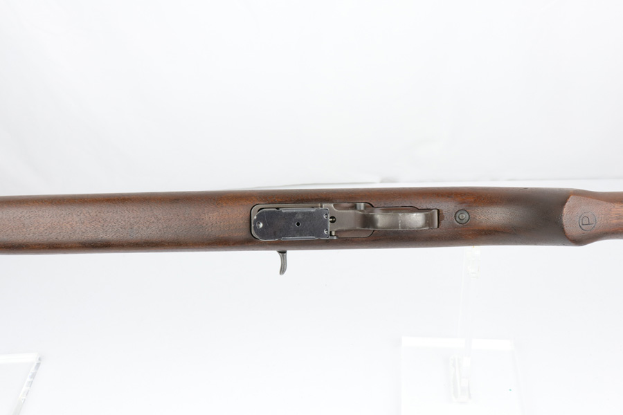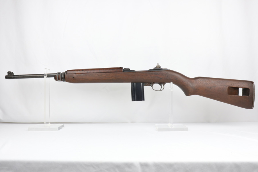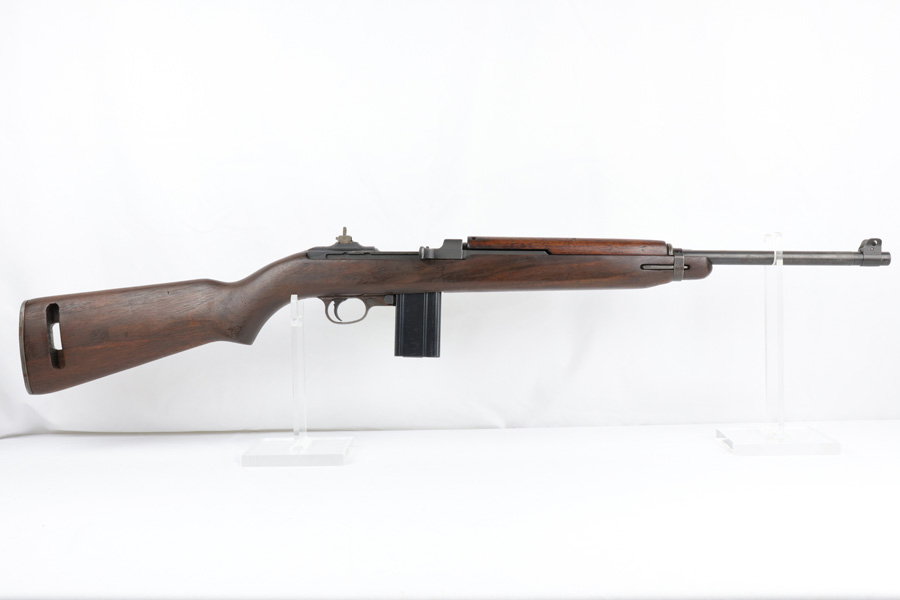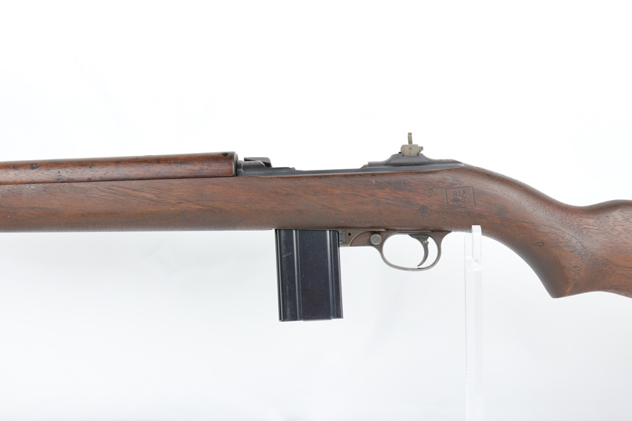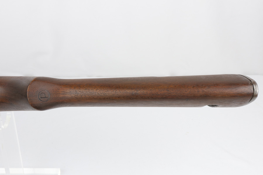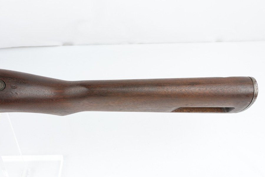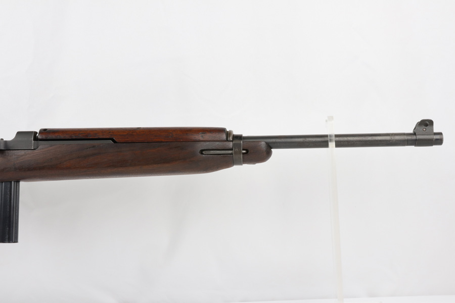 12/31/18 – This is an original M1 Carbine made by Inland for WW2. The serial number puts this rifle production in 1942. The stock is military cartouche stamped and “RIA” on the opposite side for Rock Island Arsenal, meaning this is a replacement stock. Early high wood makes this period correct for the rifle though. There is a small crack in the stock near the charging handle. The metal parts are all correct and original to the rifle. The metal is in about 85-90% condition with some patina on the barrel as well as light finish loss on the barrel. Some light rust on the edges of the butt plate. The bore is excellent and shiny though with good rifling and light signs of use. Guaranteed original and authentic.