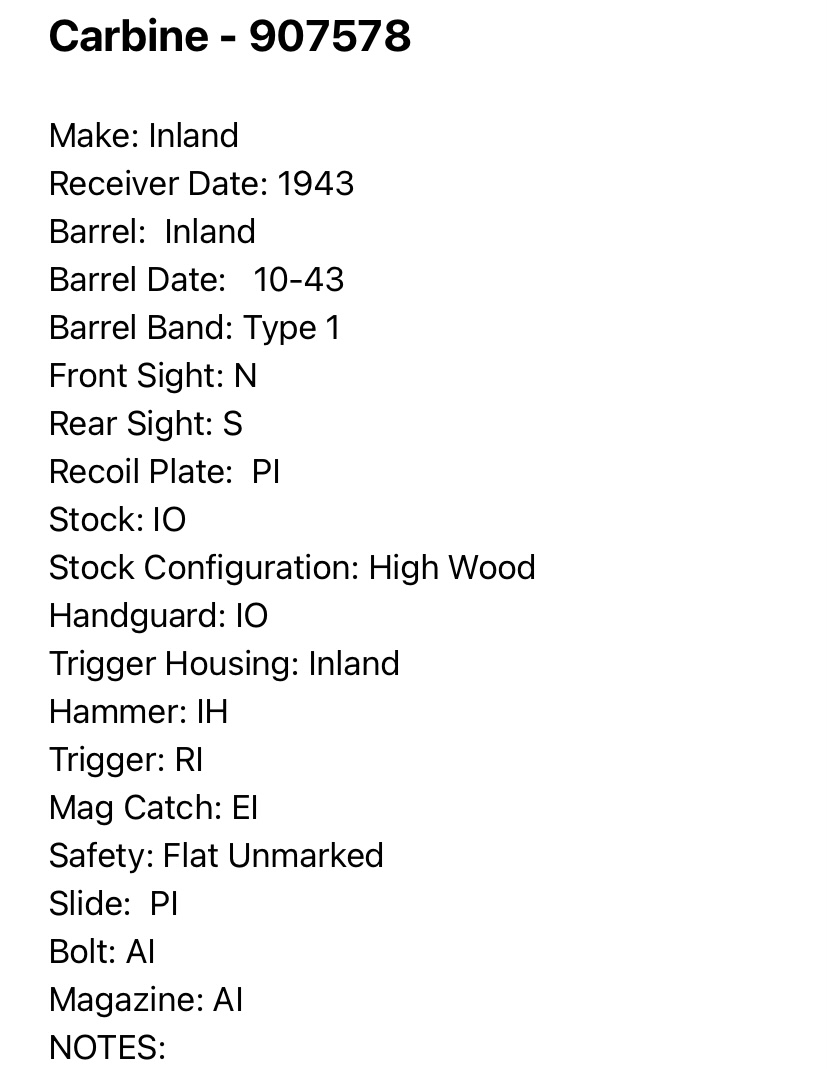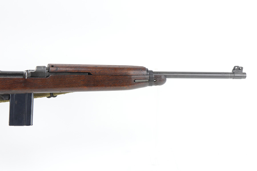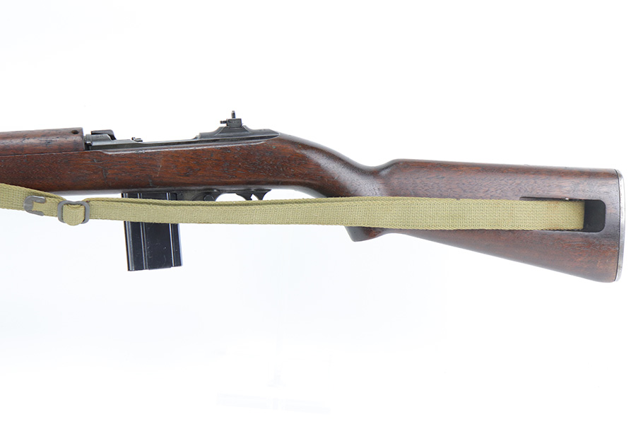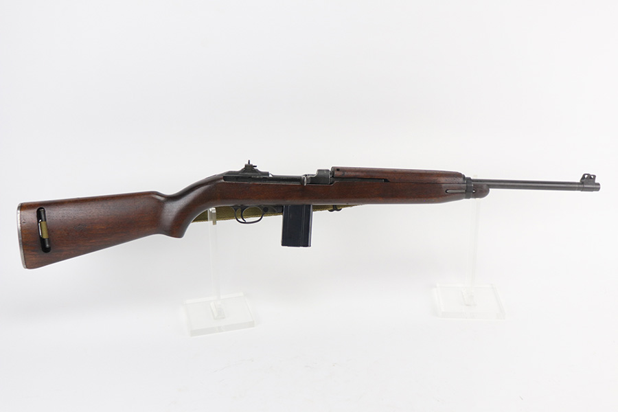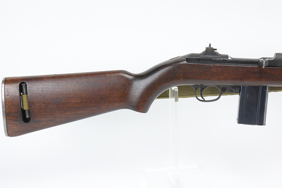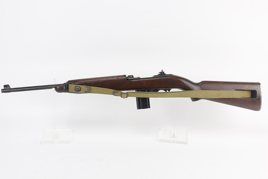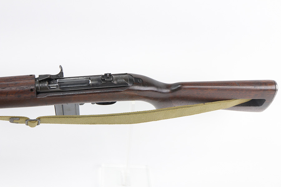 11/10/21 – This is an all original and correct Inland M1 Carbine from late in 1943. A full parts list is included in the photos for the listing, but this one is “as-issued” to the military during the war. Correct parts throughout, with original finish on metal parts. It shows some general patina and thinning on the receiver and trigger group. Terrific bore. Stock has standard dings and handling wear but no major issues. Circle P and crossed cannons cartouche also visible on stock. Comes with canvas sling.