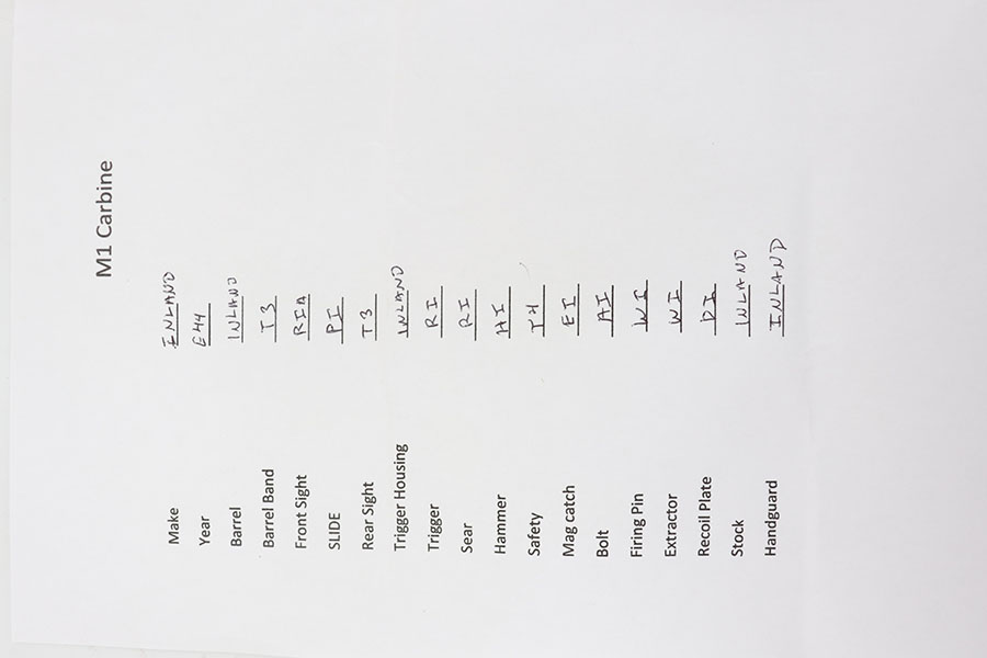 8/12/20 – This is a nice example of an Inland produced M1 carbine from 1945. A full parts list is included in the photos but this one is mostly correct with Inland receiver, barrel and stock, and most small parts. The bayonet lug was likely added after the war, but the rifle is in excellent condition with just a bit of finish loss on the barrel/front band. Bore is minty. Terrific stock. Smooth mechanics.
