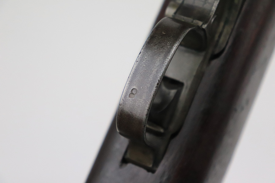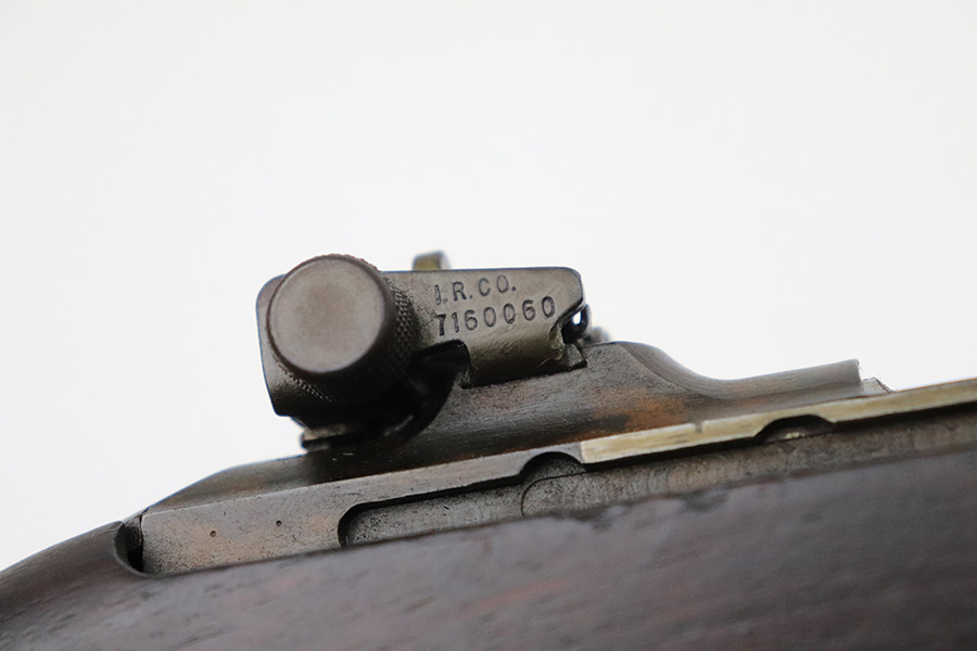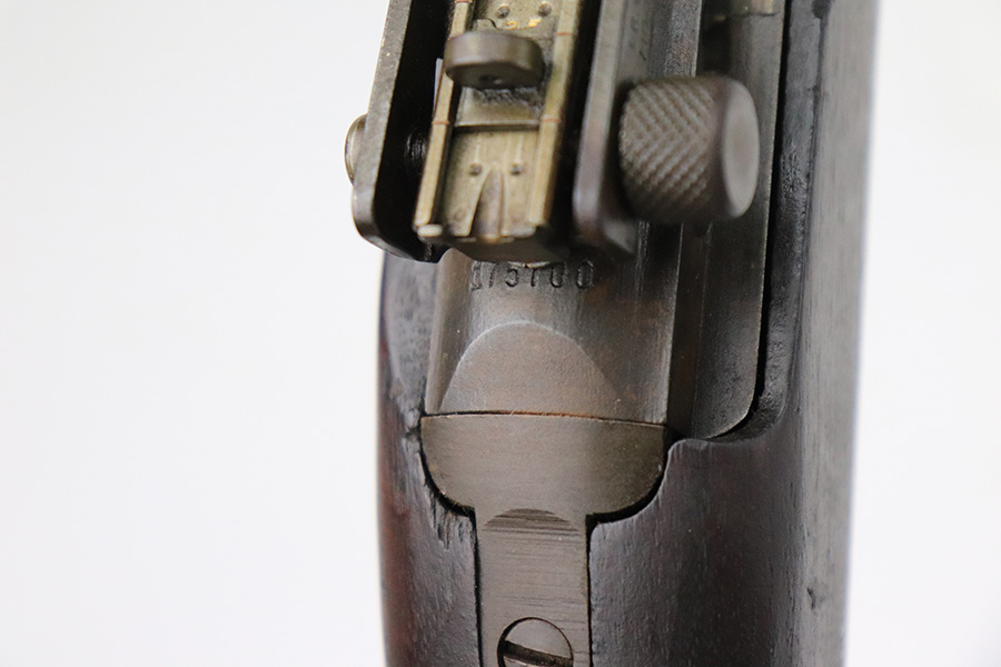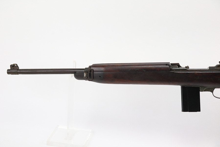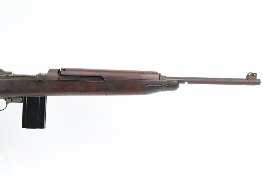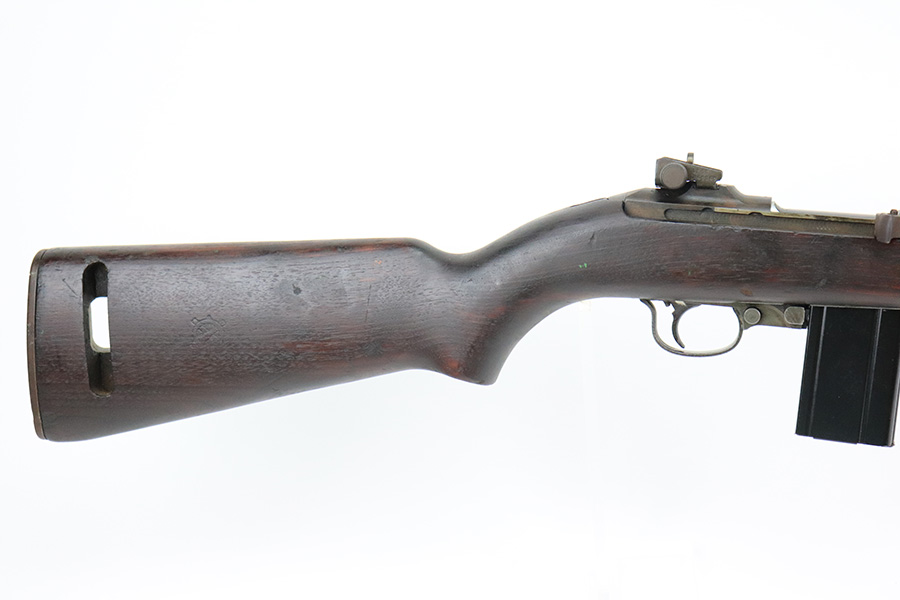 6/14/22 – This is a nice example of an Inland M1 Carbine issued to the US military in 1942-43. The receiver, barrel, and stock are all Inland-marked. Barrel is dated January of 1943. Cross-cannon military cartouche on the right side of the butt stock. It has an adjustable rear sight. The gun is too early for this modification, so it was likely added later. Overall, there is not much actual finish loss, but there is noticeable brown patina on the metal parts throughout. Some areas of very minor surface rust. The stock has only minor dings and scratches here and there. Comes with one proper magazine. Mint bore.