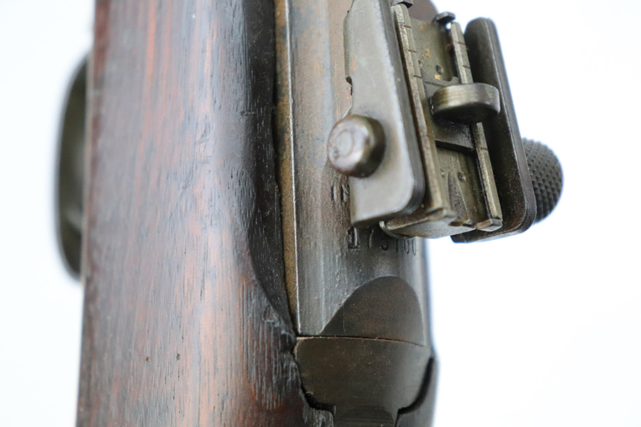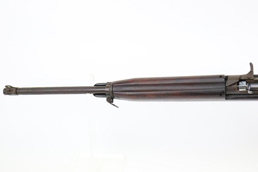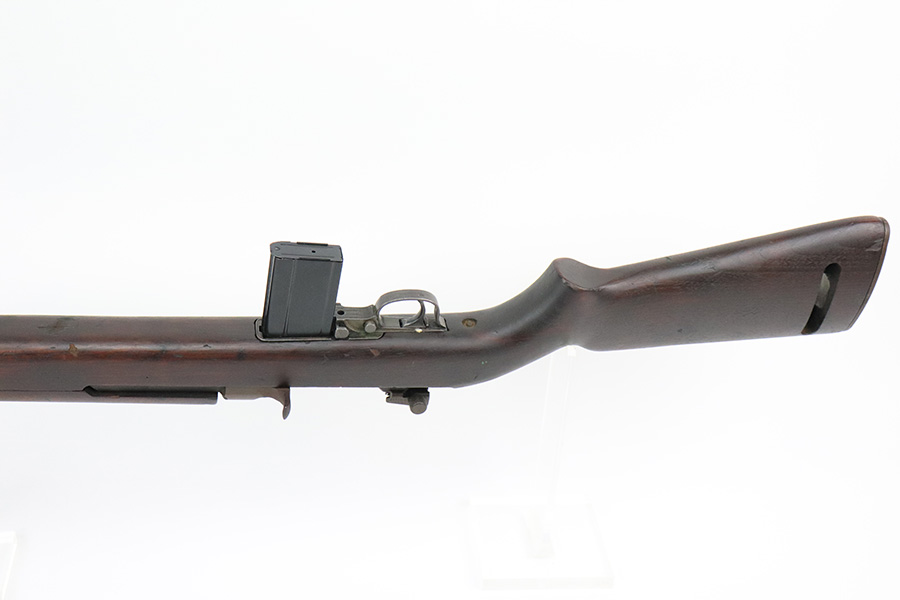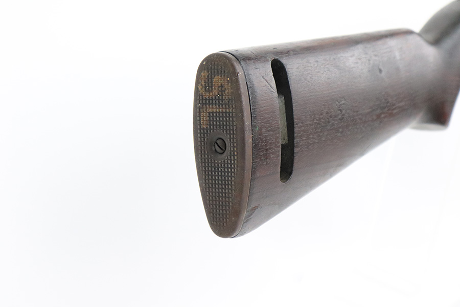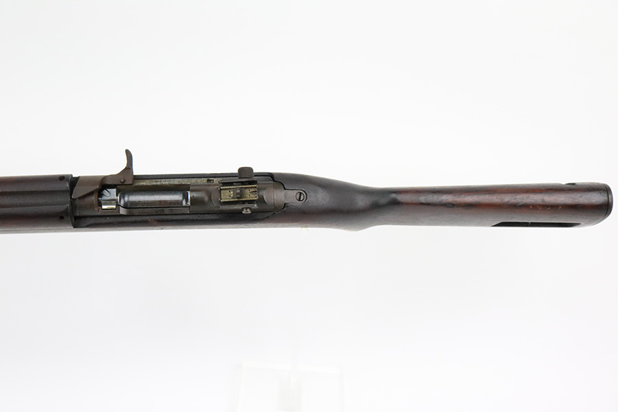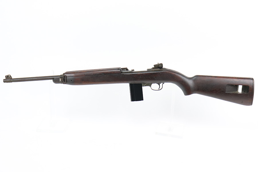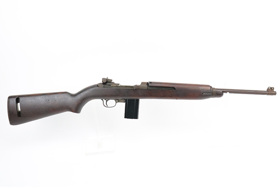 9/28/22 – This is a nice example of an Inland M1 Carbine issued to the US military in 1942-43. The receiver, barrel, and stock are all Inland-marked. Barrel is dated January of 1943. Cross-cannon military cartouche on the right side of the butt stock. It has an adjustable rear sight. The gun is too early for this modification, so it was likely added later. Overall, there is not much actual finish loss, but there is noticeable brown patina on the metal parts throughout. Some areas of very minor surface rust. The stock has only minor dings and scratches here and there. Comes with one proper magazine. Mint bore.