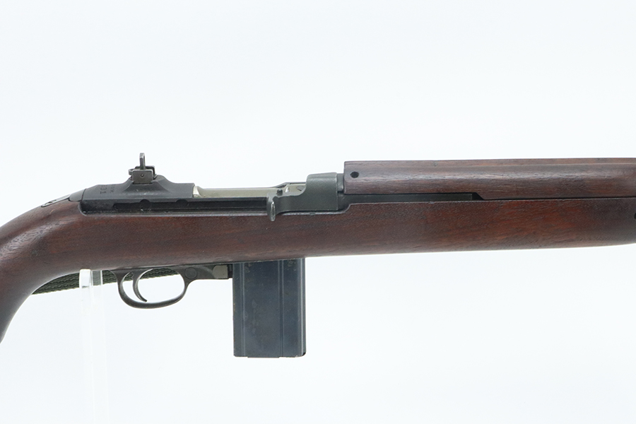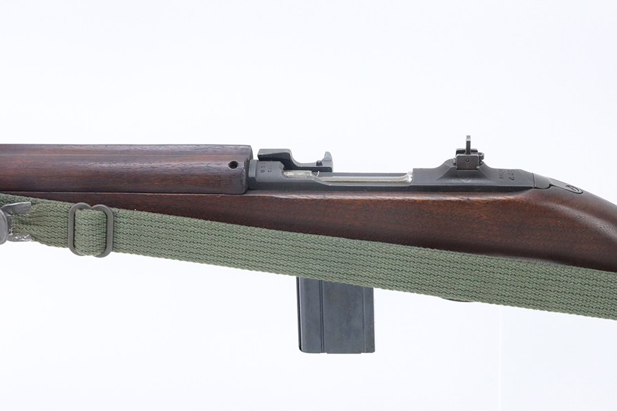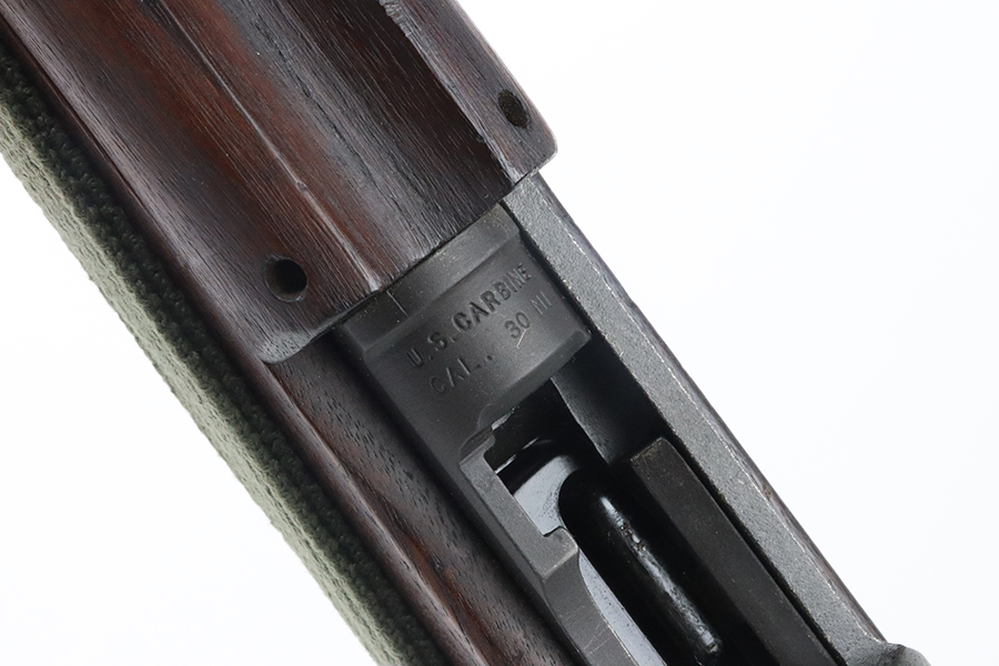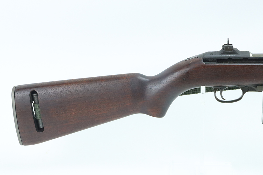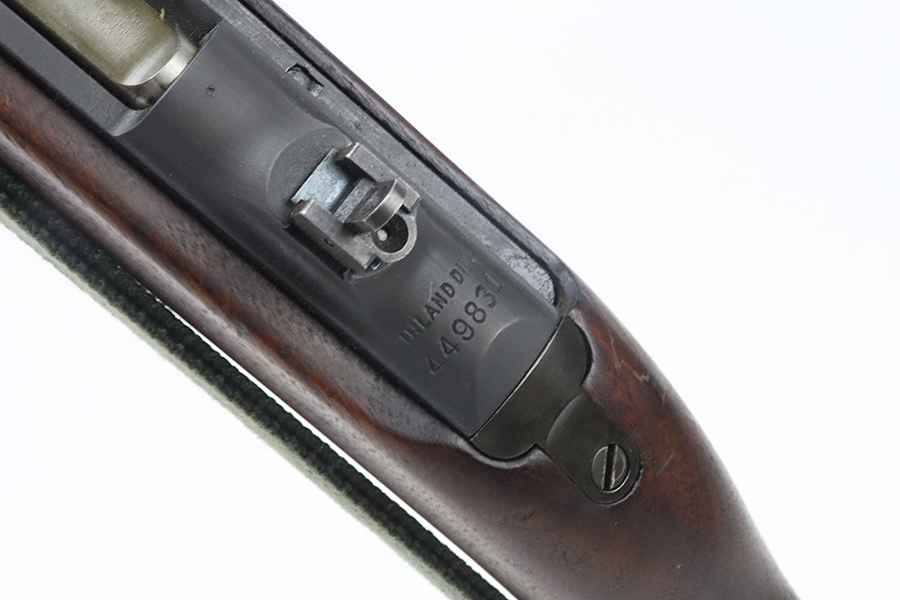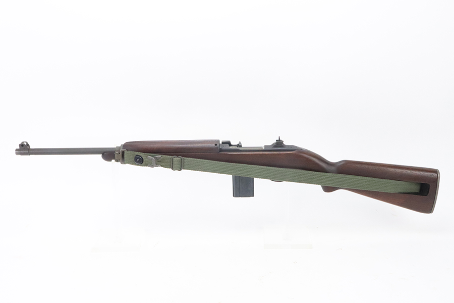 5/16/24 – This is an excellent example of an Inland M1 Carbine issued to the US military in 1943. A complete list of parts and markings is included in the photos. The parts are correct, but the bolt is parkerized when it should be blued, and we believe the receiver has been refinished. Cross canon cartouche on the right side of the butt stock. There is almost no finish loss on the metal parts. Excellent wood stock. Mint bore. Comes with one magazine and a sling.