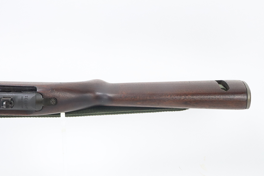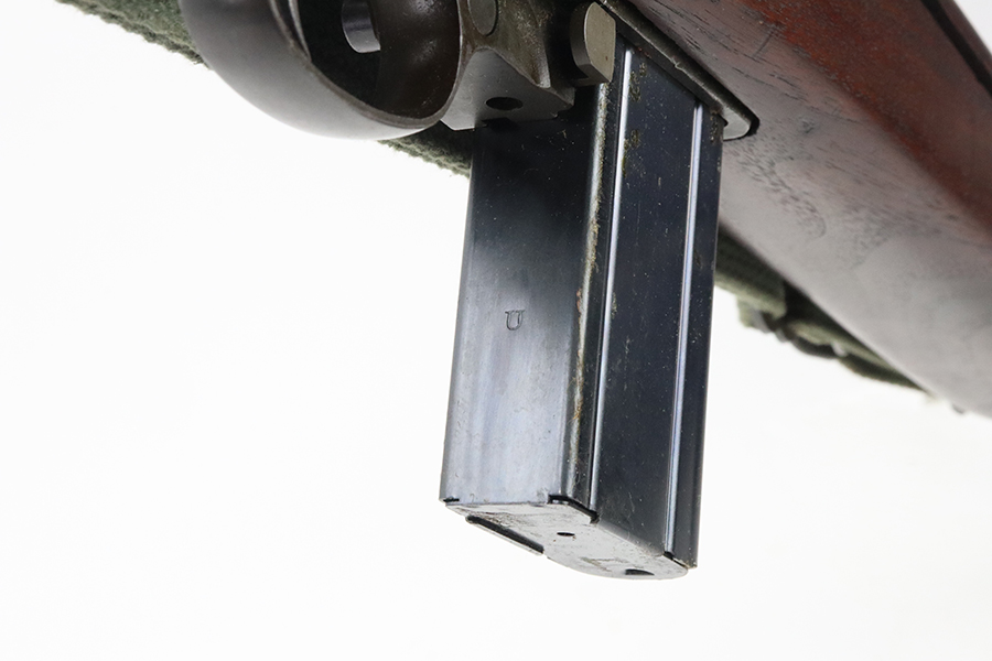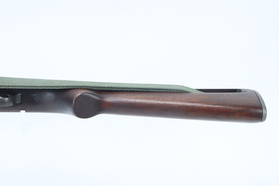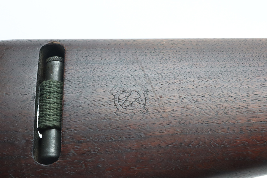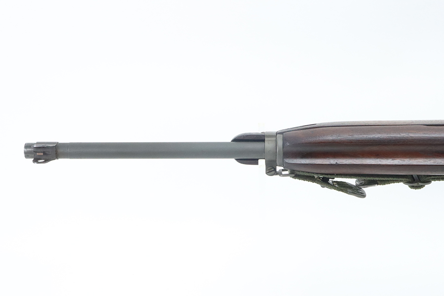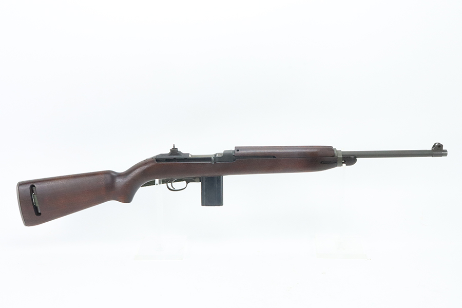 5/16/24 – This is an excellent example of an Inland M1 Carbine issued to the US military in 1943. A complete list of parts and markings is included in the photos. The parts are correct, but the bolt is parkerized when it should be blued, and we believe the receiver has been refinished. Cross canon cartouche on the right side of the butt stock. There is almost no finish loss on the metal parts. Excellent wood stock. Mint bore. Comes with one magazine and a sling.
