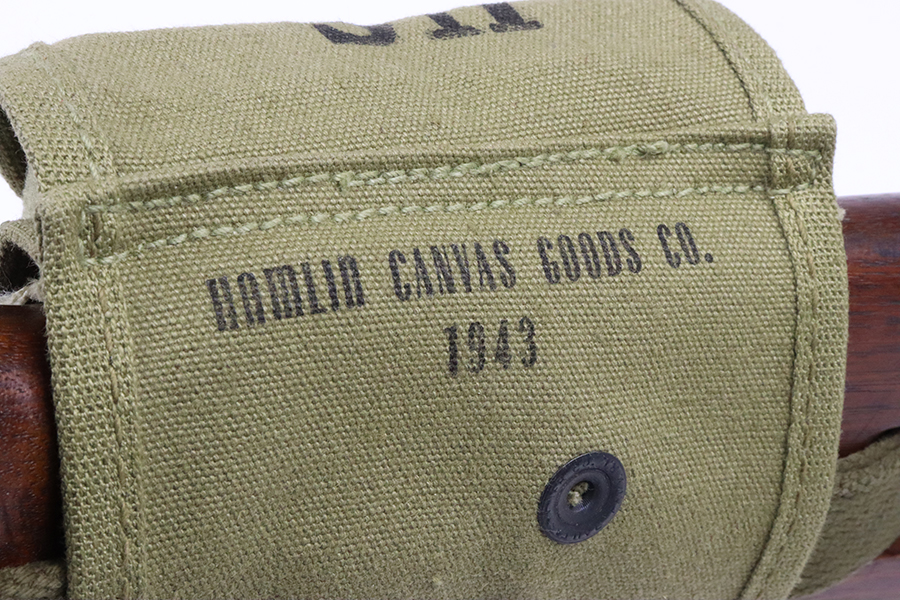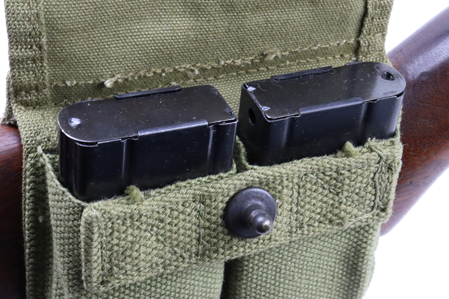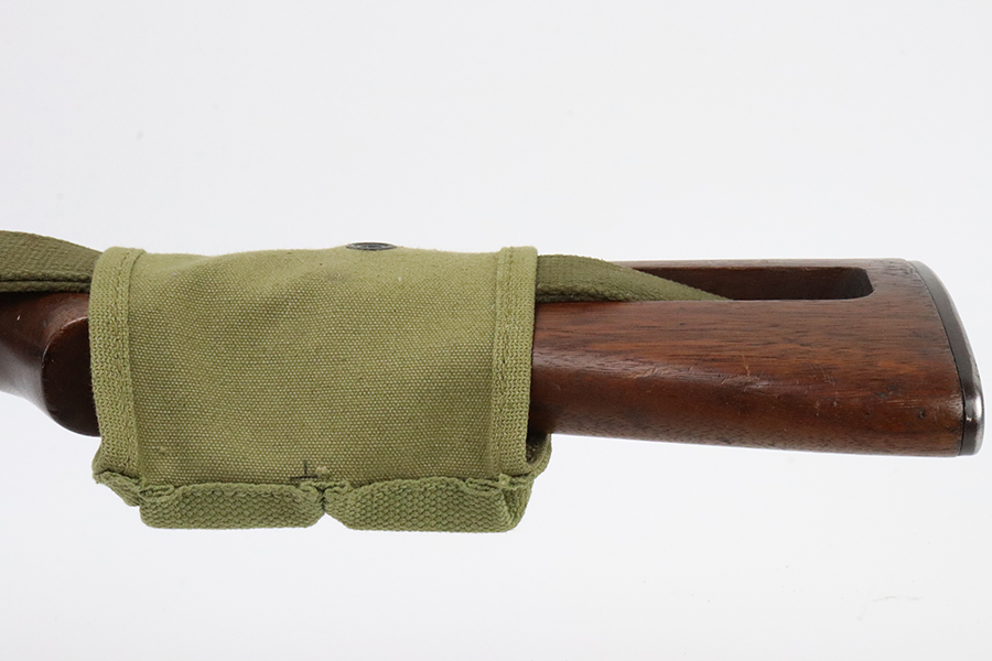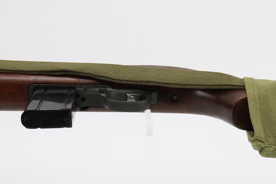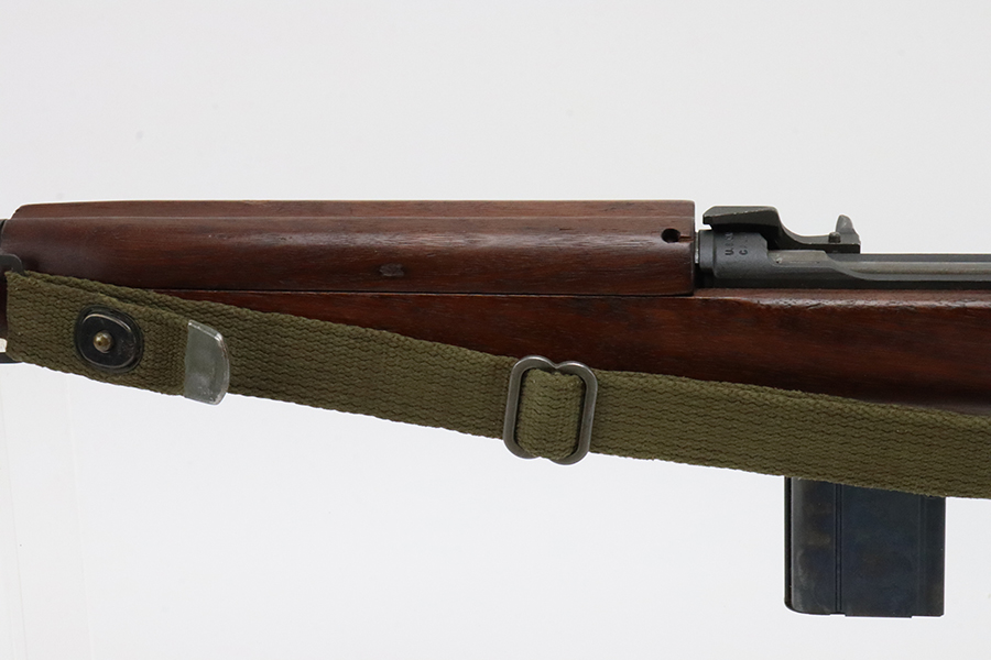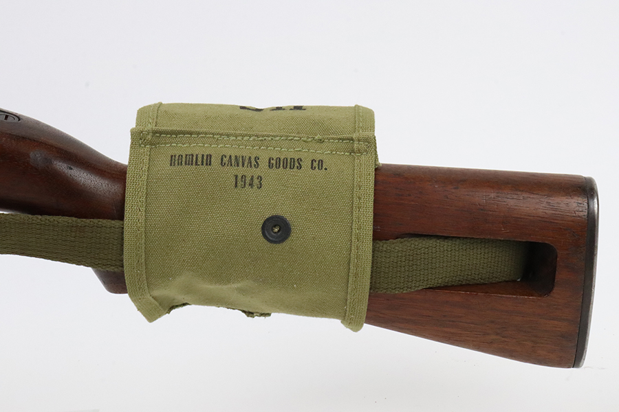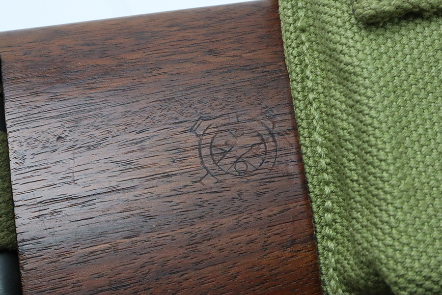 5/17/24 – This is an excellent example of an Inland M1 Carbine issued to the US military in 1943. A complete list of parts and markings is included in the photos. The parts are almost entirely correct, but we believe the rear sight was replaced. Cross canon cartouche on the right side of the butt stock. It has been refinished, so there is almost no finish loss on the metal parts. Excellent wood stock. Mint bore. Comes with three magazines, a sling, and a repro magazine pouch.