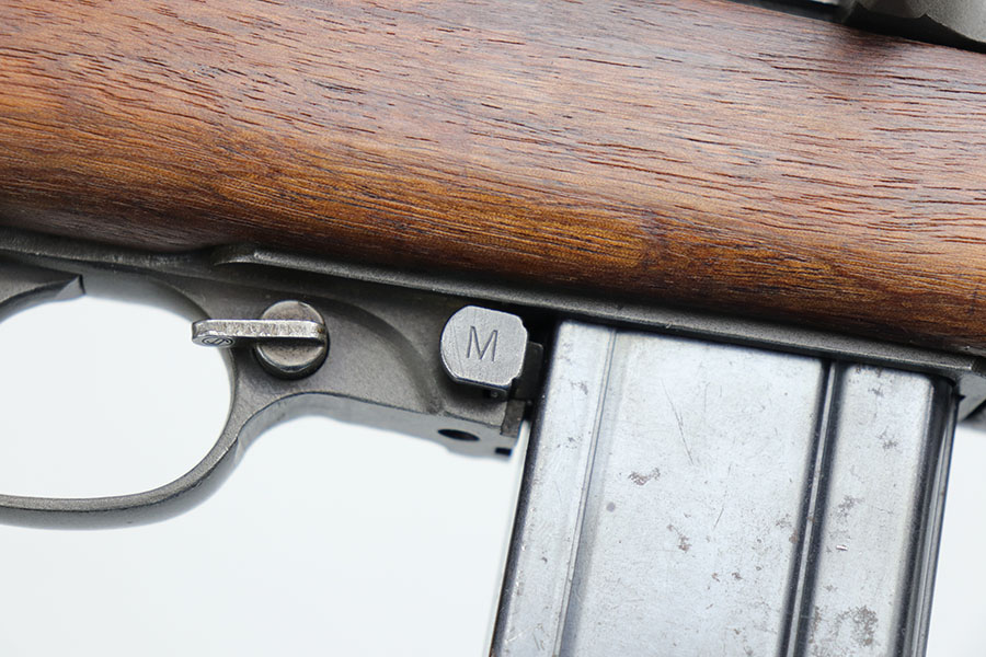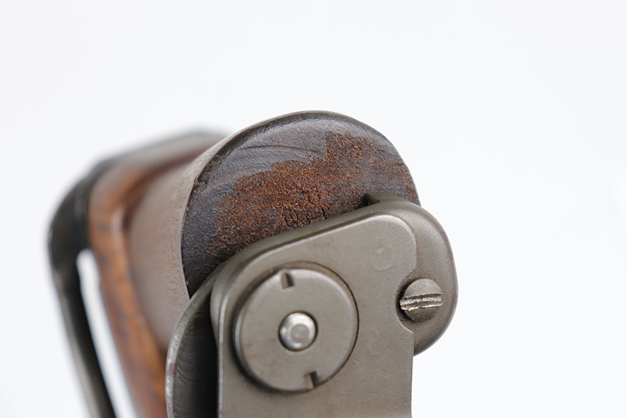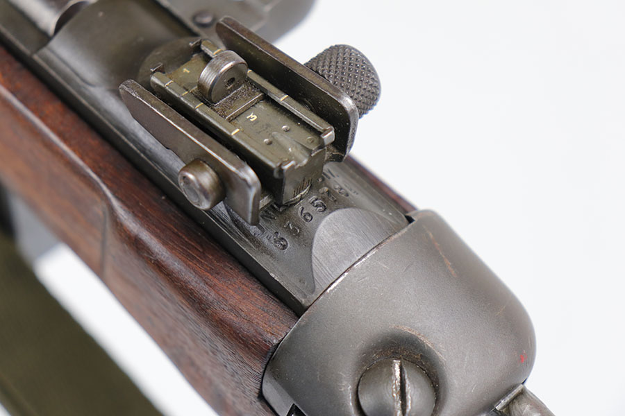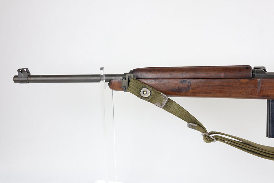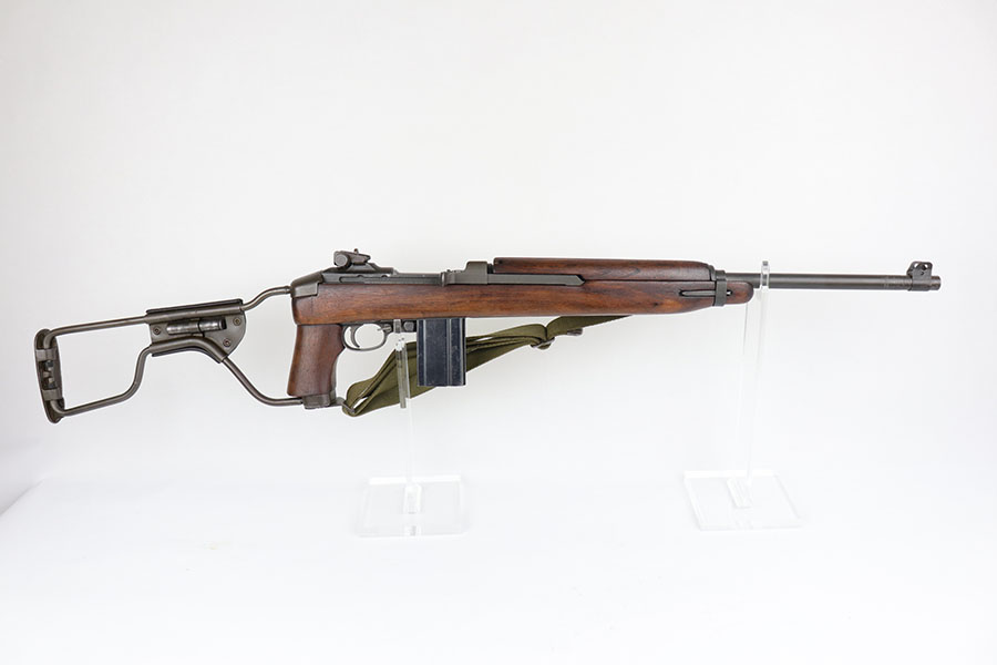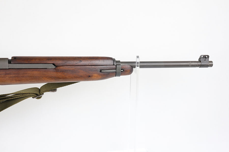 6/10/20 – This is a terrific example of a second run M1A1 paratrooper carbine as produced by Inland in late 1944. The rifle appears all correct for a second run example, with about 98% of the original blue remaining. There’s very little finish loss on the metal parts but there is some freckling on the barrel and muzzle. Barrel is dated to November of 1944. P proof on the front of the pistol grip is common for second run rifles. It’s also marked RI/3, which is also correct. Rear sight is the adjustable variant. Folding stock is original, including the buttplate and the cheekpad. Bore is mint and hardly looks used. The wood stock is in excellent condition aside from the very common indents where the folded stock presses against the left side.