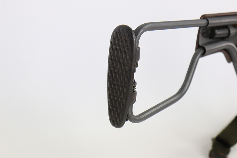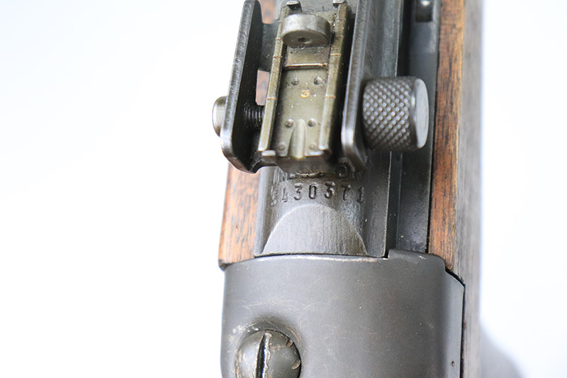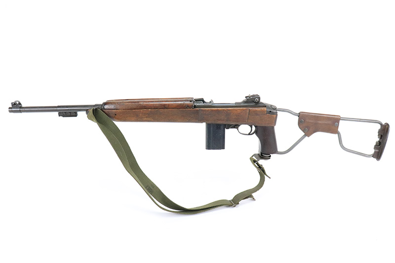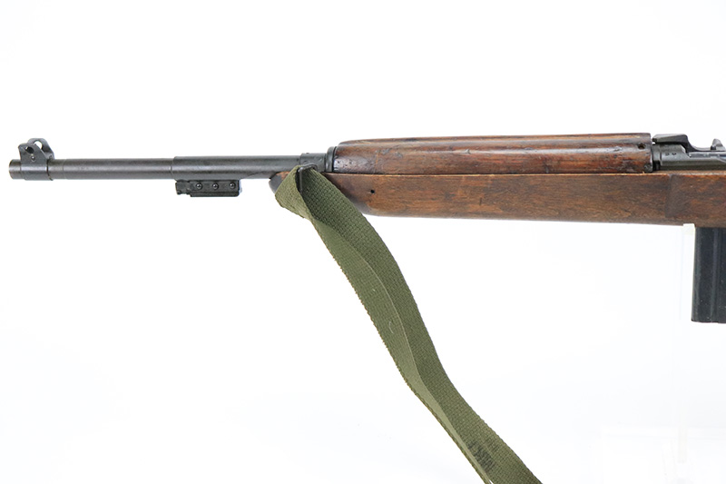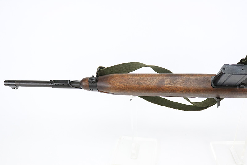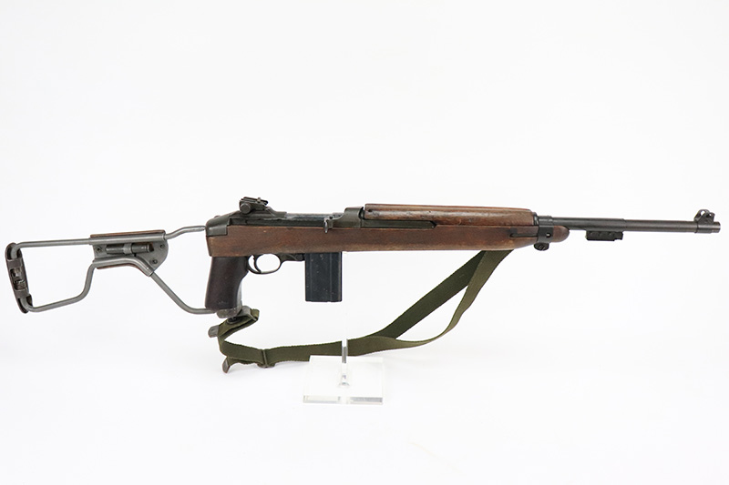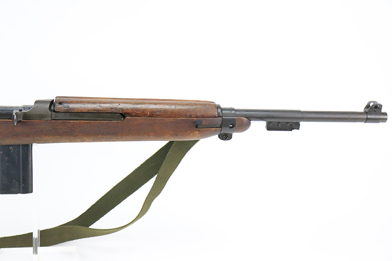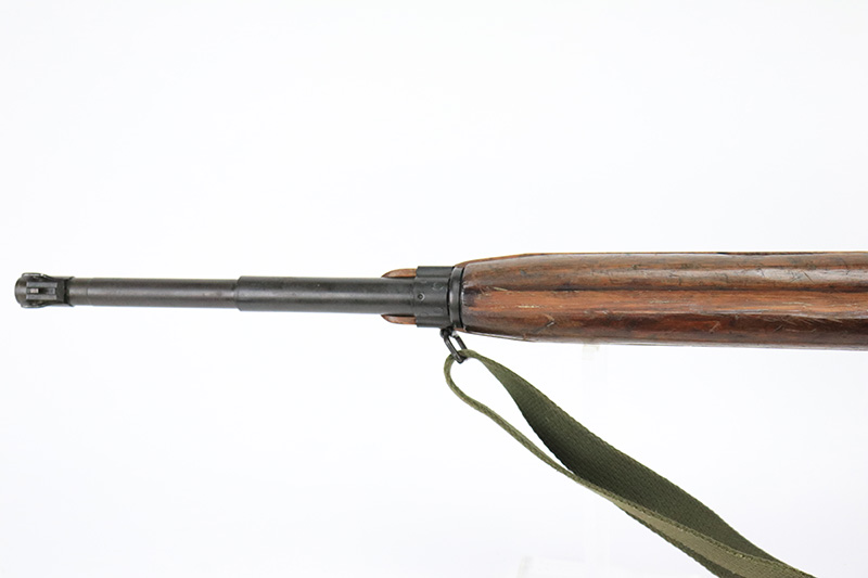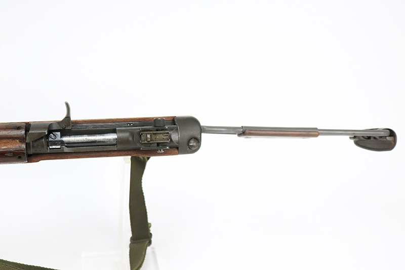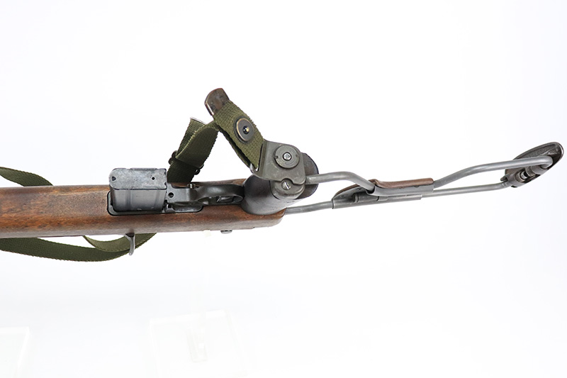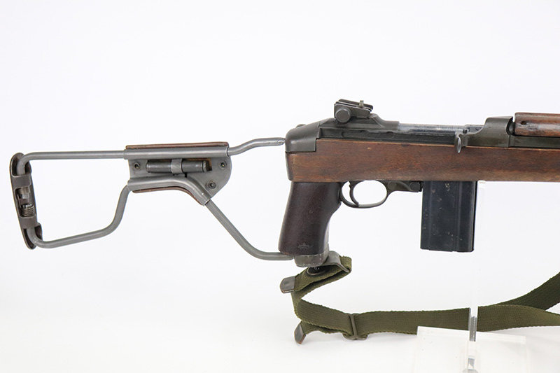 8/31/22 – This is an excellent example of an Inland Paratrooper Carbine. The receiver dates to 1944. The barrel is Inland-made and dates to March of 1944. There is an “AAO” arsenal marking on the left side of the stock, indicating this gun was reworked at the Augusta Arsenal at some point. It has an adjustable rear sight and bayonet lug, most likely added for use during the Korean War. Cross-Canon cartouche marking on the right side of the wood grip. Overall, the gun is in excellent condition with very little actual finish loss. The upper handguard has obvious bruising throughout. Comes with an excellent folding stock, one proper magazine, and a green canvas sling. Mint bore.