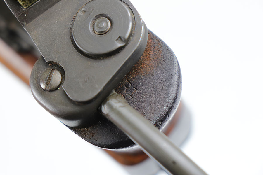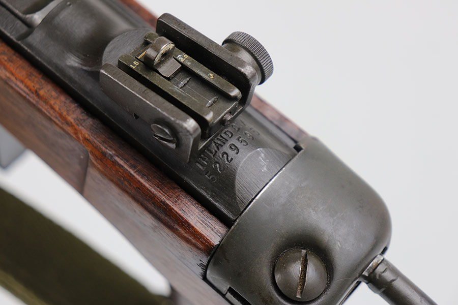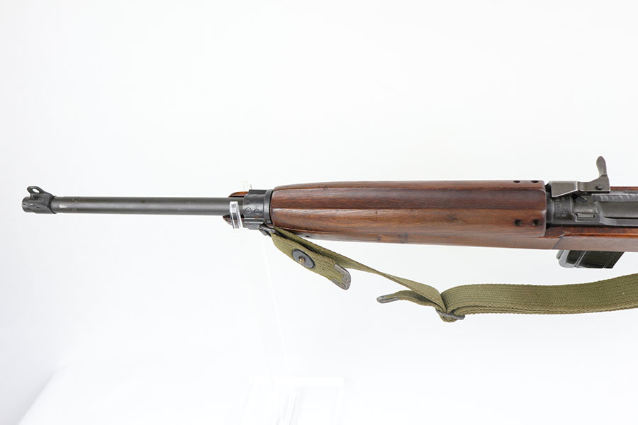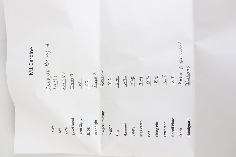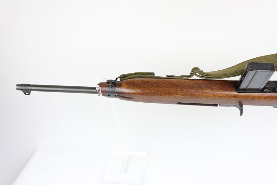 8/19/20 – This is an excellent example of a type 2 Inland M1A1 Paratrooper carbine from 1944. Terrific, original parkerized finish on the metal parts with just a bit of wear on the muzzle/barrel. A list of the internal parts is included in the photos for the listing. Barrel is Inland made and dated to May of 1944. Adjustable rear sight but no bayonet lug. Excellent stock aside from the common scratches where the stock folds into the wood and rubs against it. Crossed cannons cartouche on the right side of the grip. RI marked on the bottom. Mint bore. Comes with postwar carrying case.