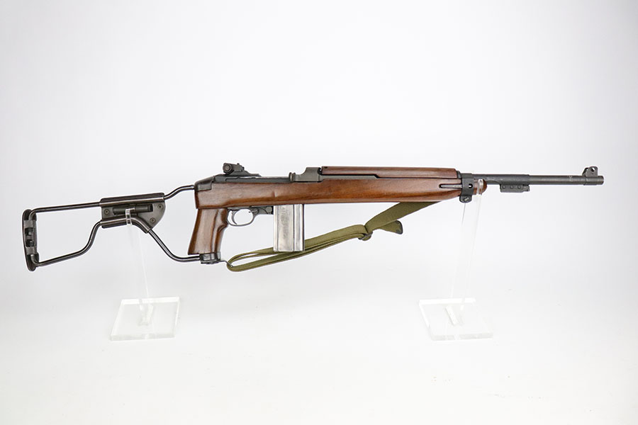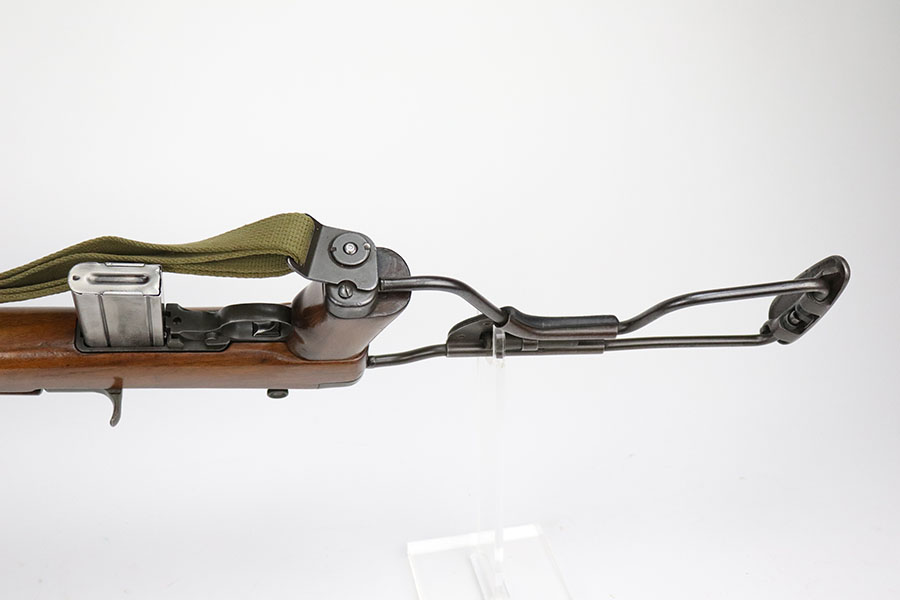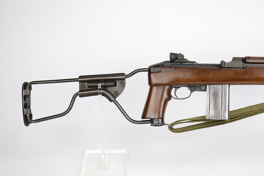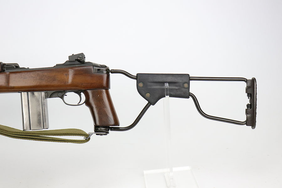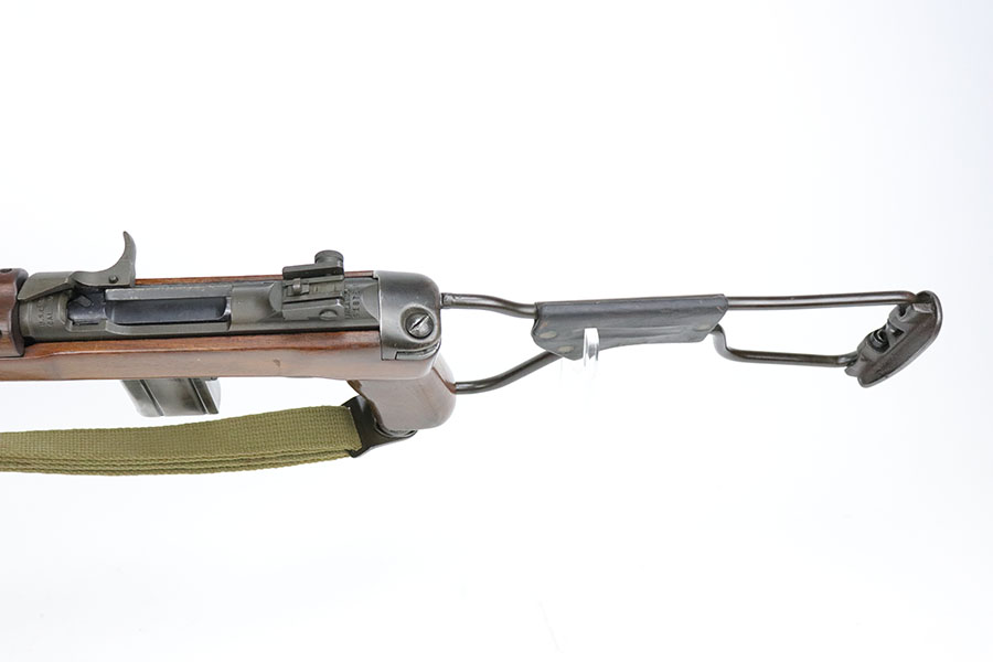 9/2/20 – This is a scarce Inland M1A1 Paratrooper Carbine from 1944 that was at least partially re-worked after the war, but mostly original and correct Inland parts. Original retractable stock and cheek pad. Inland barrel with date of May, 1944. Inland marked trigger group, hammer, slide and bolt. IO marking on pistol grip and handguard. Minty bore. Excellent stock but it was sanded at some point. Period original sling is included.