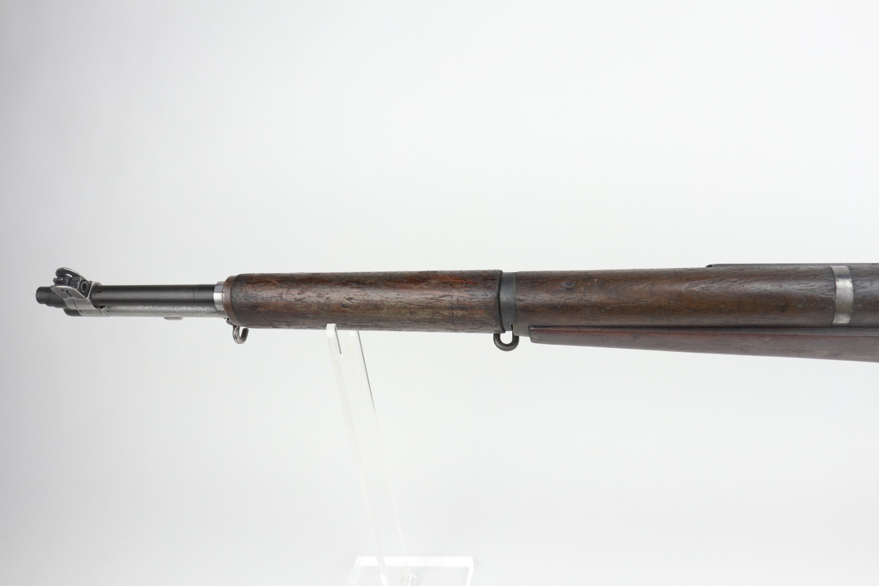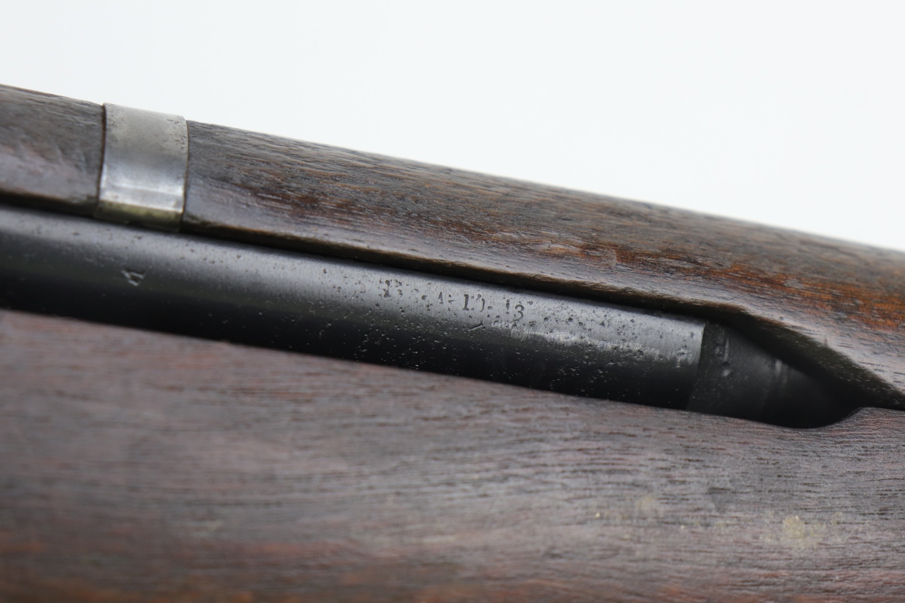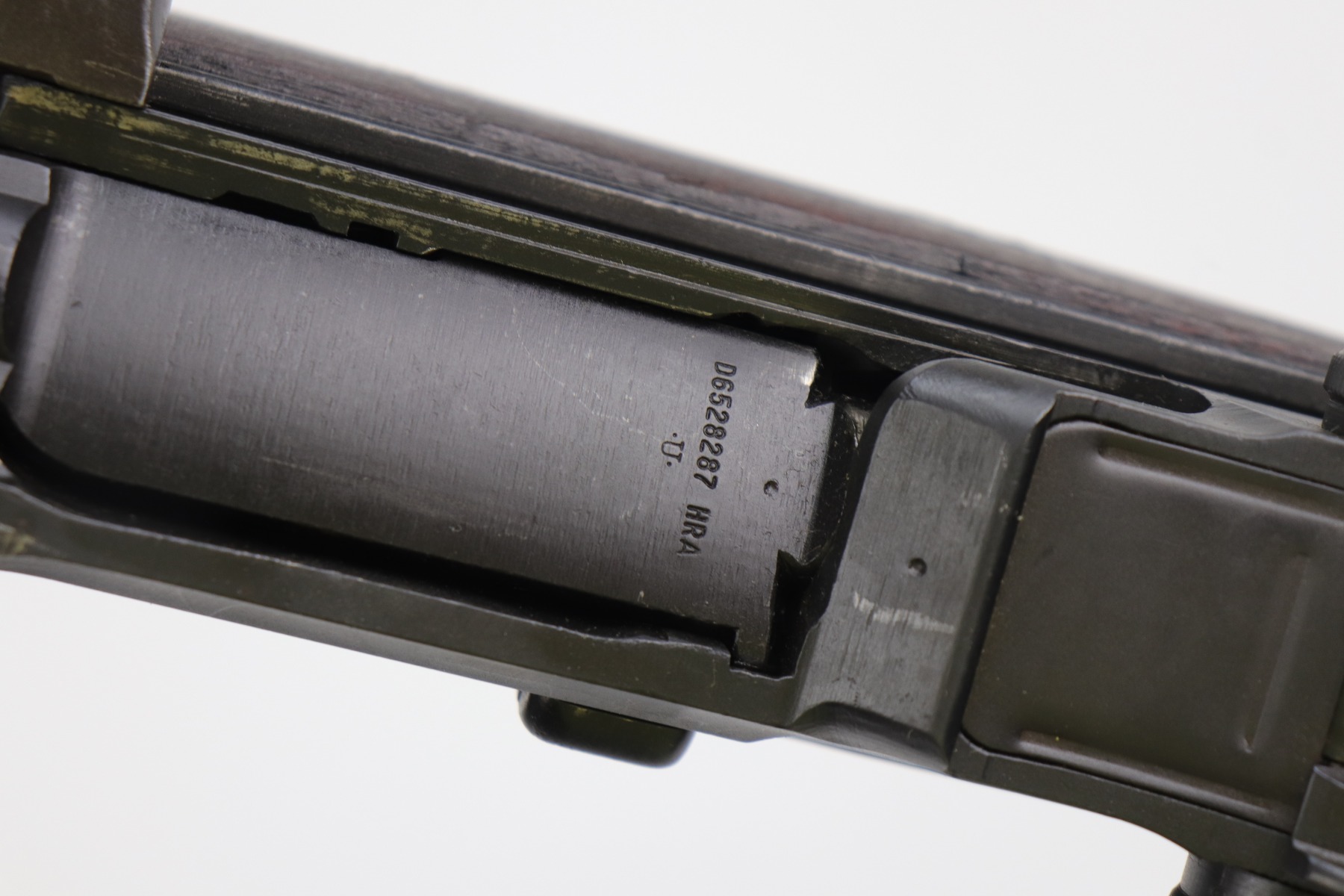 Most of the metal parts look refinished and the markings on the barrel are faint and hard to make out. The gun is fully functional and the bore is shiny and excellent. The gas cylinder has no finish and areas of pitting. There is a “P” marking on the grip. The handguards and stock do not appear to match. There are are dings and scratches on the handguards throughout. There are a few small chips in the main stock, but otherwise excellent.