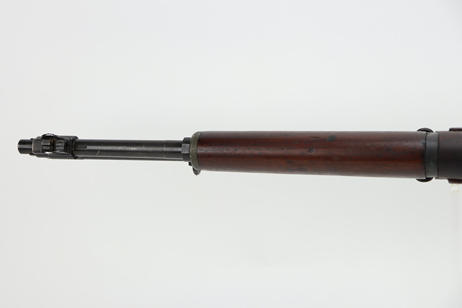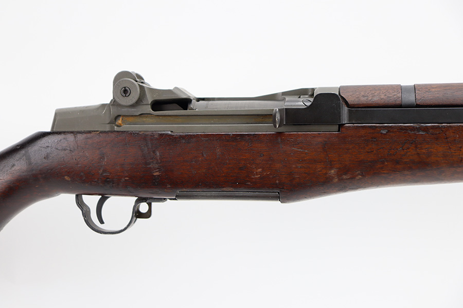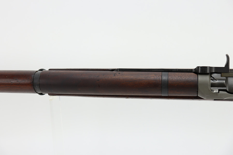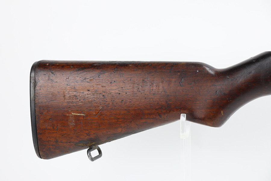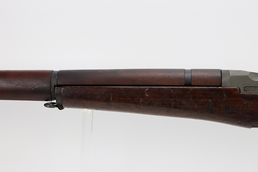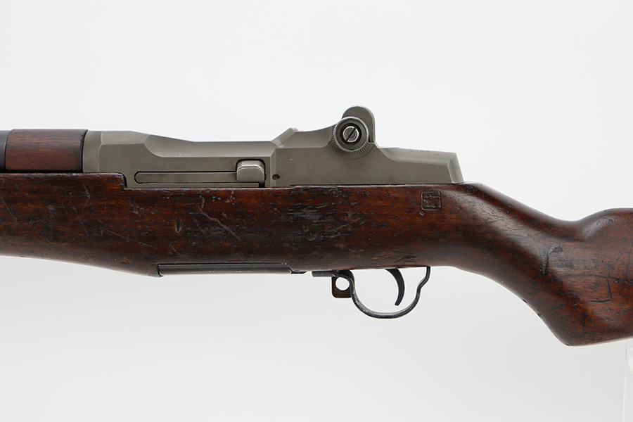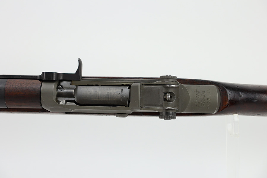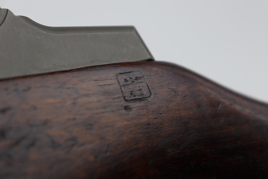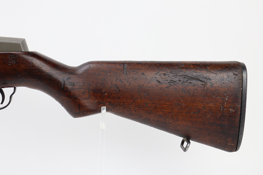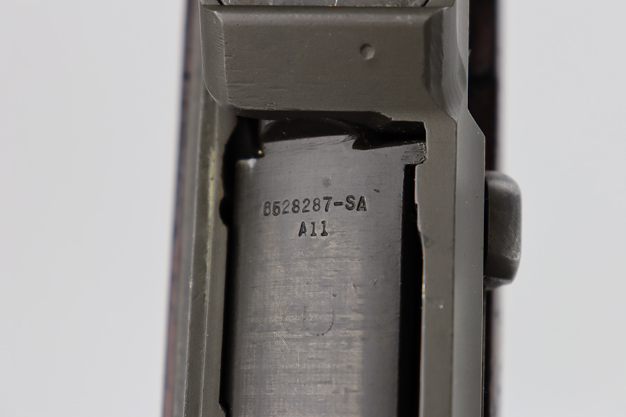 12/7/23 – This is an International Harvester M1 Garand from 1954. This particular gun was sent to an arsenal and was converted from .30-06 to 7.62 or .308. The breech bolt is SA marked. DOD stamps on the barrel and stock. The stock is also “P” proofed. The finish on the metal parts rates about 90% with minor wear around the muzzle and on the floor plate. The wood shows the typical signs of wear and use – minor dings and bruises throughout. There are, however, a few more noticeable gouges. The handguards are in different condition than the stock itself. Stone-mint bore.