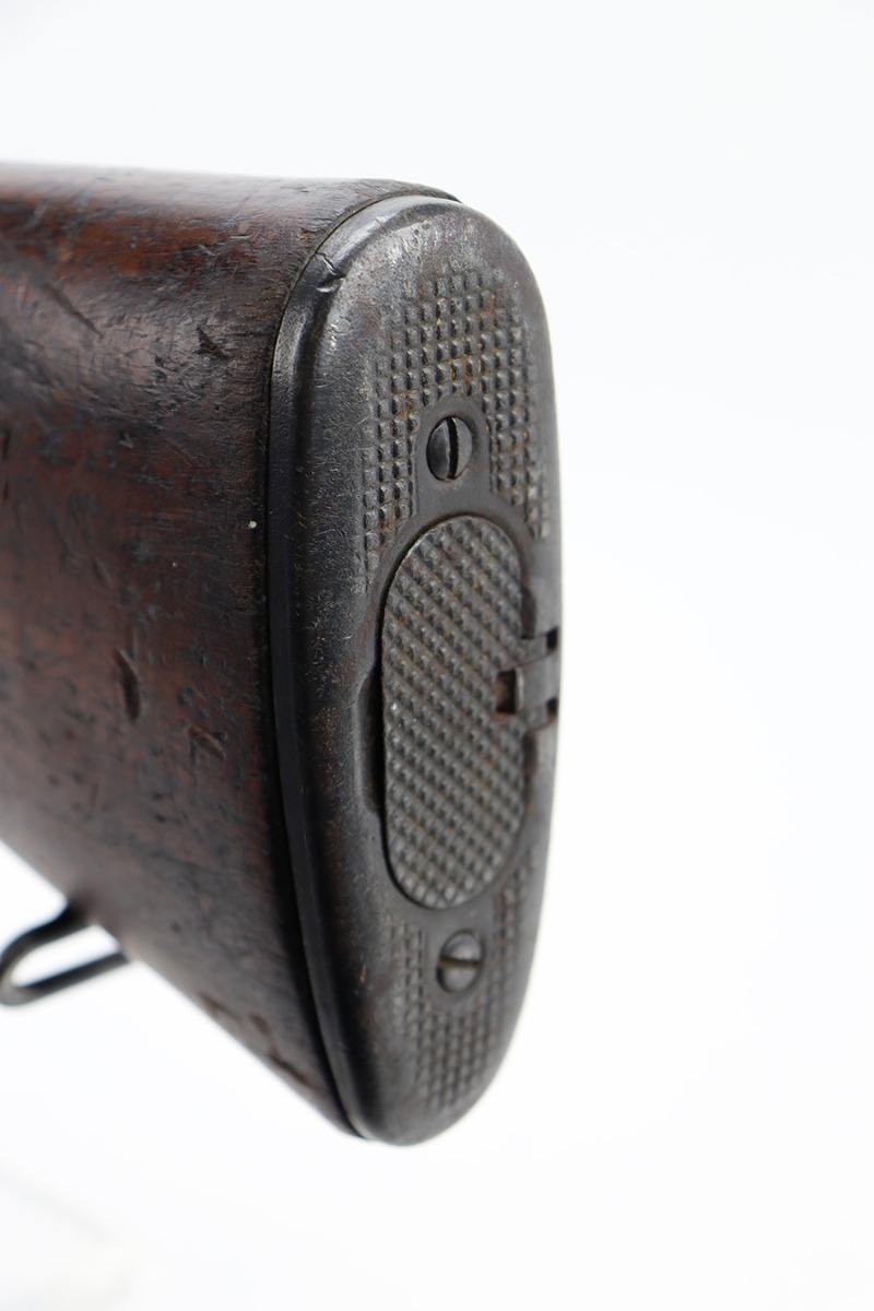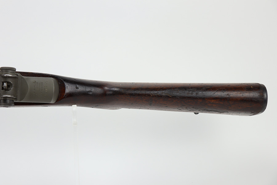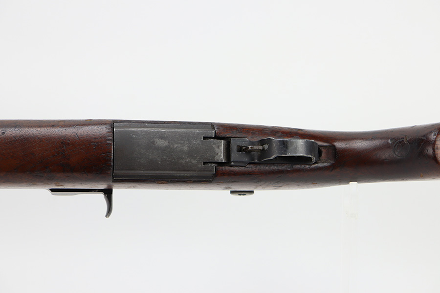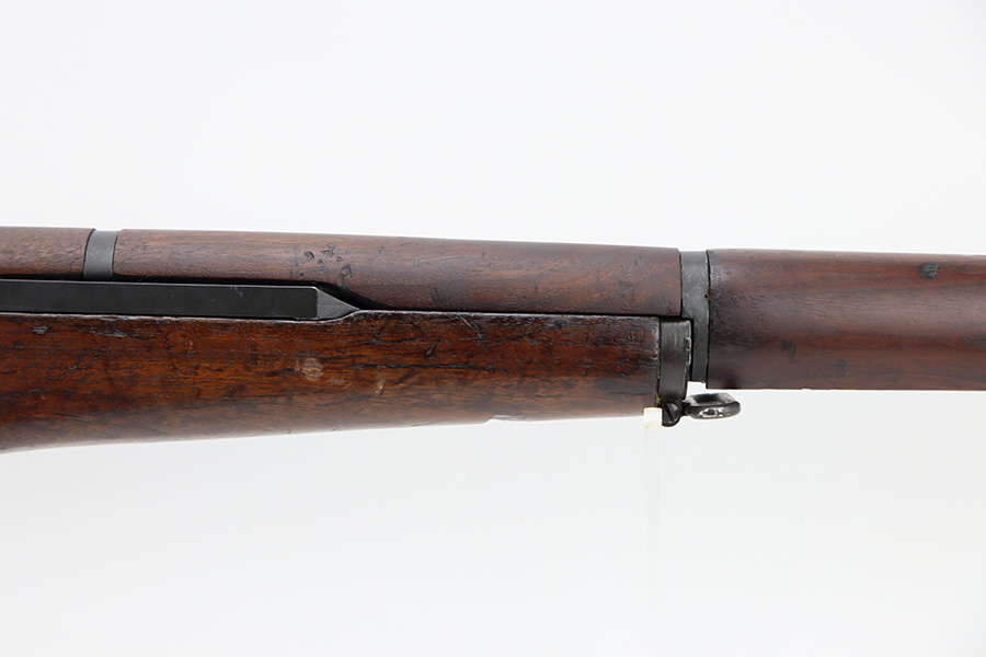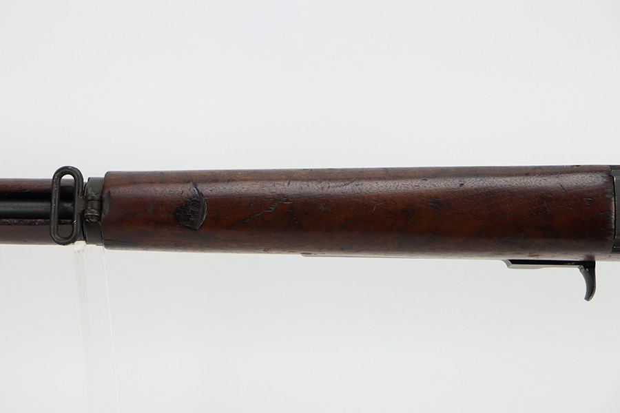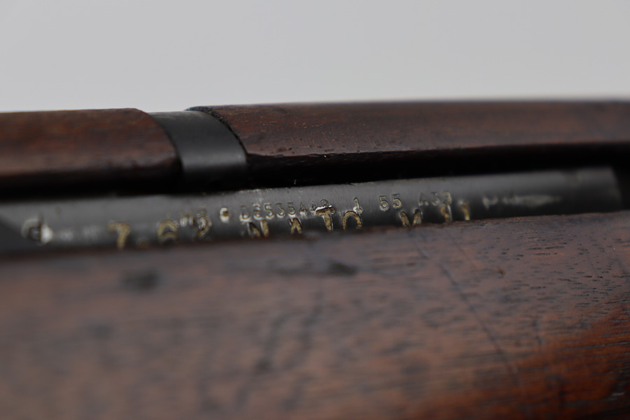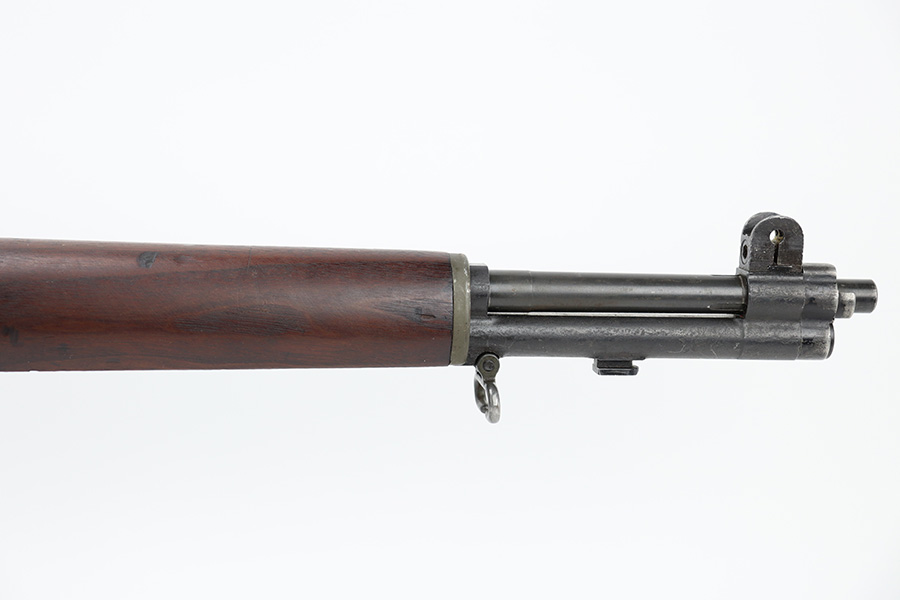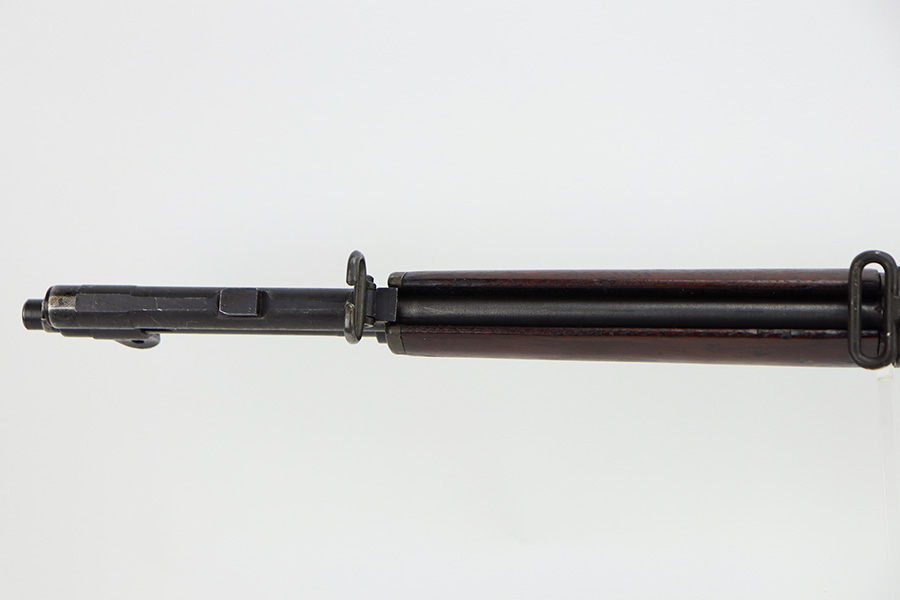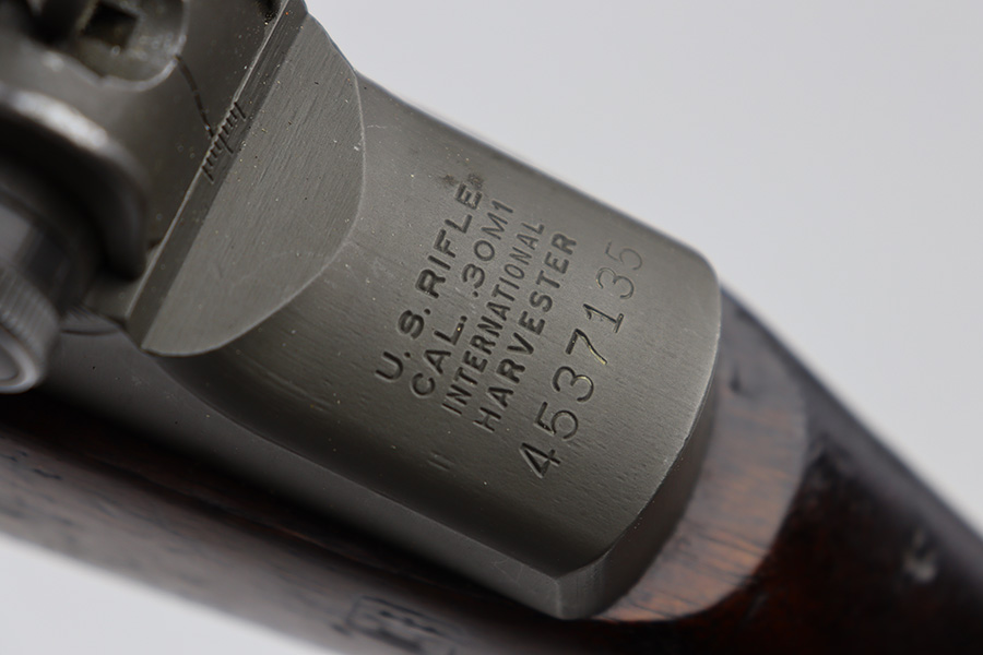 12/7/23 – This is an International Harvester M1 Garand from 1954. This particular gun was sent to an arsenal and was converted from .30-06 to 7.62 or .308. The breech bolt is SA marked. DOD stamps on the barrel and stock. The stock is also “P” proofed. The finish on the metal parts rates about 90% with minor wear around the muzzle and on the floor plate. The wood shows the typical signs of wear and use – minor dings and bruises throughout. There are, however, a few more noticeable gouges. The handguards are in different condition than the stock itself. Stone-mint bore.