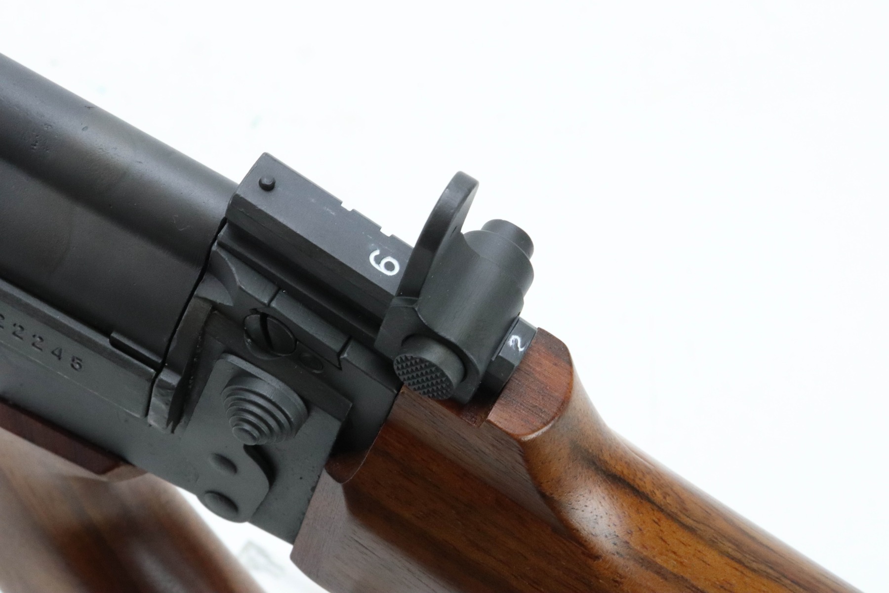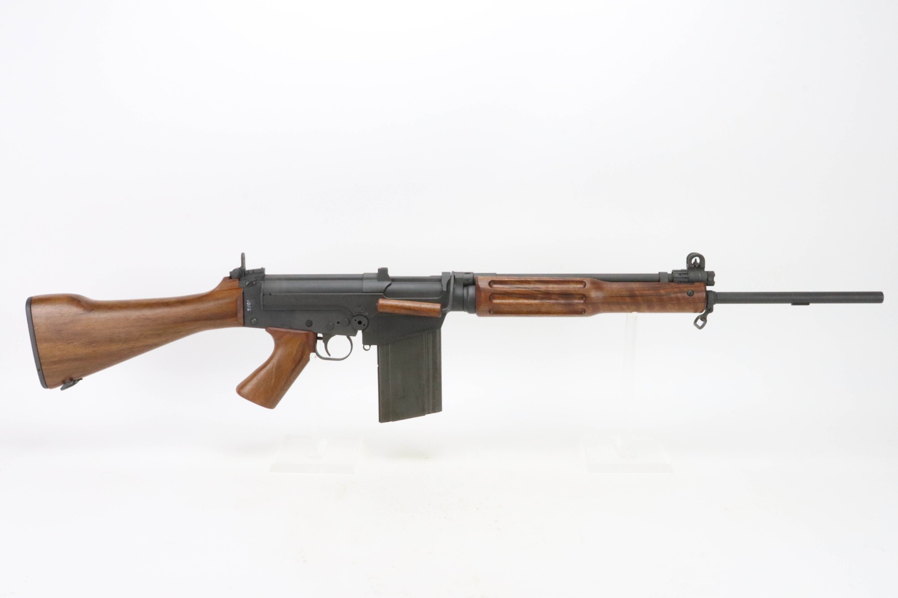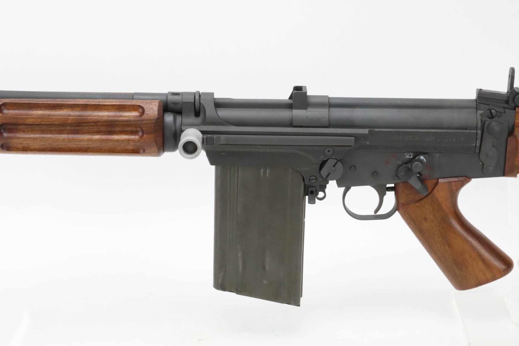 The metal retains an excellent parkerized finish with some minor handling marks. The wood furniture is excellent with no signs of wear. The bore is bright with great rifling. The rifle comes with one 20 round Israeli Magazine.