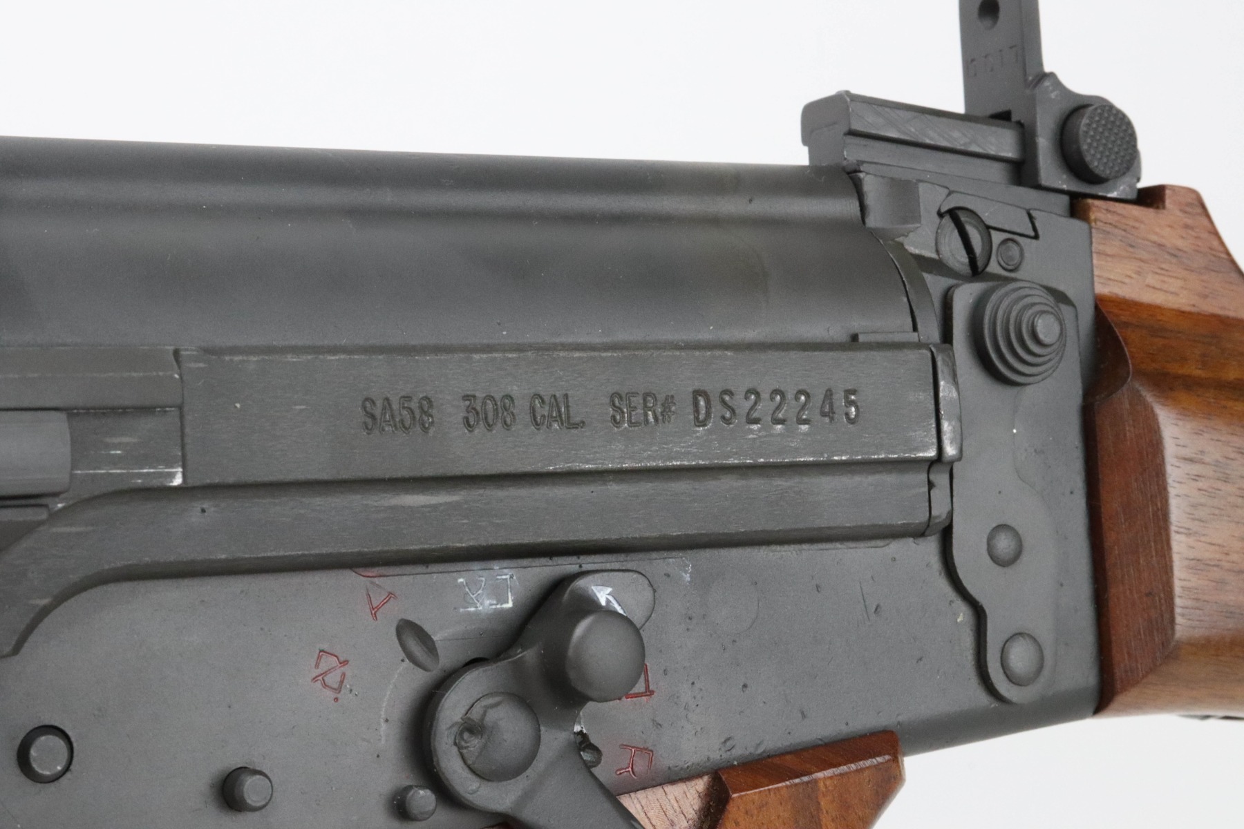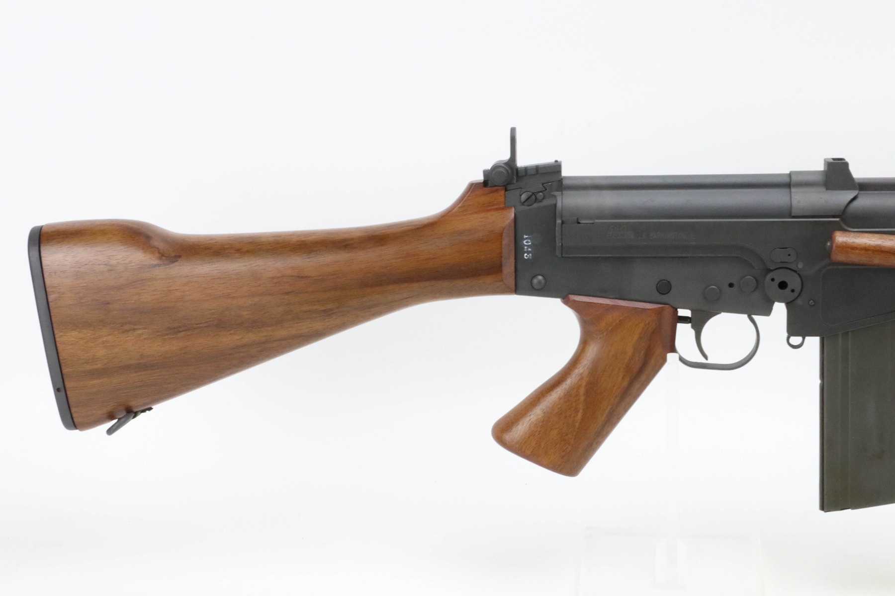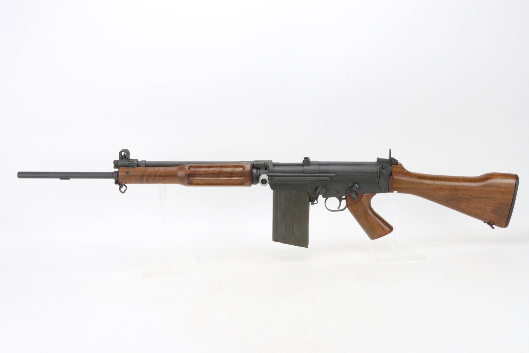 The metal retains an excellent parkerized finish with some minor handling marks. The wood furniture is excellent with no signs of wear. The bore is bright with great rifling. The rifle comes with one 20 round Israeli Magazine.
