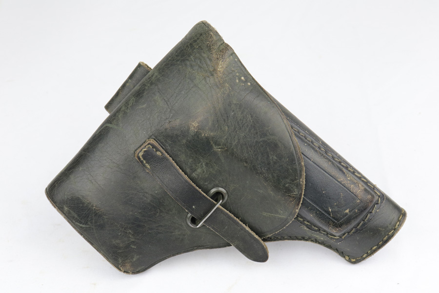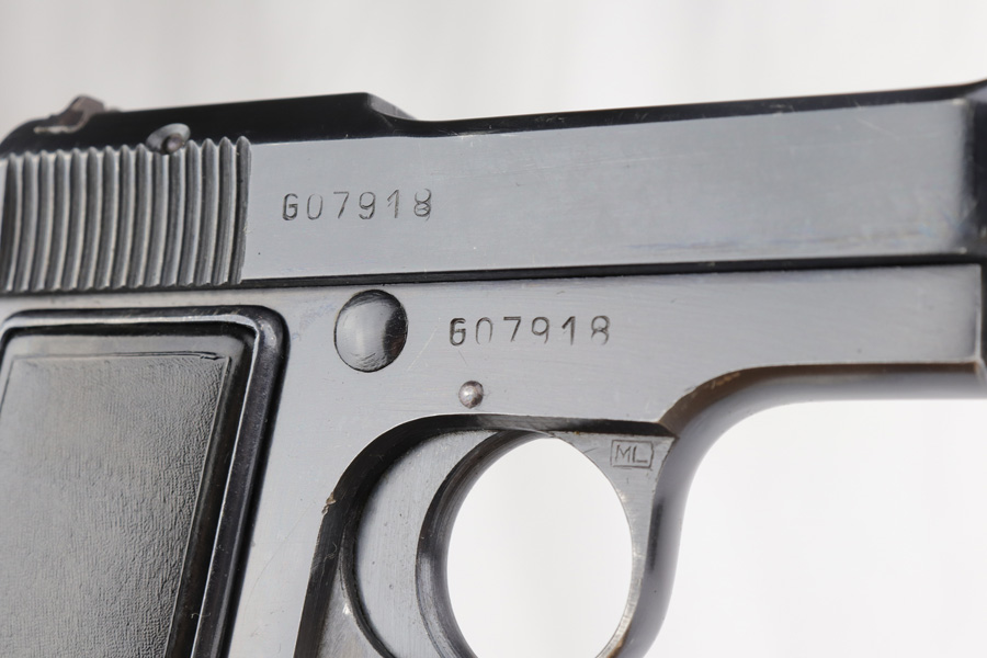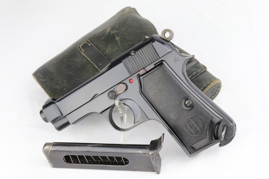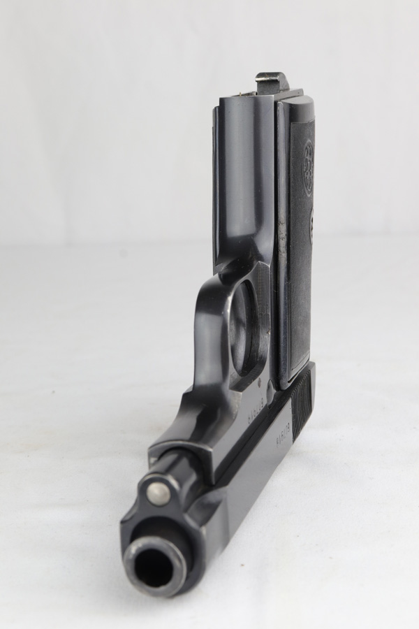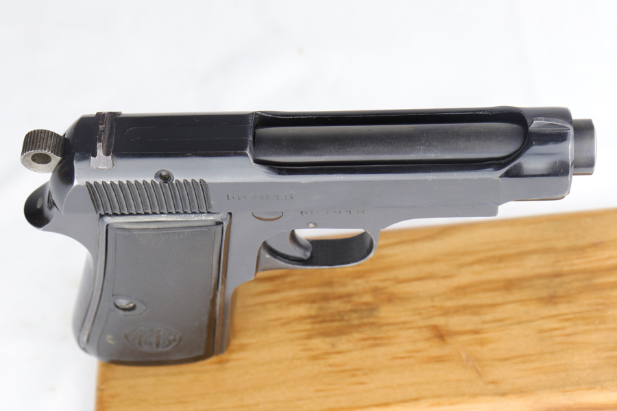 3/18/19 – This is an original late WW2 production Italian Beretta with an original green leather holster. The pistol is late war / end of WW2 production with no slide legend. The finish overall is beautiful condition – roughly 97-99% overall. There is some very light surface scratching / machine markings on the slide, as well as a hint of muzzle wear. The straps are excellent and very clean, with a minor amount of wear on the back strap. Minty bore is shiny with excellent rifling. The holster is very nice as well. All original guaranteed.