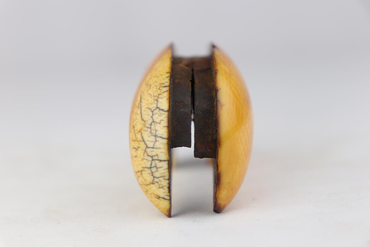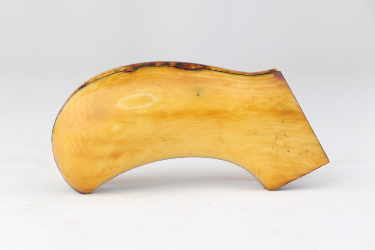 4/4/19 – This is a very nice set of original, ivory grips for a Colt M1877 revolver. This is a two-piece example with obvious age but no major flaws or wear. No major chips or cracks of note. Minor small dings or scuffs that have no texture. The back of the right panel has 2 small indents.