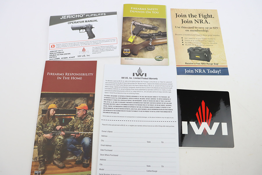 9/29/23 – This is an unfired, ANIB example of an IWI Jericho 941 chambered in 9mm Luger. It comes with its original matching-numbered hard case, two IWI magazines, gun lock, and owners manual. Unfired condition.