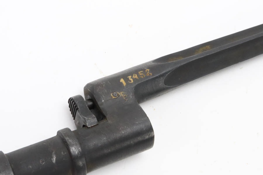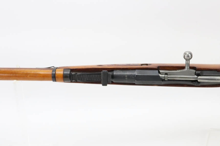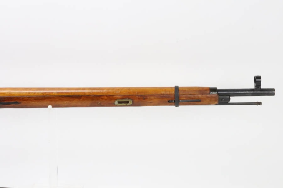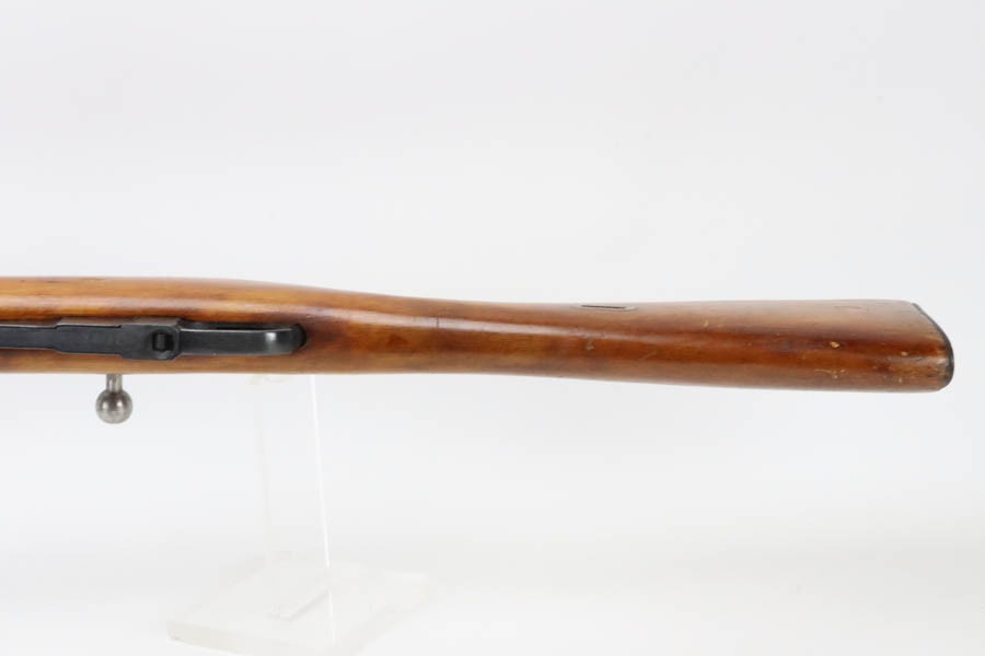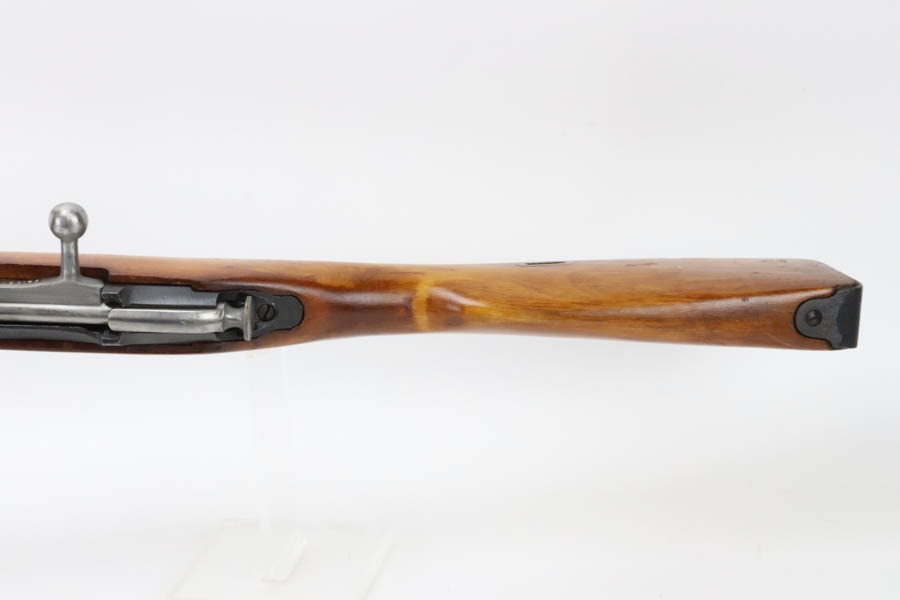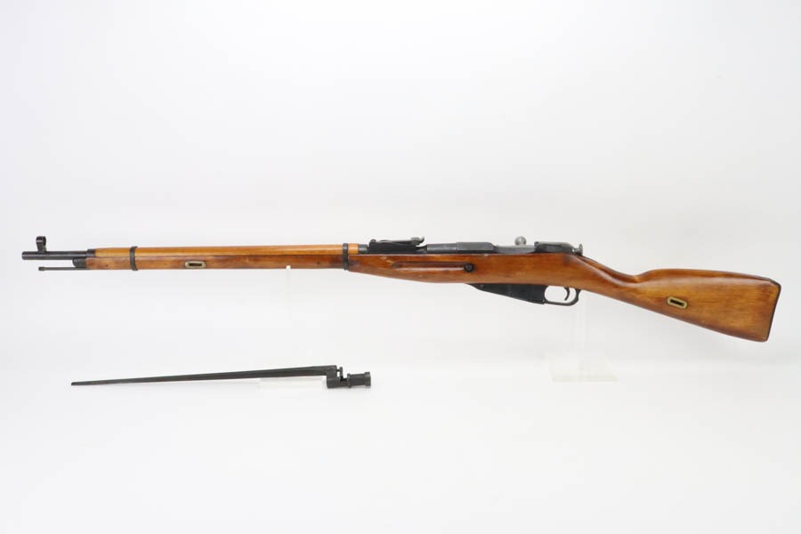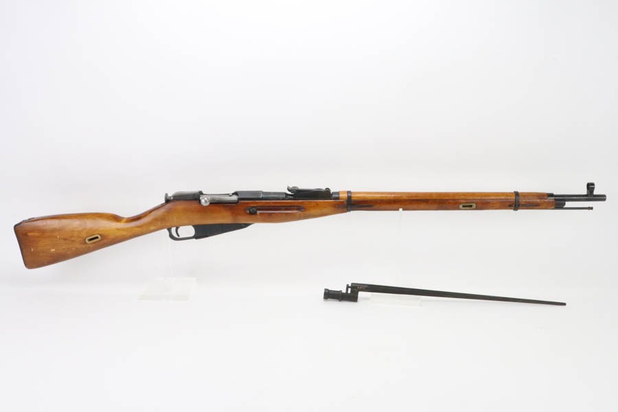 11/21/24 – This is a Mosin Nagant Model 91/30 made at the Izhevsk Arsenal in 1941. The rifle is in great condition overall after undergoing post-WW2 refurbishment. It is all matching, but some of the parts look like they’ve been re-numbered to match. Added serial number and import mark on the left side of the receiver. Very little finish loss. Just some minor muzzle wear. Excellent wood furniture with only a few minor scratches and marks. The bore has good rifling with just light pin-pricking. Comes with a period-correct bayonet that is numbered but doesn’t match. The bayonet is a very tight fit on the muzzle.