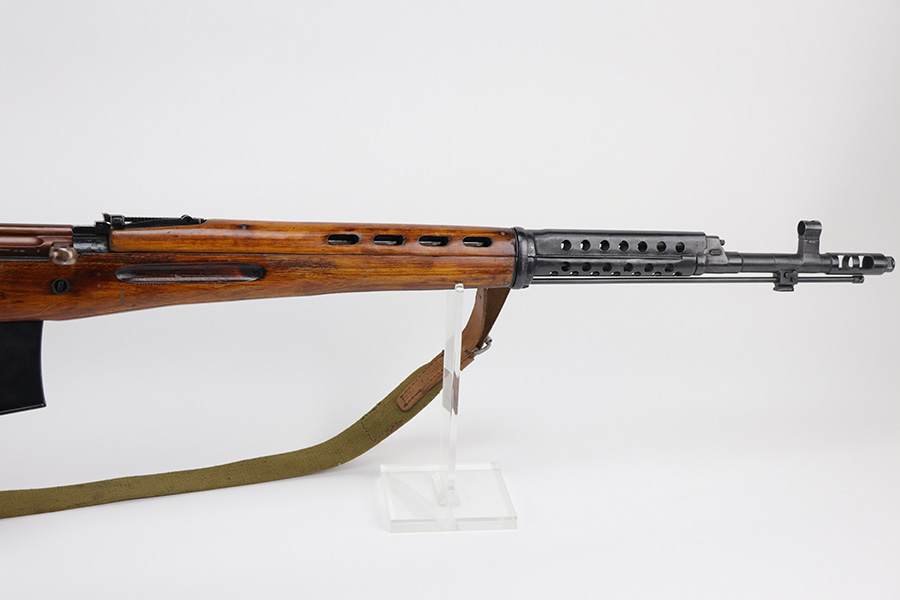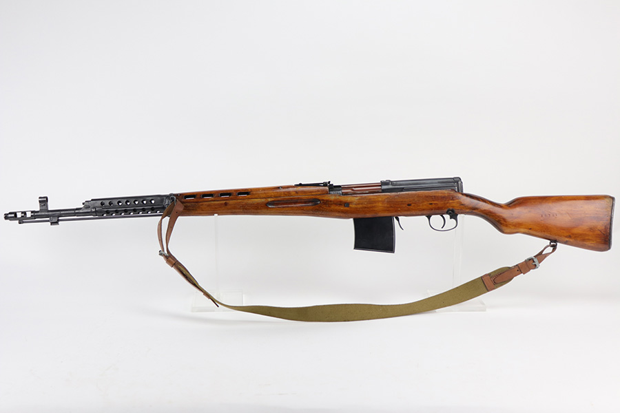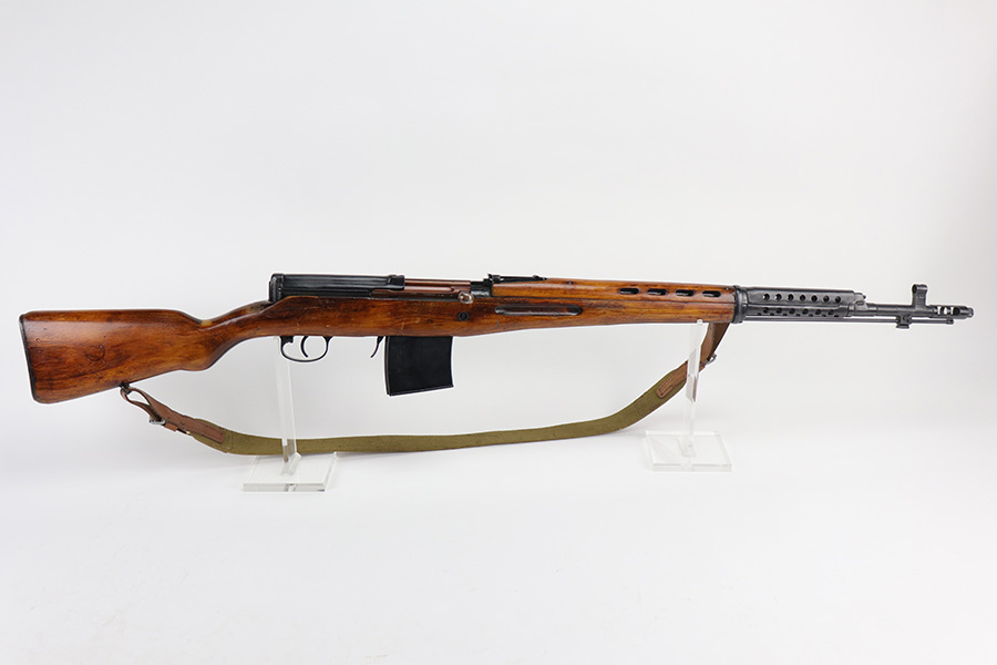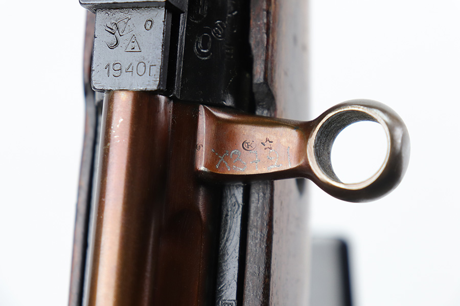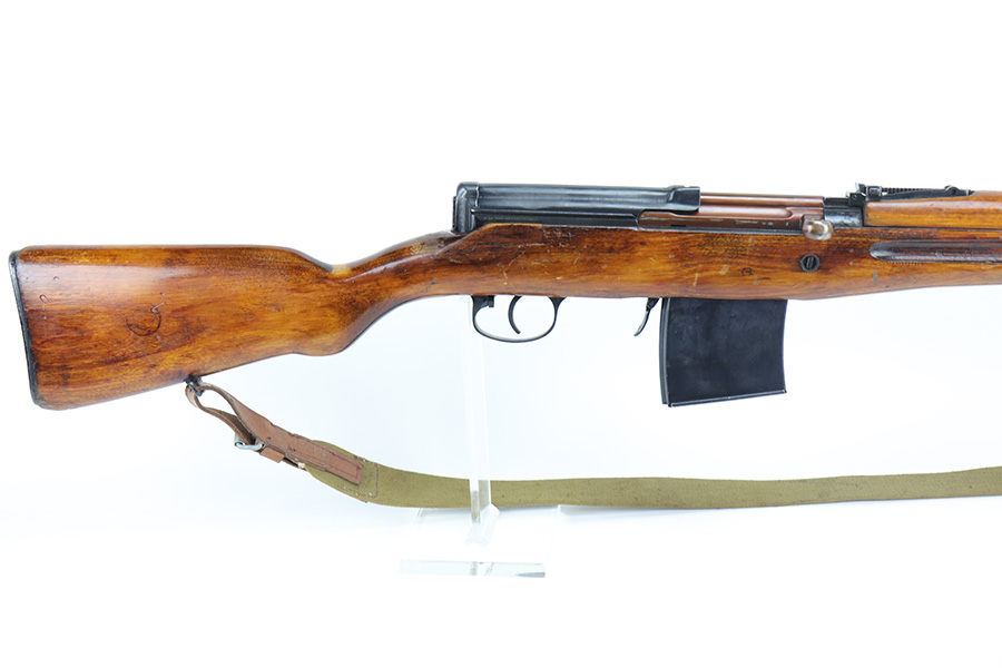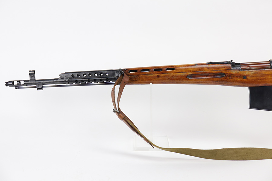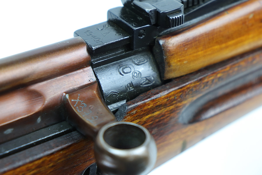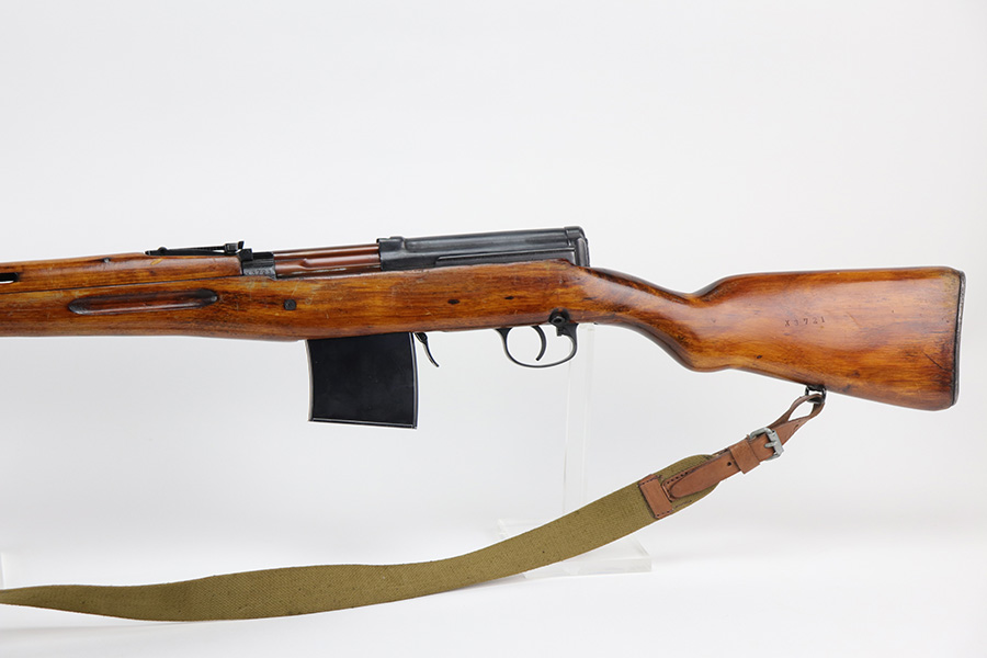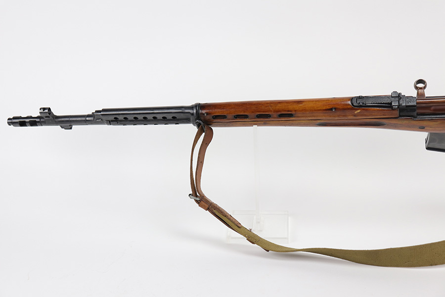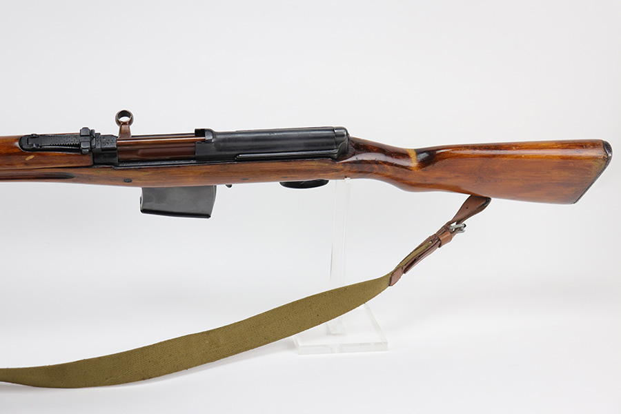 9/23/21 – This is a very nice example of a Russian SVT-40 that was made in 1940 at the Izhevsk factory. It’s a postwar refurbished example with etched serial numbers on some parts, leaving all parts matching. Finish presumably was restored when the rifle was refurbished but the finish present is in excellent condition. Small import mark on right side of receiver. Stock is in excellent condition with no major defects. Rifle includes sling and cleaning rod. Bore is somewhat shiny with strong rifling, but does have some frost in the grooves.