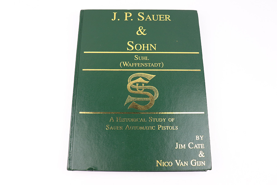 1/6/23 – This is an original hardcover copy of J.P. Sauer & Sohn by Jim Cate and Nico Van Gjin. The book is in great overall condition, despite having a dent on the front cover, along the bottom edge as shown in photos. The pages are all excellent and clean. The interior cover page is dedicated to “Barb” and is signed by Jim Cate. An excellent collector resource for Sauer collectors! 406 pages total with black and white images.