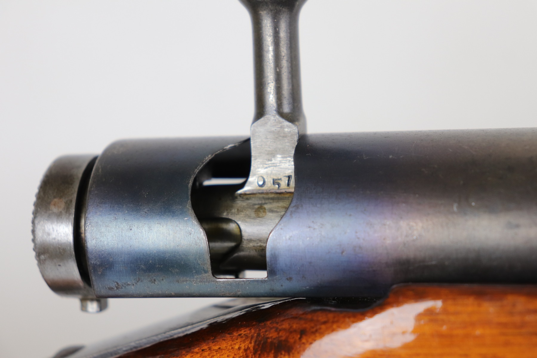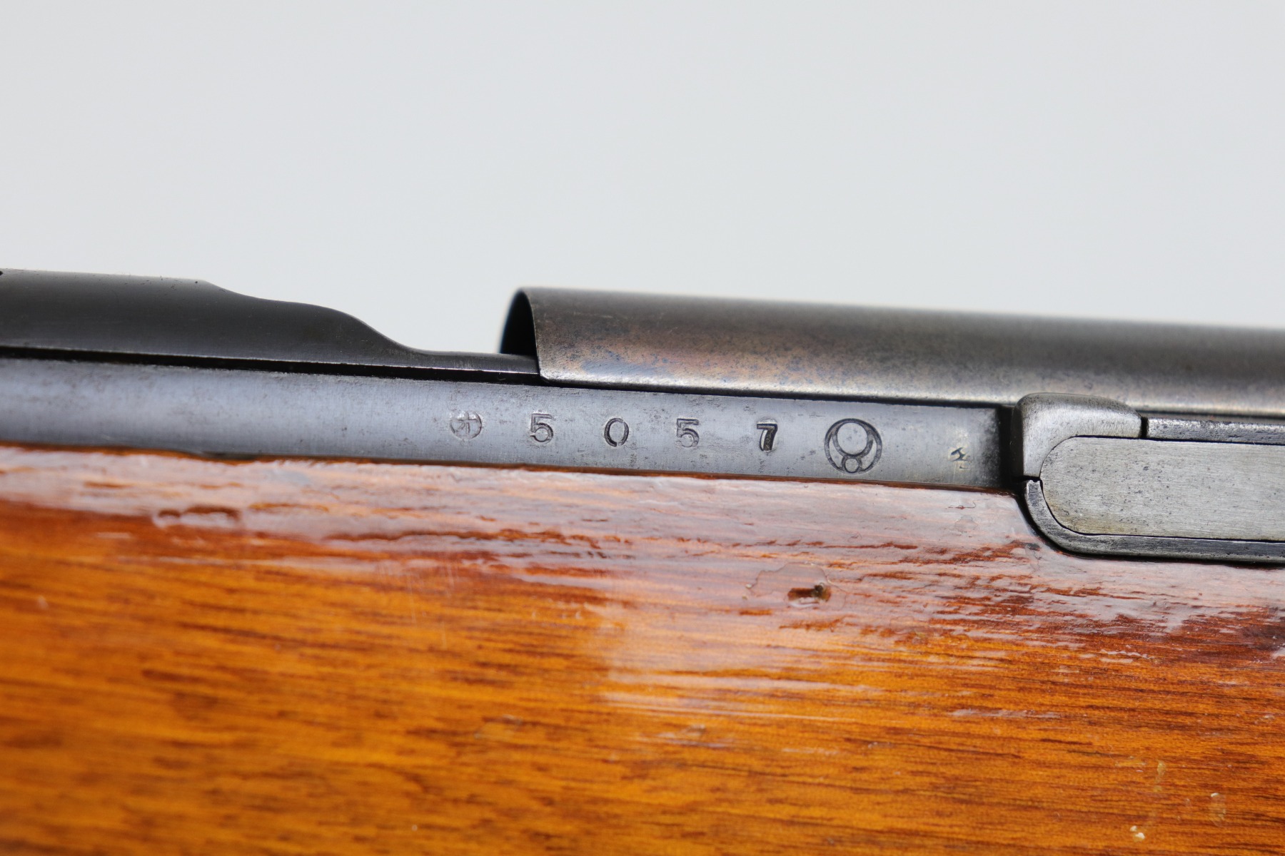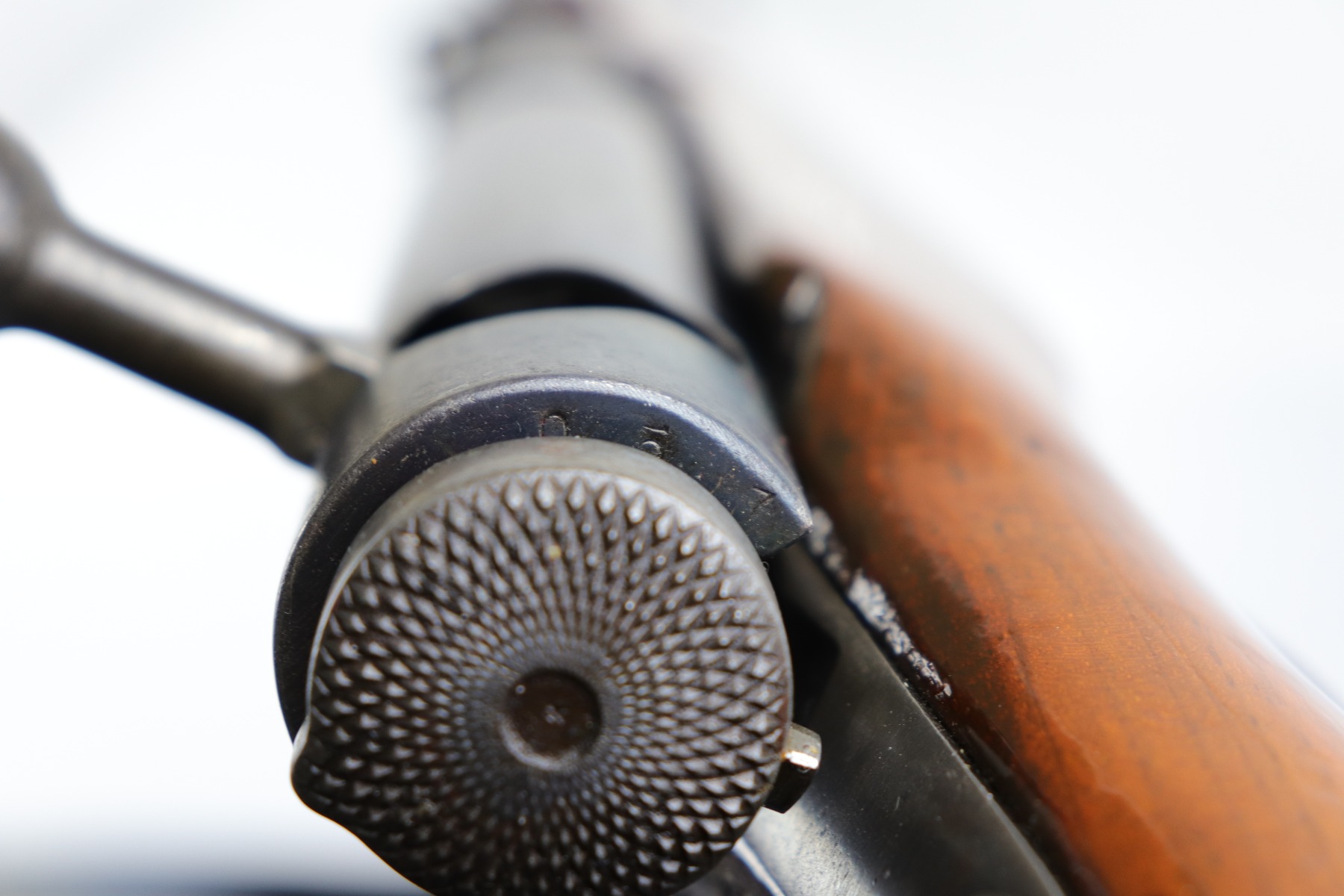 7/14/20 – This is a WW2-era Japanese Arisaka Type 38 bolt action rifle, chambered in 6.5x50mm. This particular gun was made in the Nagoya Arsenal. The mum is fully in tact. It comes with the original dust cover. The gun is completely matching, including the dust cover. Overall, the gun is in excellent condition. Most of the bluing is in tact. Fire blue is still visible on the follower. There is pin-pricking on the dust cover and rainbow-colored discoloration on the floor plate. The stock looks original but it has been sanded and varnished. The bore has some rifling but heavy frosting in the grooves. The gun is fully functional. It comes with a reproduction sling. C&R eligible.