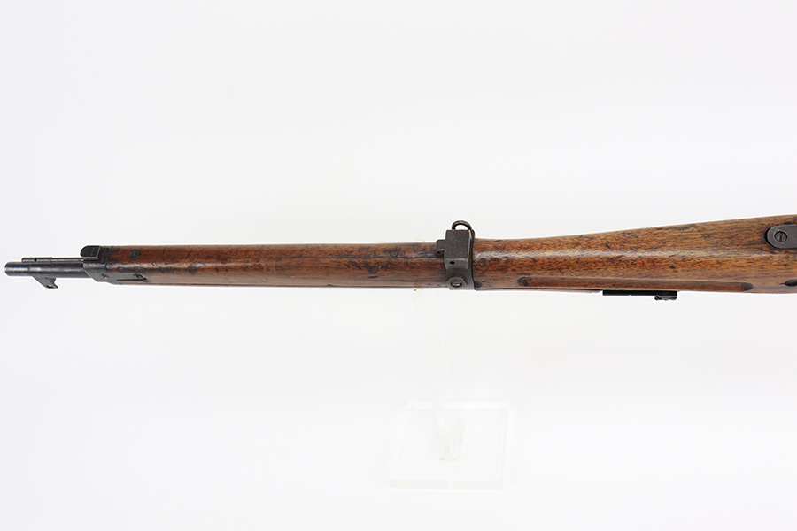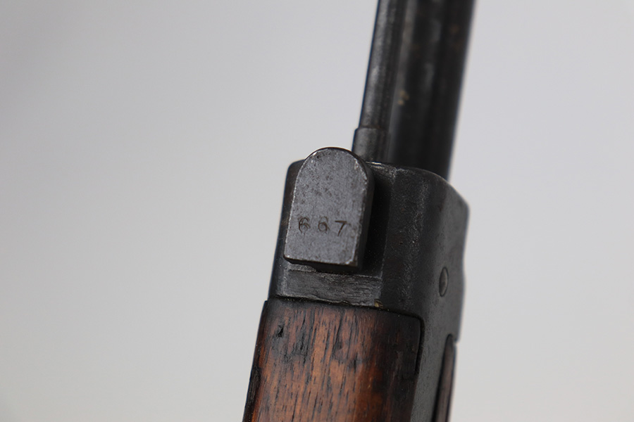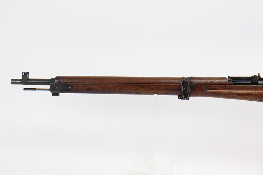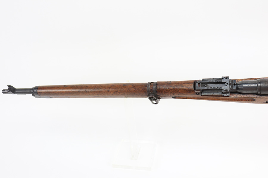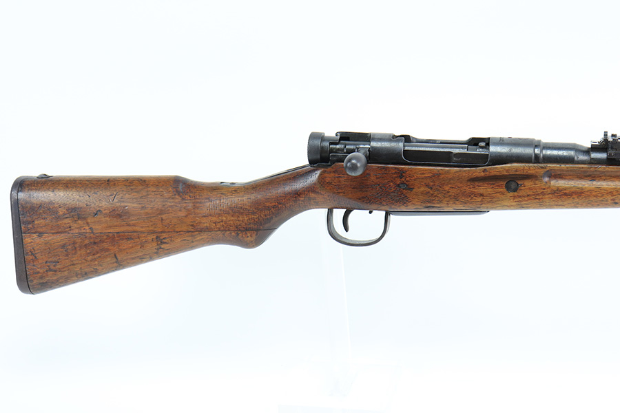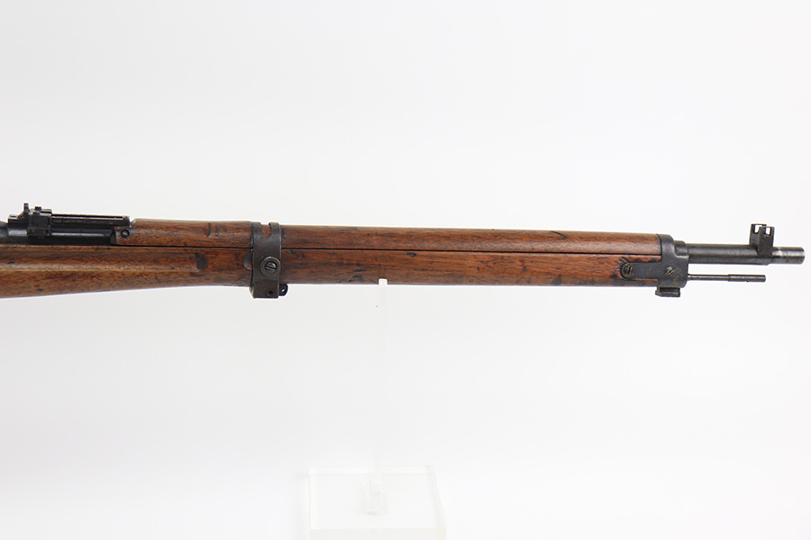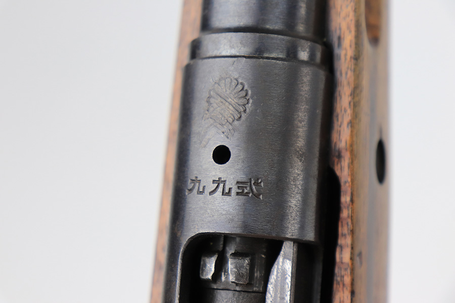 4/7/22 – This is a very nice example of an Arisaka Type 99 rifle issued to the Japanese military during WW2. The gun is entirely matching and has partially defaced Imperial mum stamp on the receiver that is still mostly visible. The gun has retained most of its original bluing. There is some minor wear around the muzzle. While there is very little actual finish loss, there is some light freckling on the receiver and spotty oxidation on the barrel. Heavy brown patina on the butt plate. A few very light scratches on the floor plate. Very nice stock with only minor bruises and scratches. The bore is near-mint. Comes with an original cleaning rod.