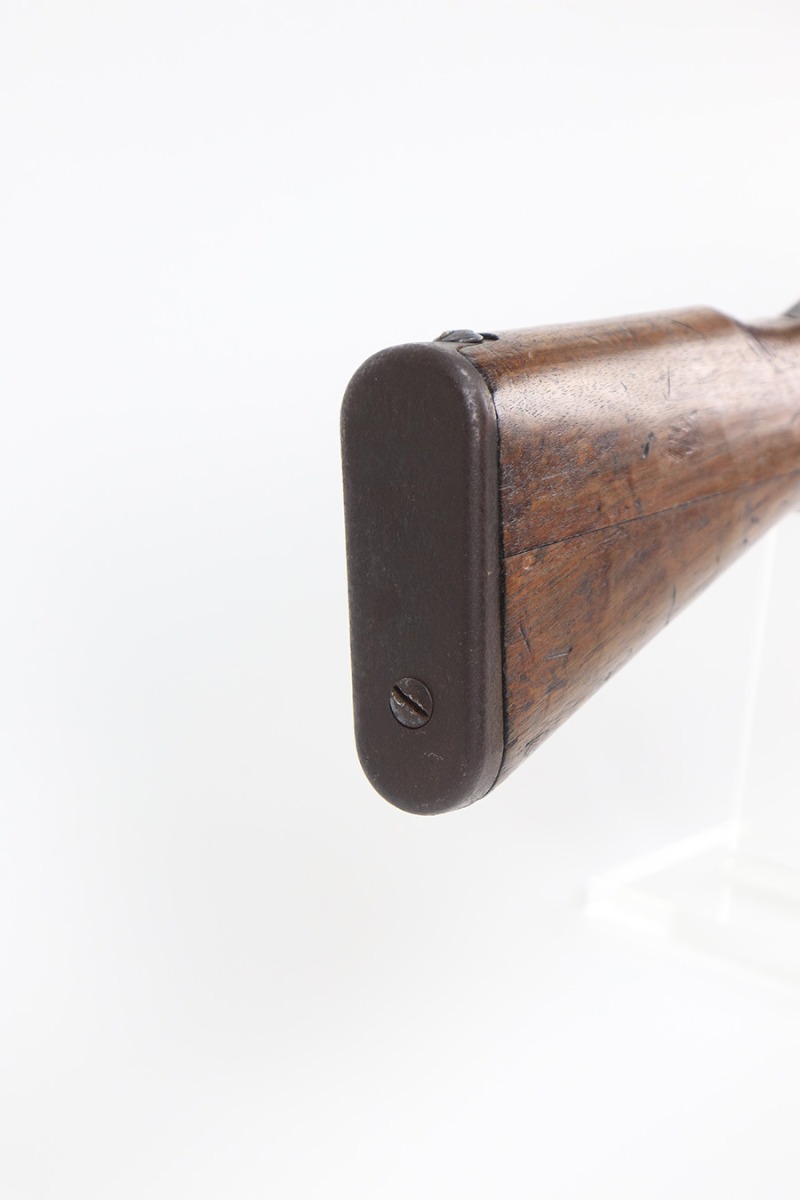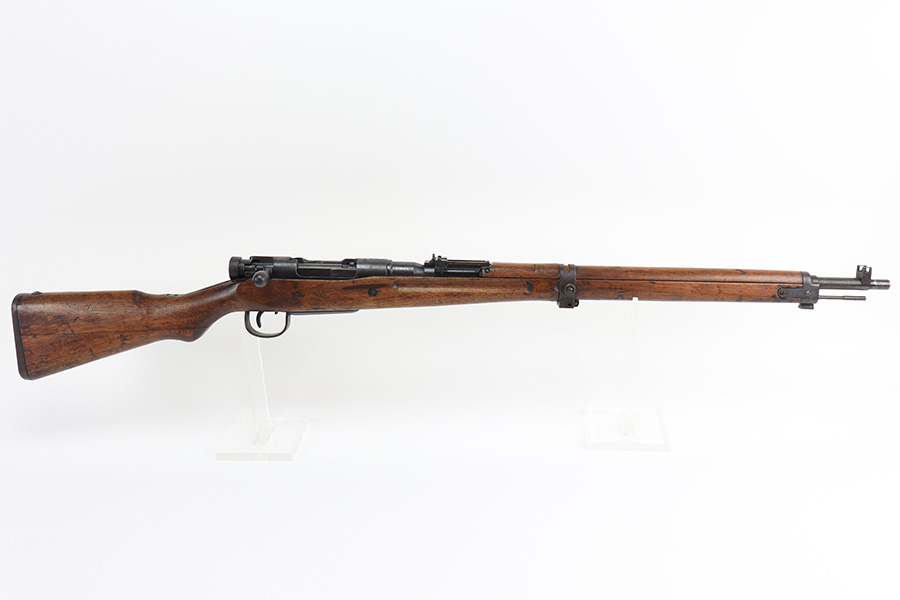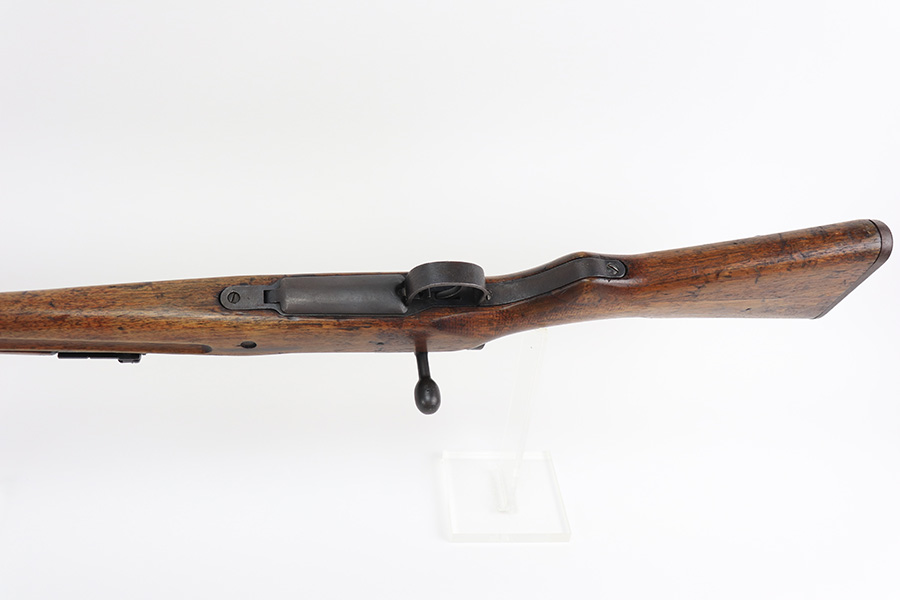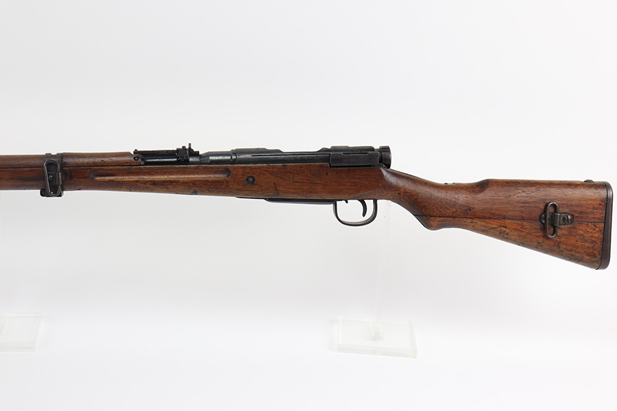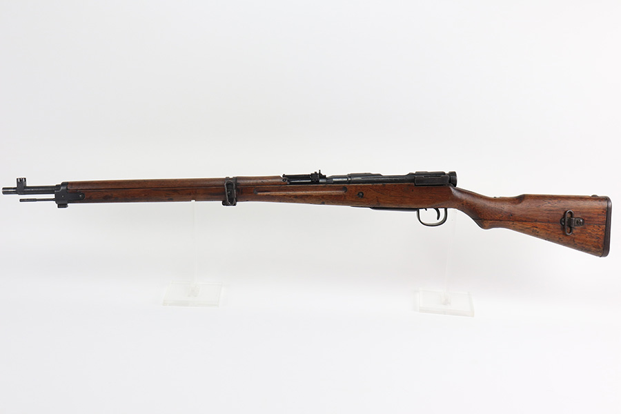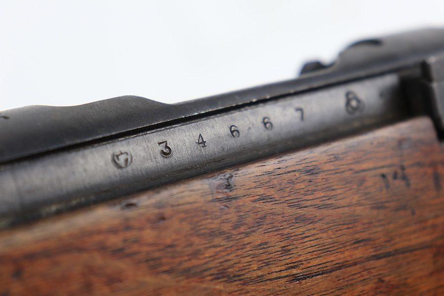 4/7/22 – This is a very nice example of an Arisaka Type 99 rifle issued to the Japanese military during WW2. The gun is entirely matching and has partially defaced Imperial mum stamp on the receiver that is still mostly visible. The gun has retained most of its original bluing. There is some minor wear around the muzzle. While there is very little actual finish loss, there is some light freckling on the receiver and spotty oxidation on the barrel. Heavy brown patina on the butt plate. A few very light scratches on the floor plate. Very nice stock with only minor bruises and scratches. The bore is near-mint. Comes with an original cleaning rod.